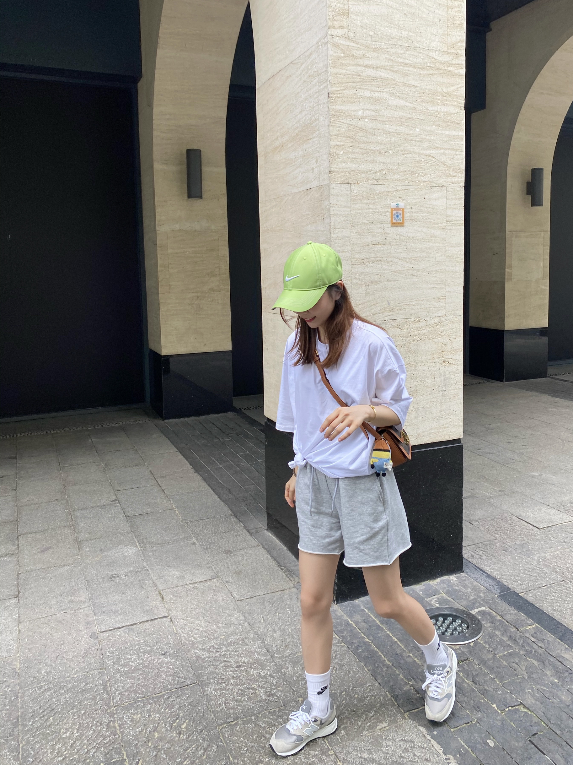 开启夏季的一定是各种纯T了 就算别的短袖买再多可有时候不知道穿什么 我就还是会拎一件纯色T 因为怎么穿都不会出错 今天想要运动休闲一些 搭配了一条宽松的运动短裤 整体灰色为主 搭配了我的NB999➕ nike之前买的三双装长袜 发现这个袜子光腿穿比较好看 有点韩系小姐姐的feel 我新买的绿色帽子🧢有点抢眼 但我觉得这个绿色很好看啊(≧∇≦) 帽子:nike (🍑宝代购) T&短裤: 韩...