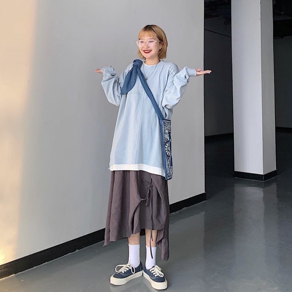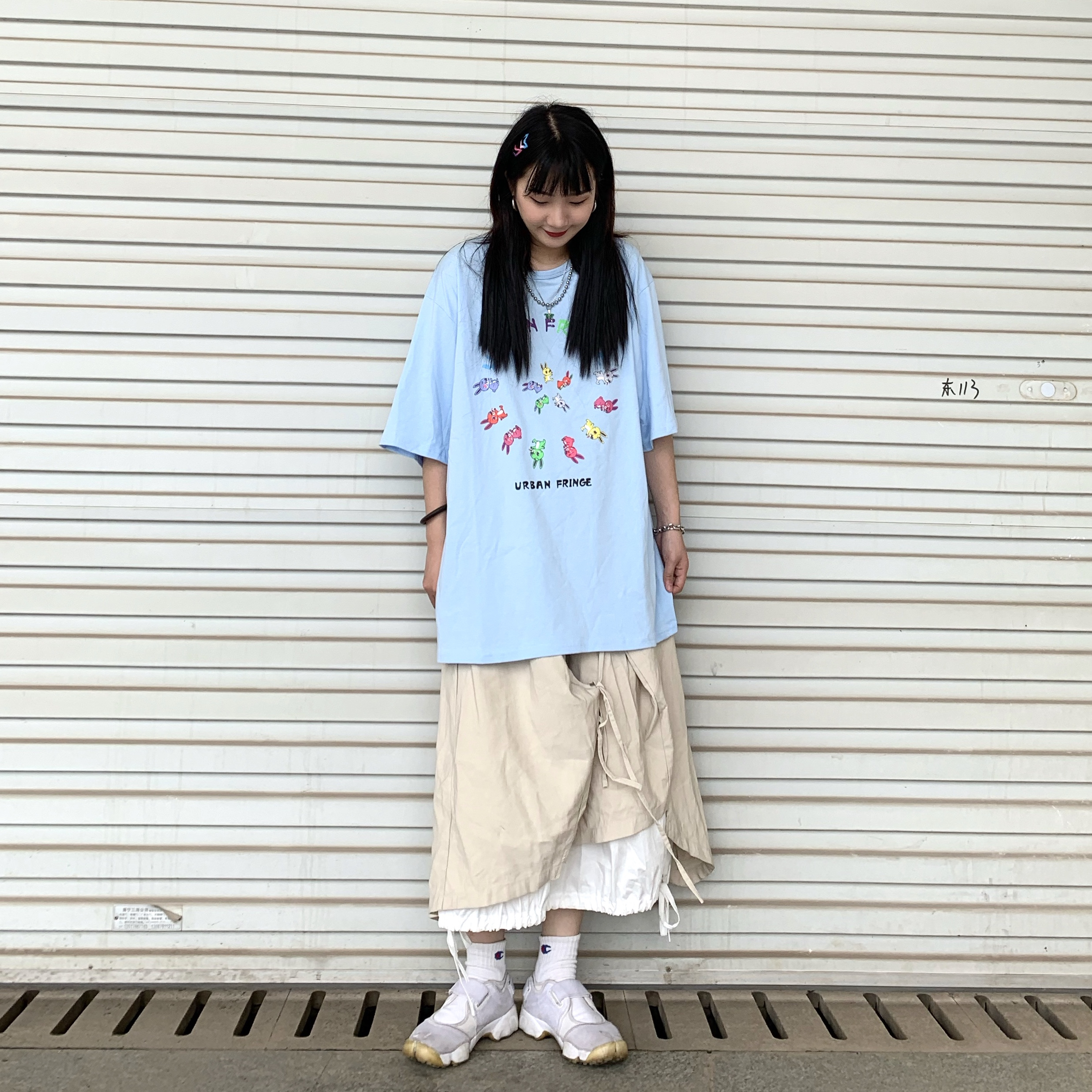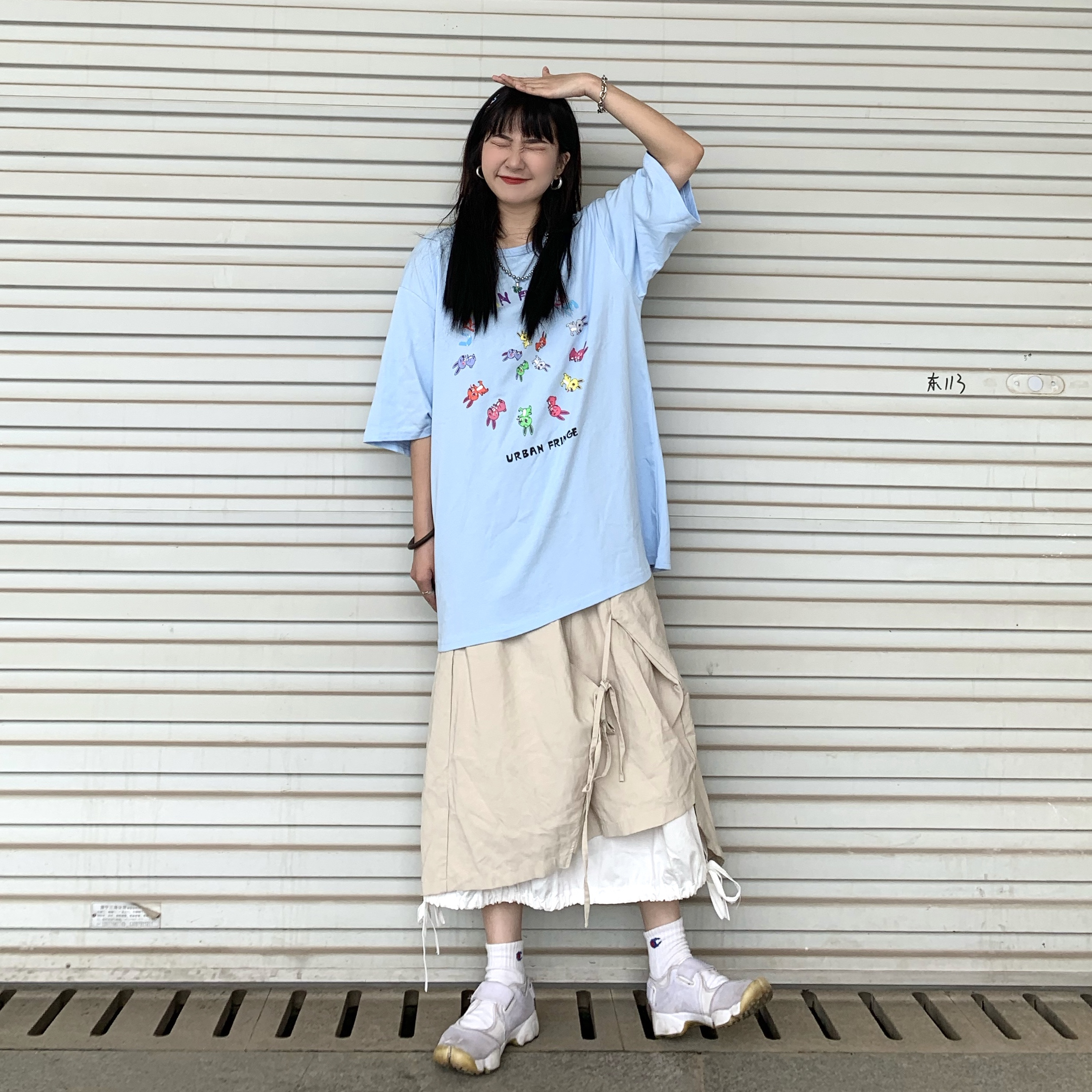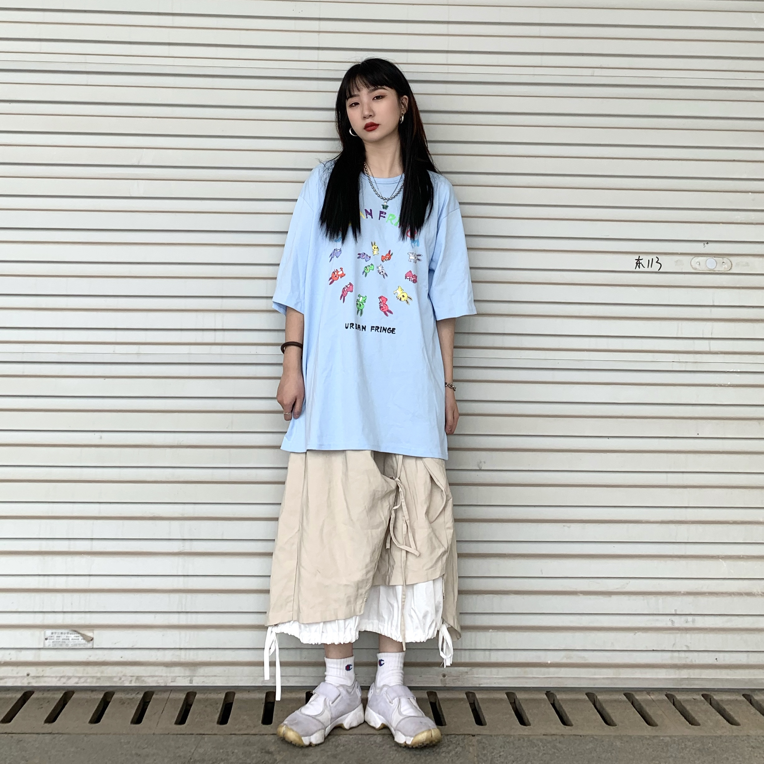 今天穿的是浅色系的搭配呀,上衣是可爱的兔子印花短袖,软软的,夏天穿超级舒服,搭配一条有层次感的裙子是不错的选择哦,简单耐看,给人干净舒服的感觉呢