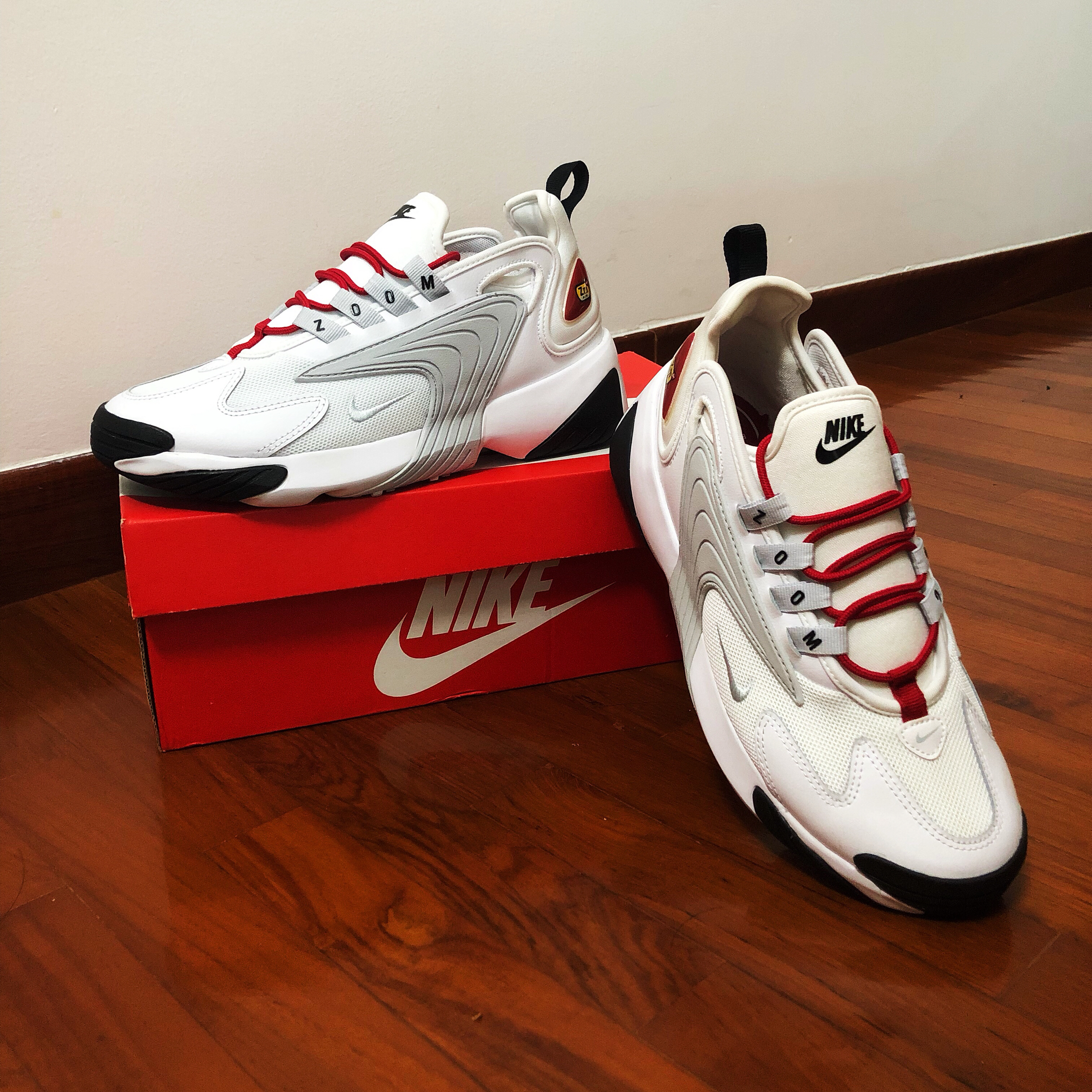 Nike zoom 2k 白红 最近特别喜欢复古风 Zoom 2k一直是我比较喜欢的鞋款 这次趁活动挑选了两双女款的给各位集美们推荐推荐 第一双就是白红配色啦 白色➕灰色➕红色点缀 外观辨识度很高 上脚效果非常好看复古和未来感都兼备 鞋带孔印上了zoom和2000的字样 后跟还有zm air作为点缀 价格方面也就400出头,个人认为还是非常划算的啦 下期介绍香芋紫配色,超级少女的配色,敬请期...