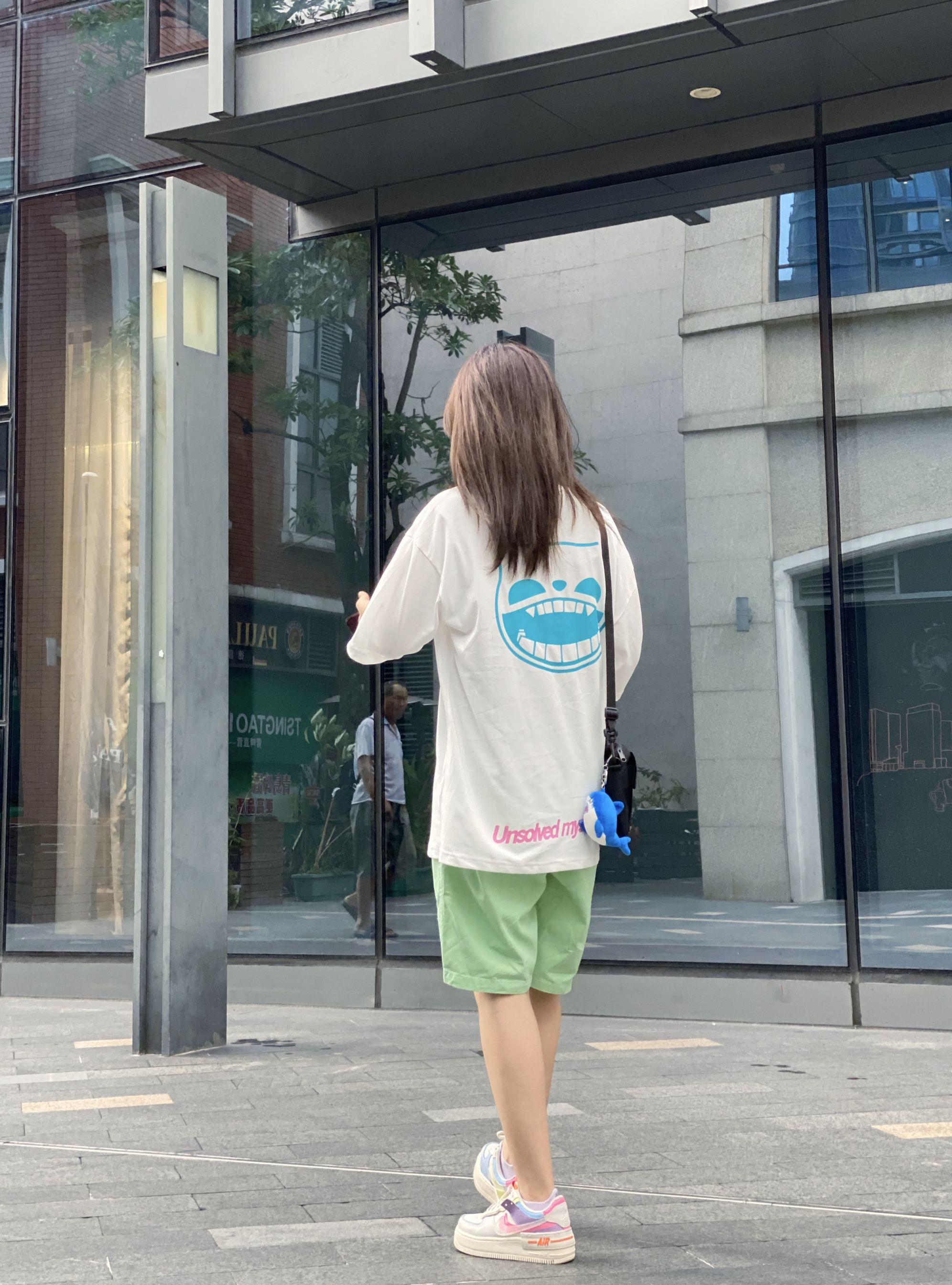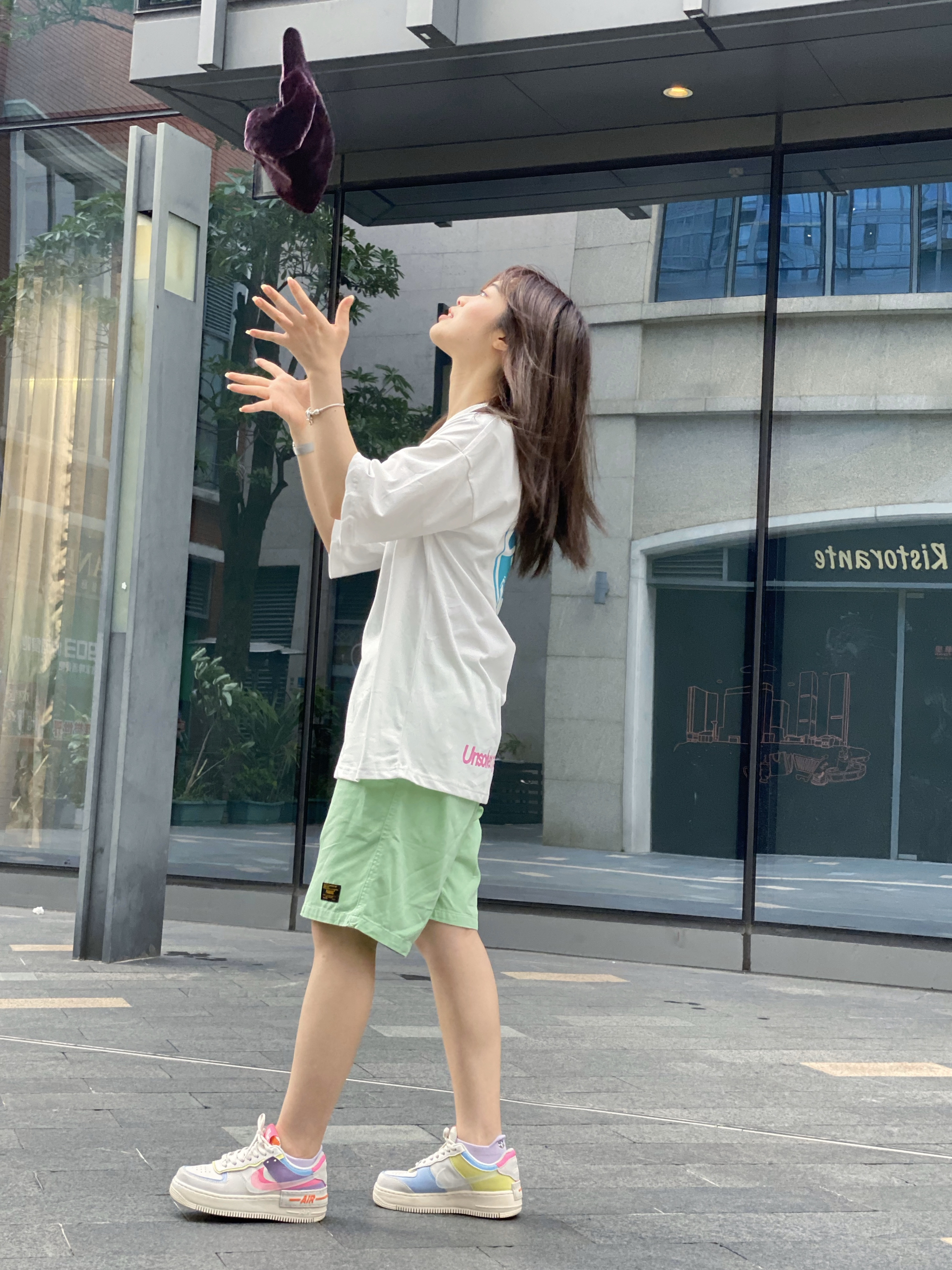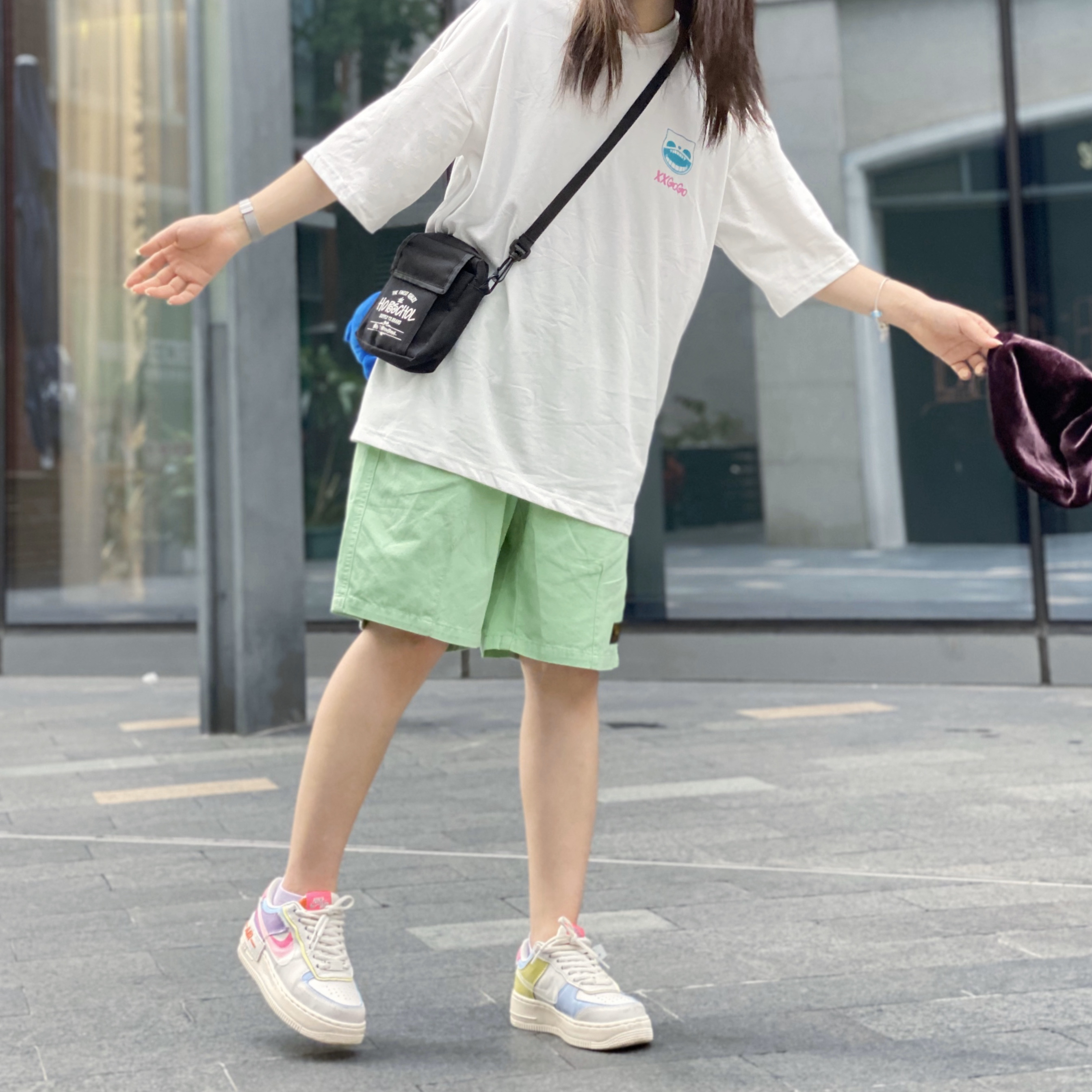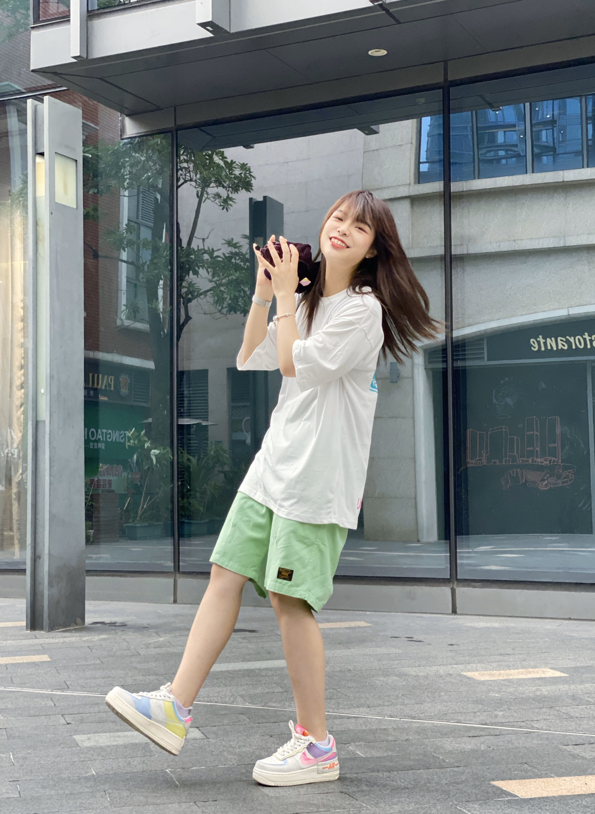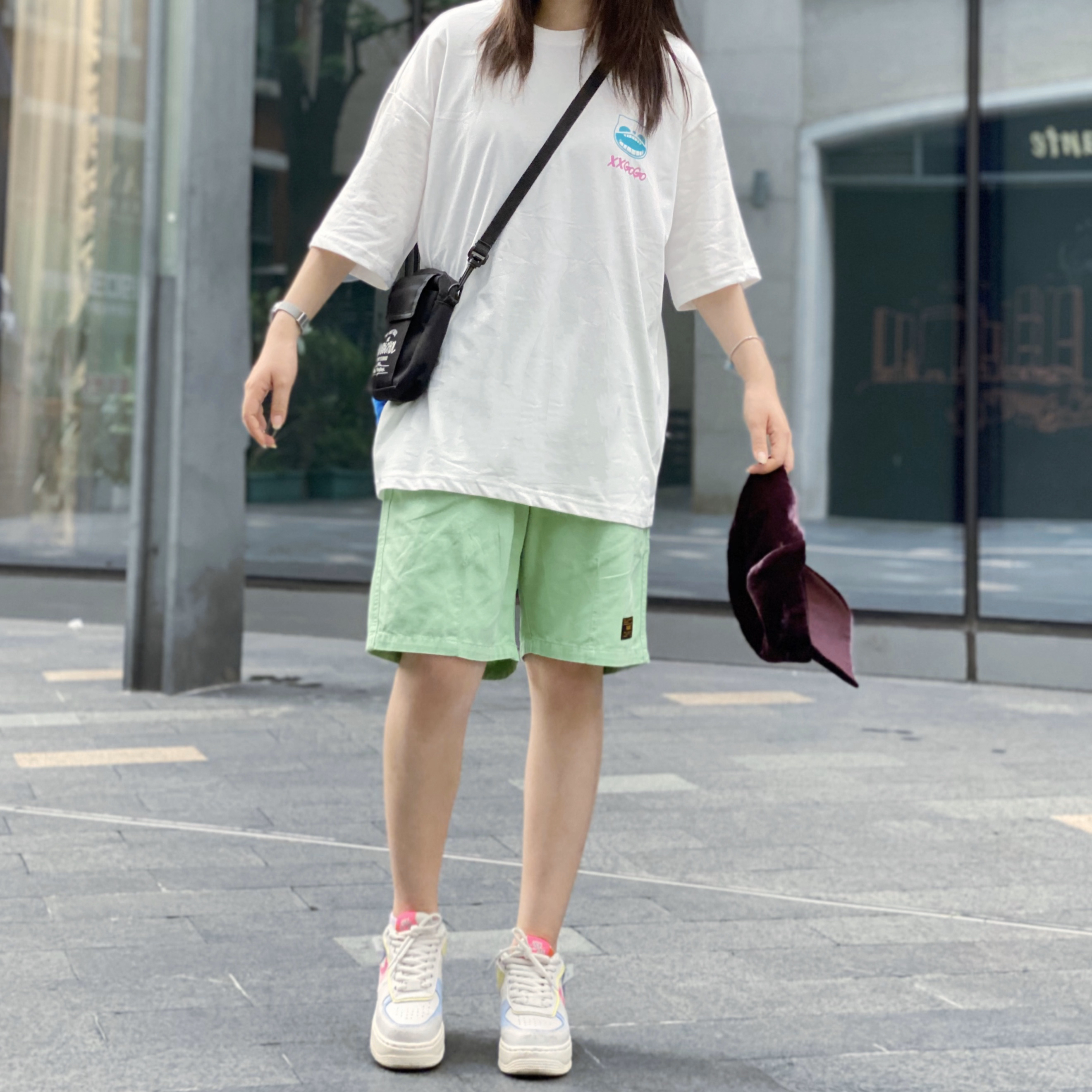 - 今天想和大家分享一套 简约工装风的穿搭Look🙋 简单的搭配也能穿出高级感哦👀 - 短袖🕶 纯色的短袖,版型很正👔 图案Logo真的是趣味! 任何风格都可以轻松驾驭哦🙋 - 短裤🕶 夏天的标配标配绿色 所以今天穿了一条亮色的裤子 逍遥阁的颜色与短袖相撞 整体感立马upupup! - 穿搭信息⬇️ 衣服:XXGOGO 裤子:pianning 鞋子:nike /