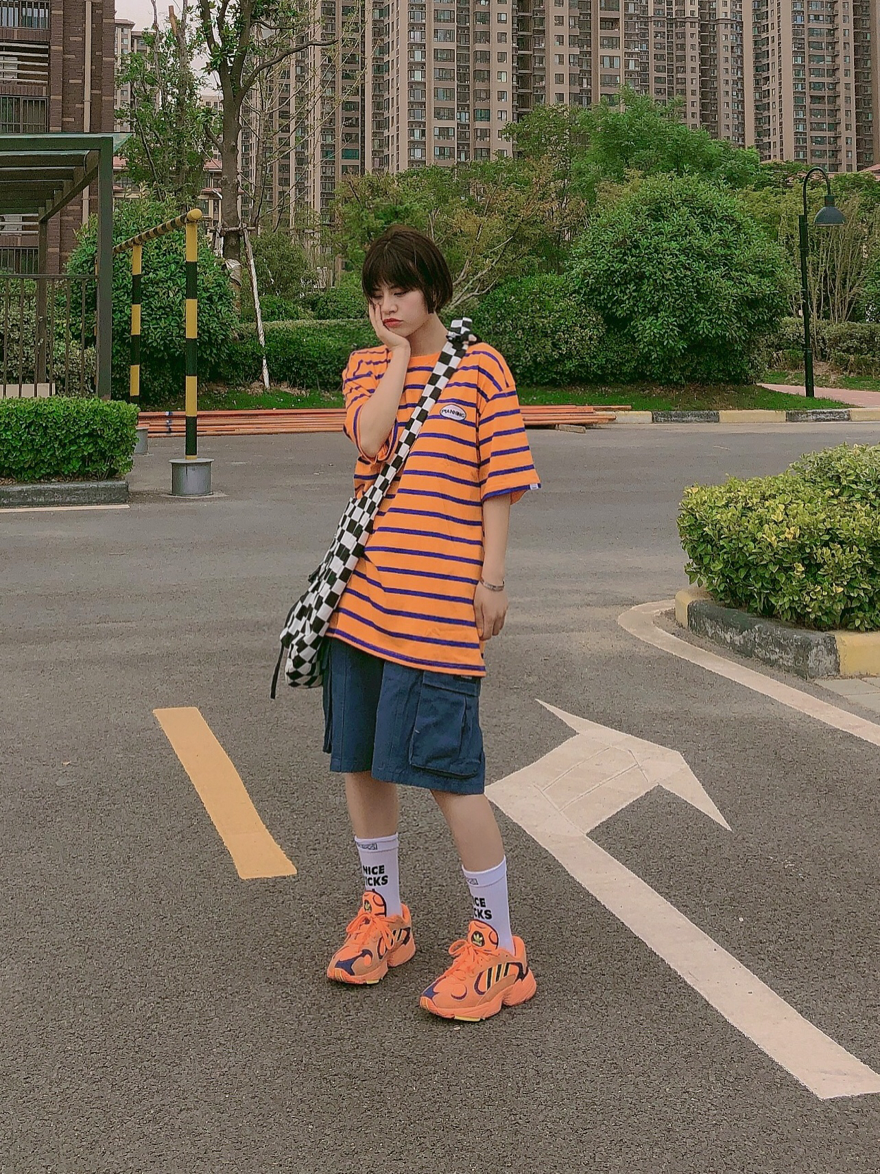 橘黄色系上的绝配啦吧 来吧,穿搭!有这双鞋的ggmm们一定要拥有这件T!哈哈哈 👕:painning 🩳:pianning 🧦:ocdoper 👟:adidas yung 🎒:LIJUNWANG ———————————————— 618的战利品你拥有了什么? 哈哈 这个月又要吃土了呜呜呜~~ @nice小助手 @nice 👕:pianning 橘色条纹 或者看起来因为颜色太亮怕不好驾驭吧,但其...