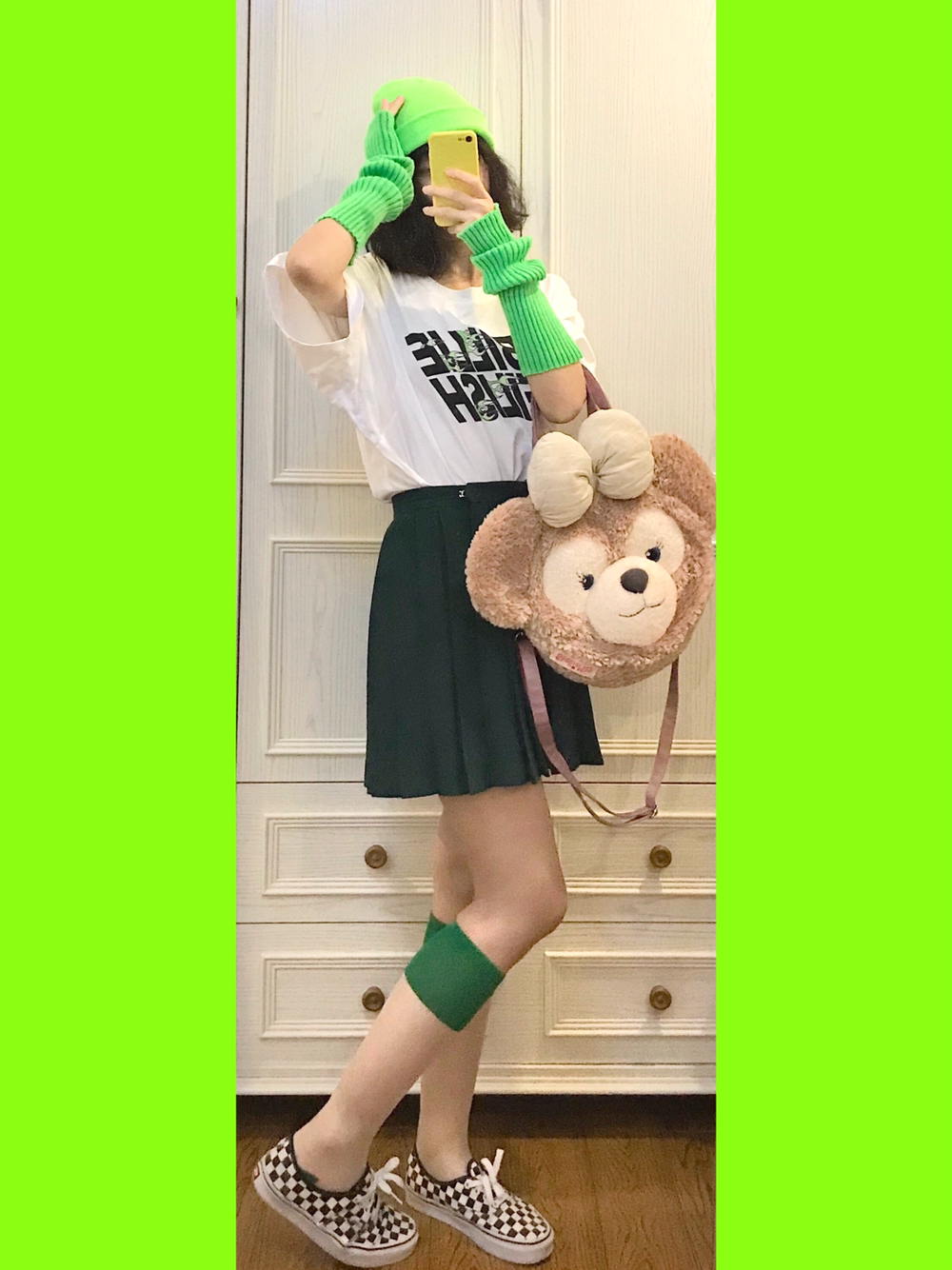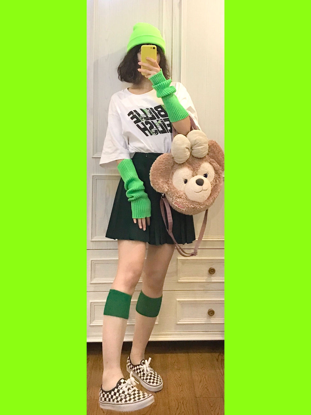🐢穿搭灵感来源🌙 联名t恤总共入了3件!真的剁手惹😇😤今天再用🐻前绿色火焰🔥元素来搭配一哈 🎵Bgm:Mojito-周杰伦 🐢单品配饰如下🌙 👚优衣库x碧梨联名 这件好像没有和村上隆联名!只是两方而已🐒弱化了花花元素!那我色彩搭配可以更复杂惹 👗墨绿色jk制服短裙 燕子家jk制服很久以前入手滴啦~之前藏青色啥的都是他们滴 👒绿色绒线帽或者绿色都可以 呼应短袖🐻前滴配色元素最好看惹 💁🏼荧光绿袖套 ...