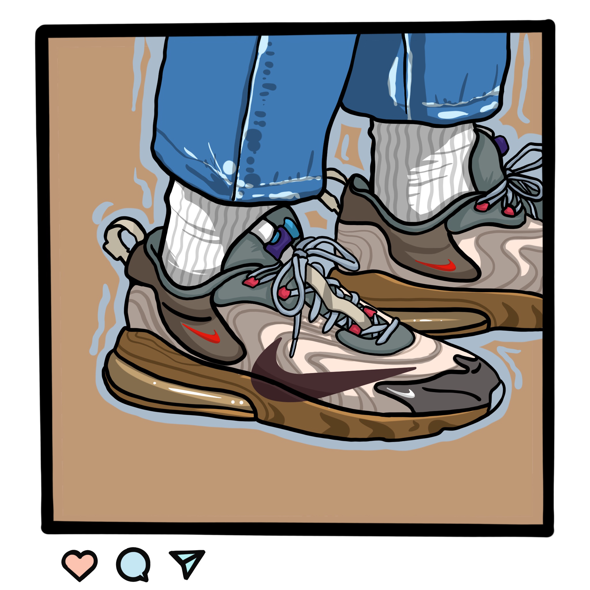 灵感来源于球鞋发布和上脚图的ins平台上的画框,通过不同的背景和形同的相框来搭配,让画面变得和谐又有趣.🌈🌈🌈🌈(最近dunk好火啊)