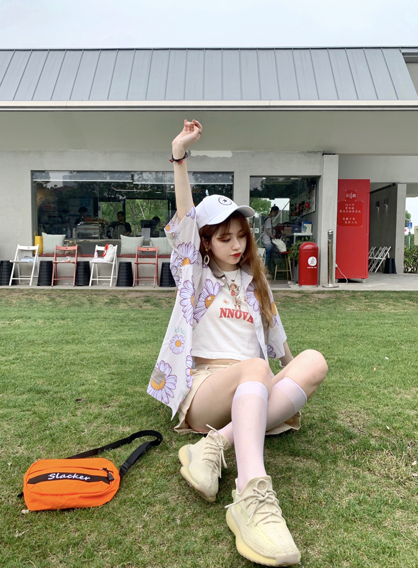 帽子:匡威棒球帽 衬衫:nnova 裤子:卡其工装裤 鞋子:yeezy350