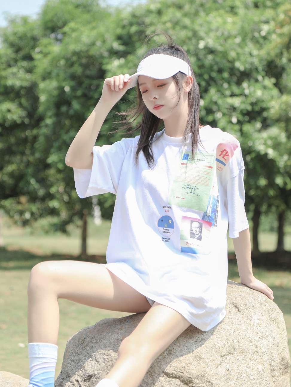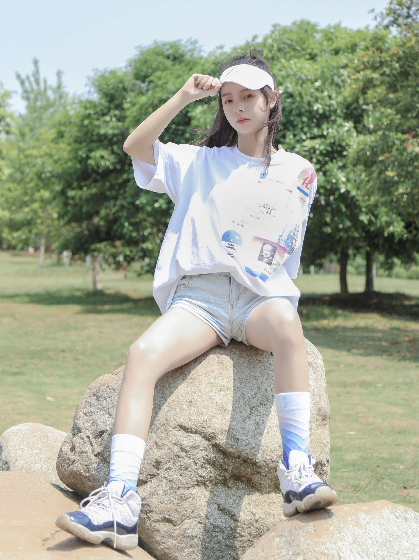 这套整体白色为主,蓝色红色点缀,搭配了一双白蓝过度的袜子,和衣服鞋子做呼应,看起来特别清爽!