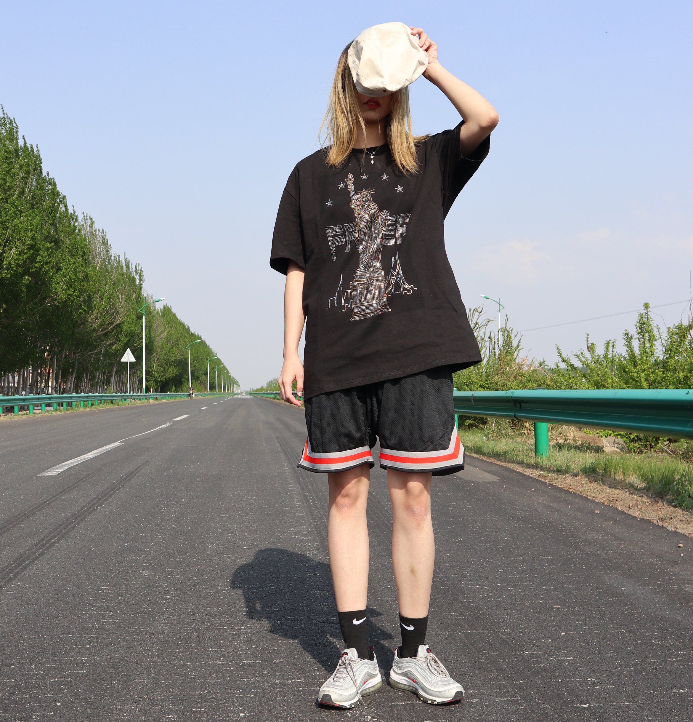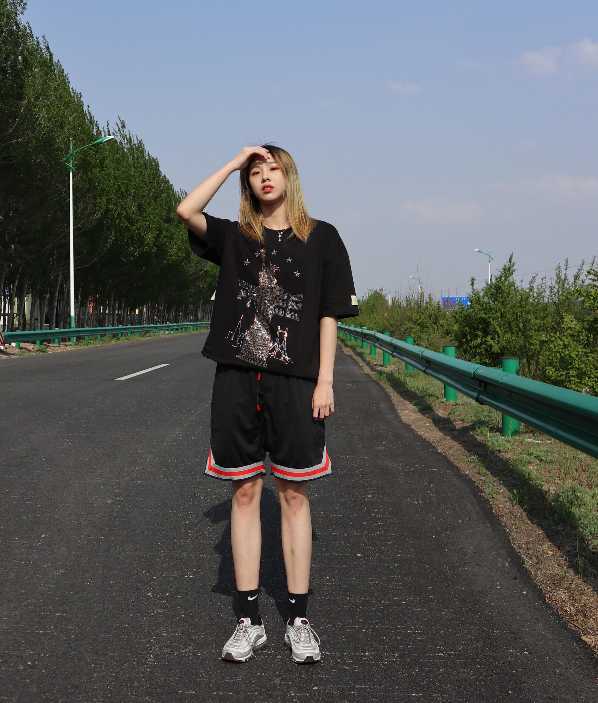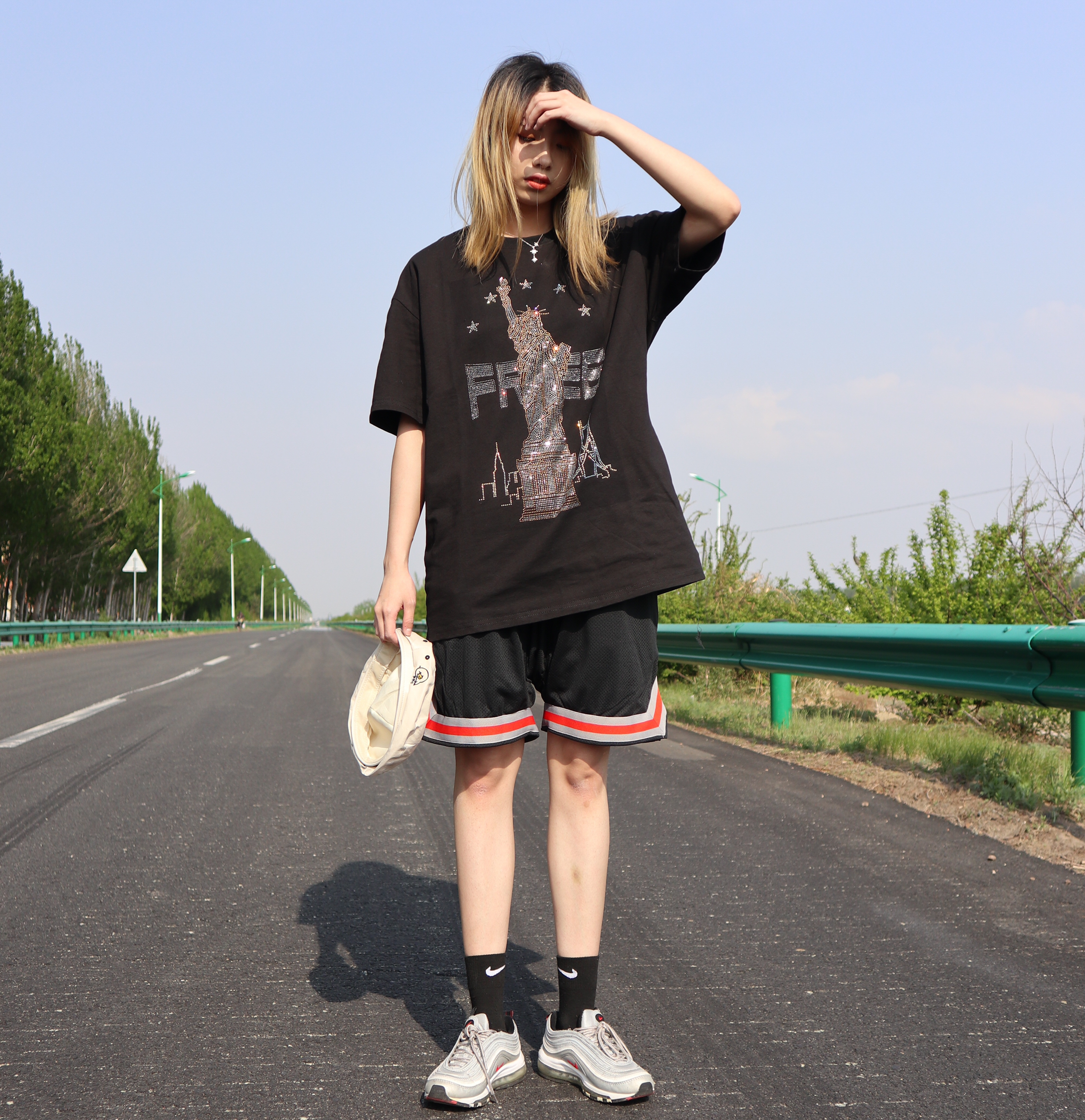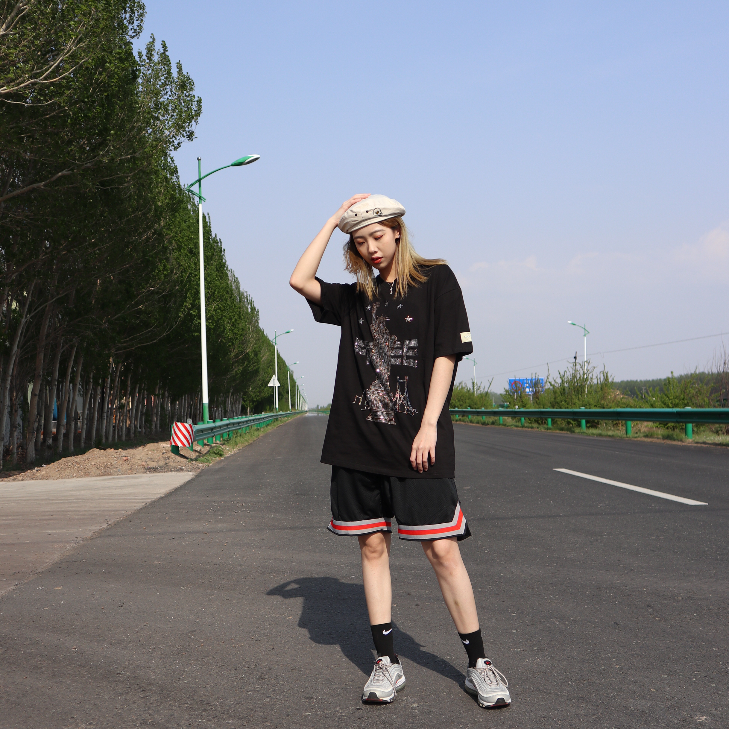 其实也有很多的妹妹跟我说过,就是同色系很简单,但是很难搭配的出彩,但穿搭我觉得最重要的就是要有自己的心机。 整体今天都采用的是黑色系,唯一的比较闪亮的点就是裤子的印花,这个裤子的边边我是很喜欢的,打篮球穿超级舒服,还有就是一些配饰会给整体带来一些亮点,帽子也是一个必不可少的配件。 其实我每次穿nike品牌的鞋,我同样都会搭nike的袜子,因为感觉很舒服,而且不会有杠精啊什么的。