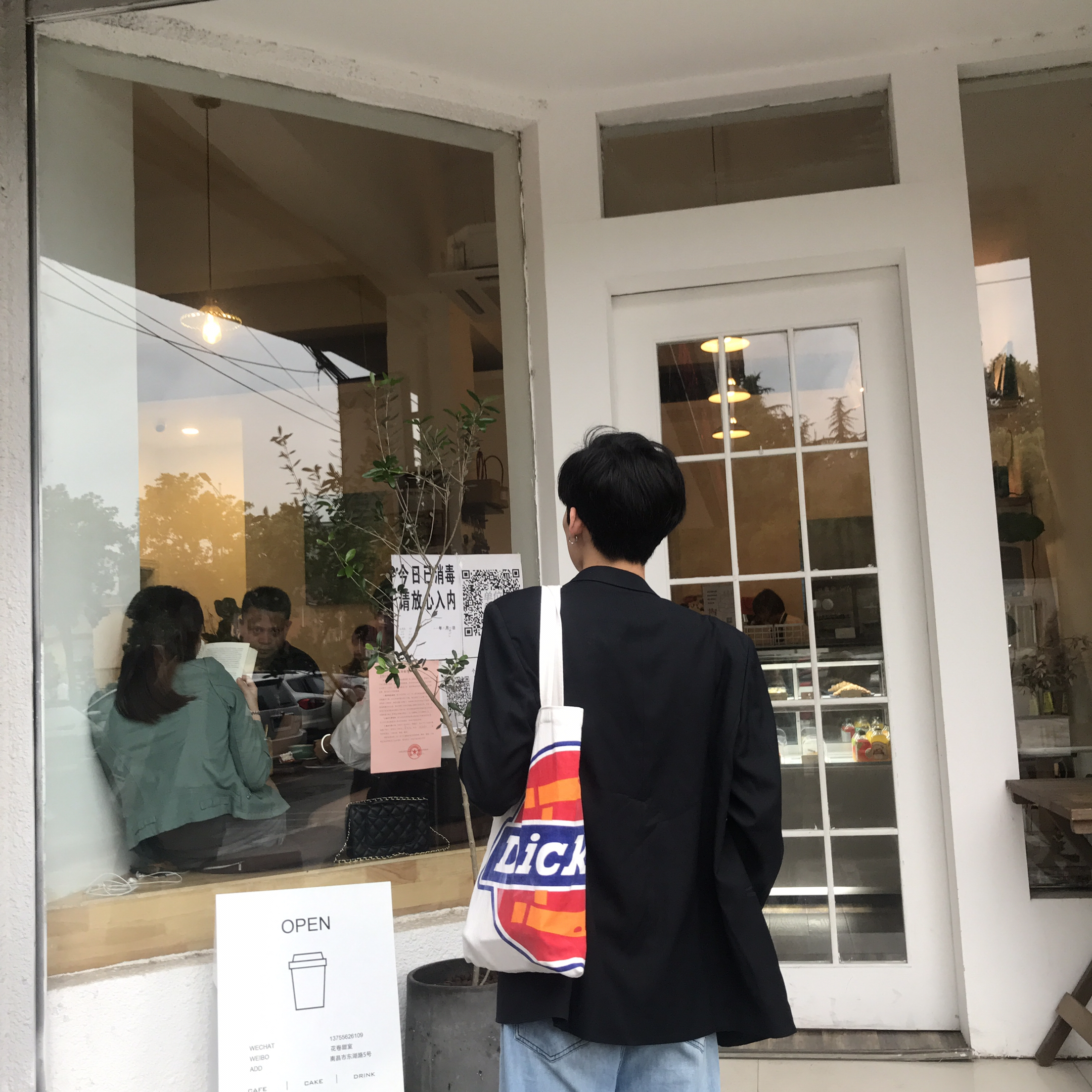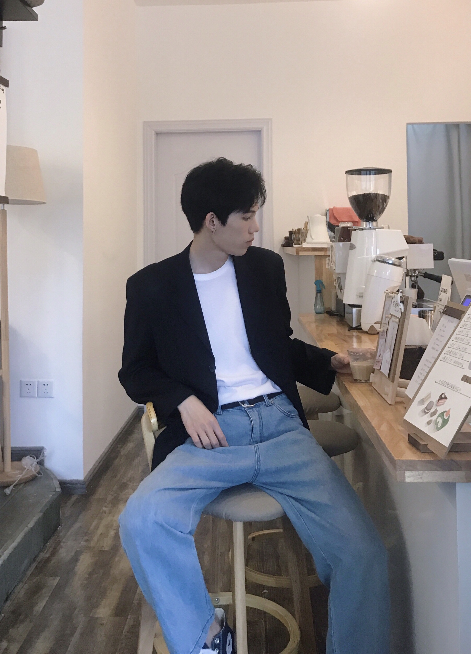 🧥:黑色西装 👕:白T恤 👖:牛仔裤 👟:匡威 👜:Dicks 半个多月之前天气还没有这么热的时候,还不停的下雨,穿着西装外套出门非常的合适。就拉着朋友去探店,黑西装搭白T恤是绝对不会出错的,既简约又百搭,裤子我选择了一件宽松的原色牛仔裤,比起搭黑西裤看起来更亮眼一些,拿上Dicks的帆布包,整体就显得很韩系辽。