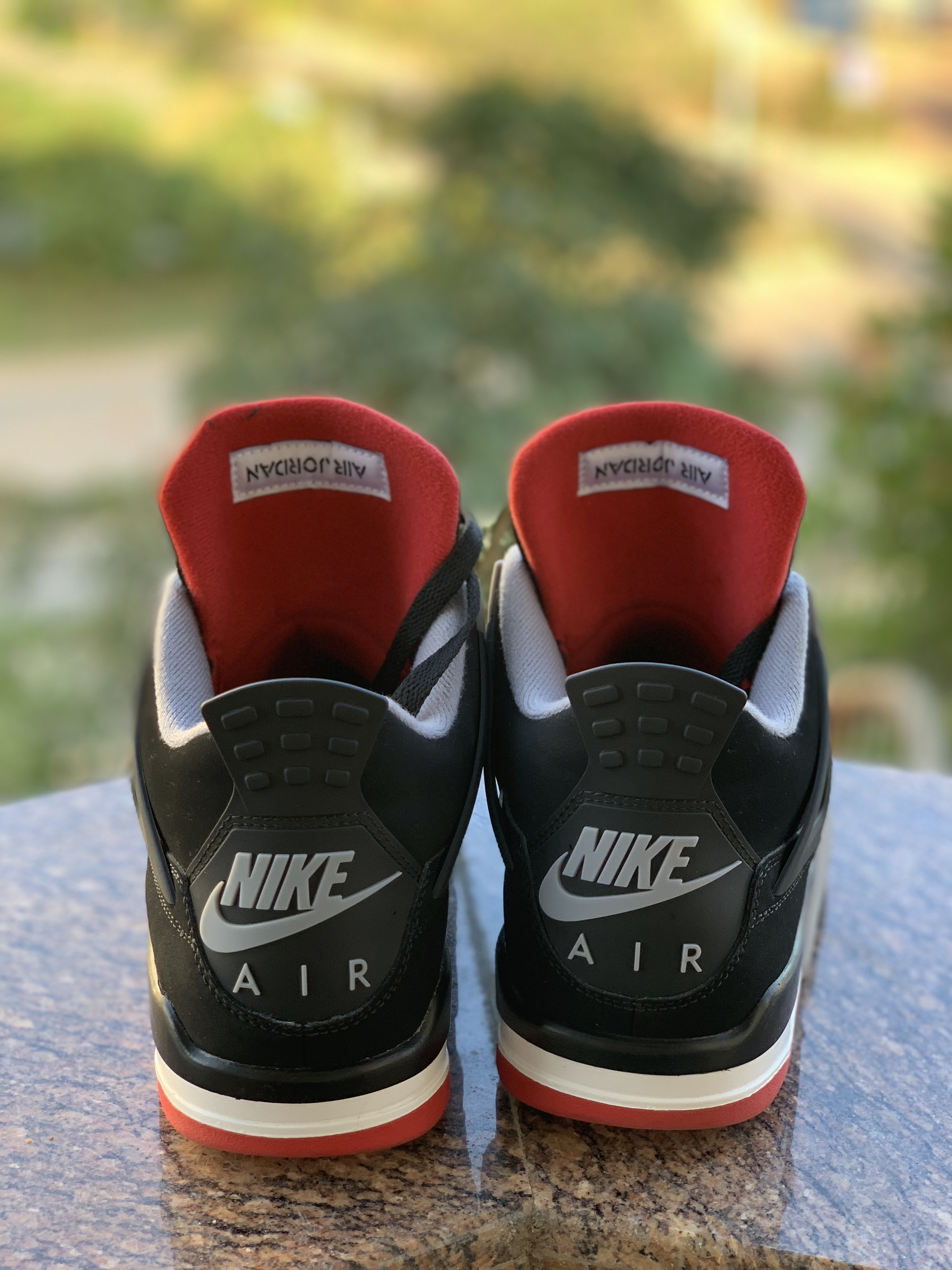 今天来和大家分享一对不适合实战的篮球鞋 AJ4 黑红配色 和AJ5一样不推荐实战只推荐日常穿搭哈 个人觉得颜值爆表 黑红是我最喜欢的配色 推荐小伙伴们入手哈。