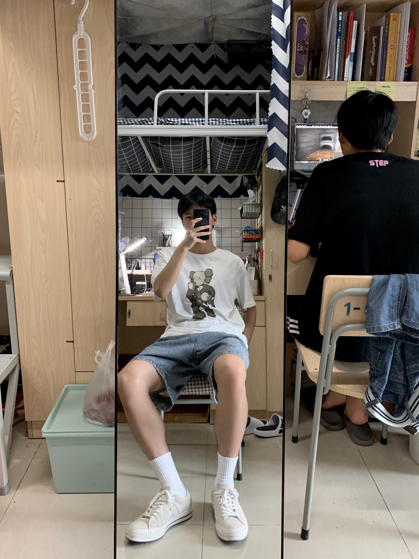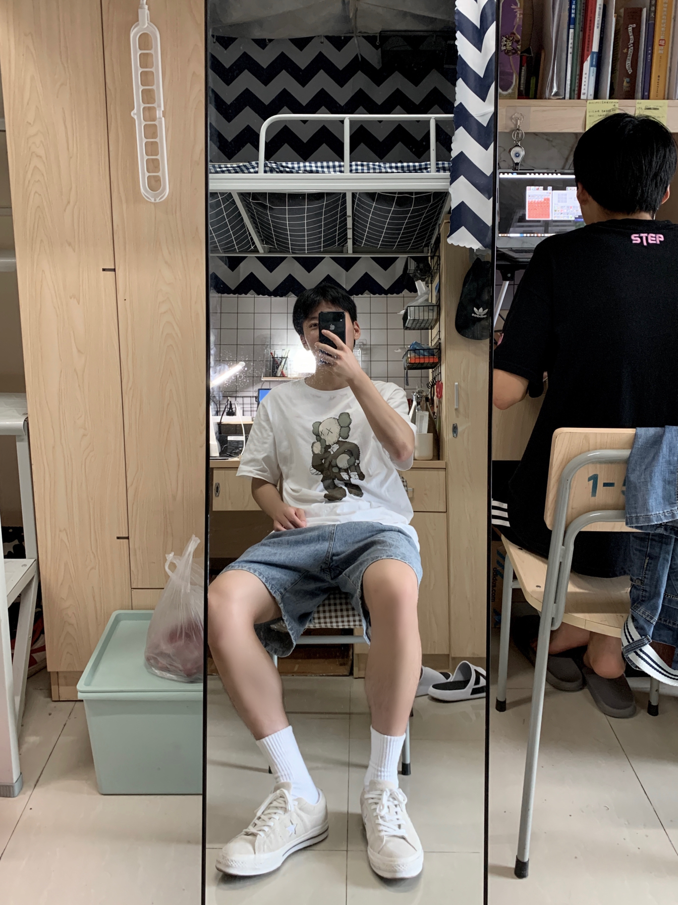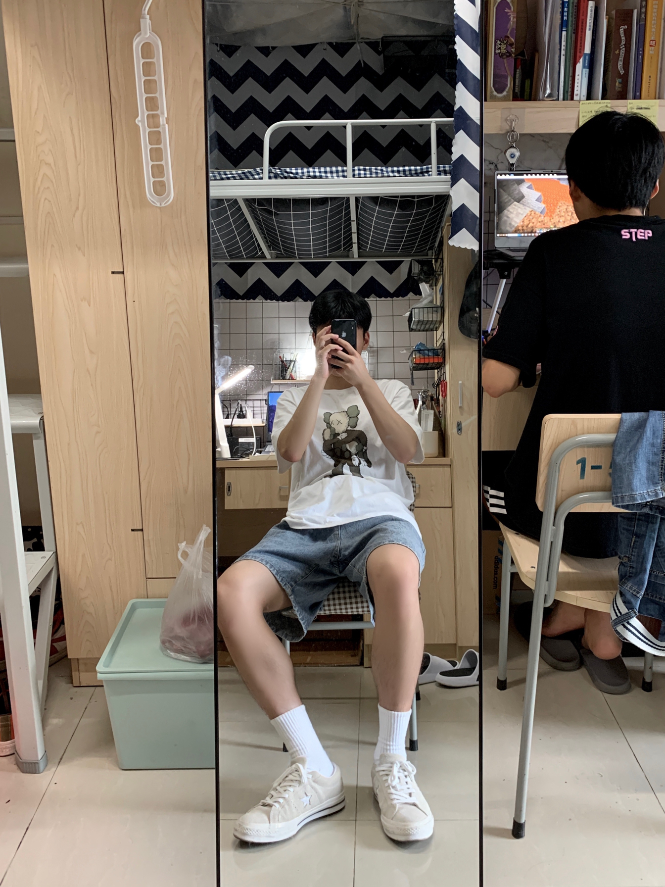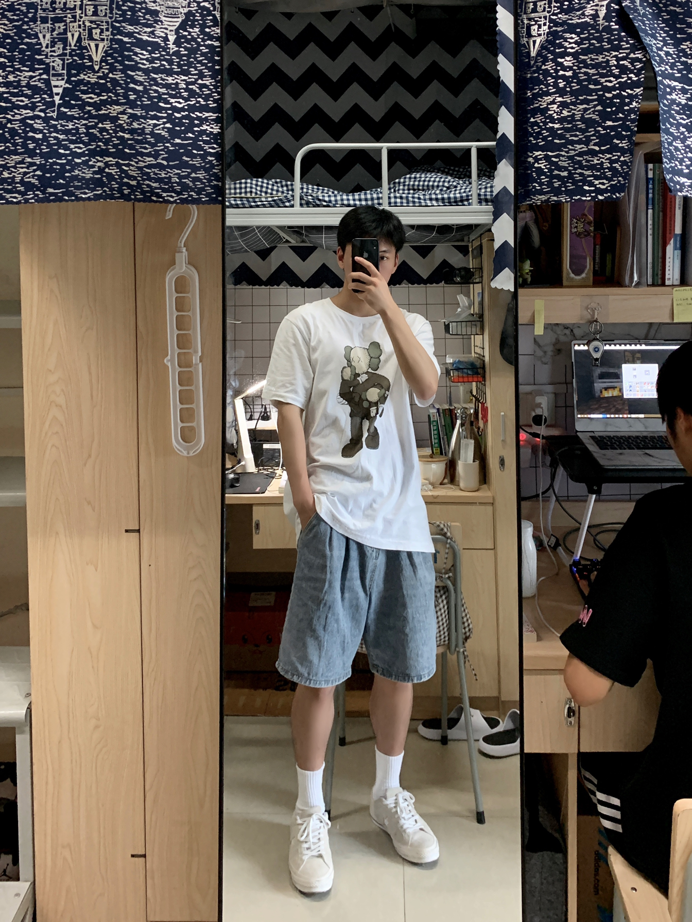 白t➕牛仔裤👖=篮天白云☁️ 👕:Uniqlo x Kaws 2019灰色玩偶短袖 因为觉得Kaws玩偶很有意思 所以当时发售的几款短袖全都入手🛒 优衣库的价格亲民 用料也不会差 值的入手☑️ 🩳:牛仔短裤链接找不到了 推荐店铺LK STORE 有很多差不多的👖 后续能找到链接会分享给大家🤭 👟:converse one star 灰白色翻毛 one star的鞋型百搭 如果觉得黑色撞鞋率高 那...