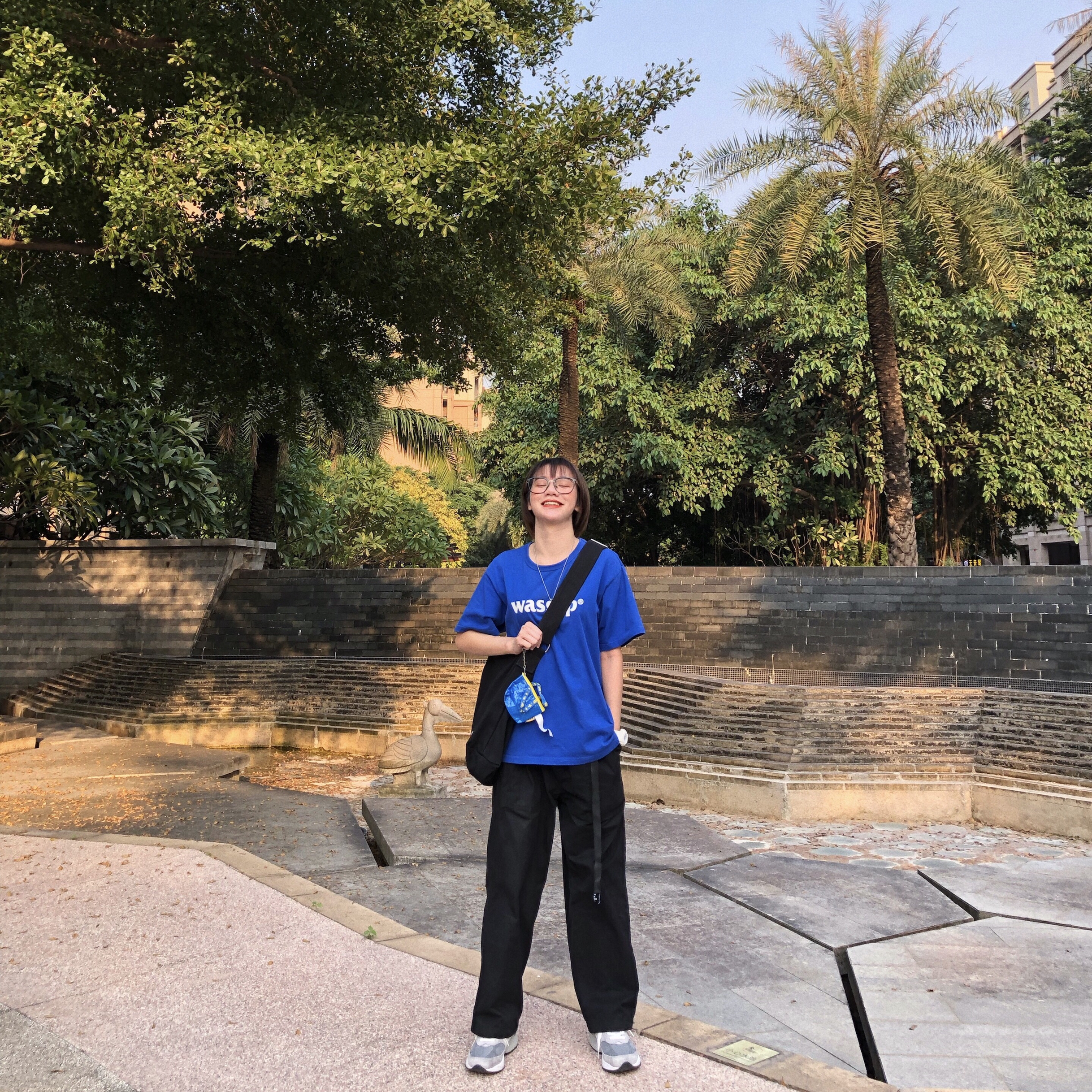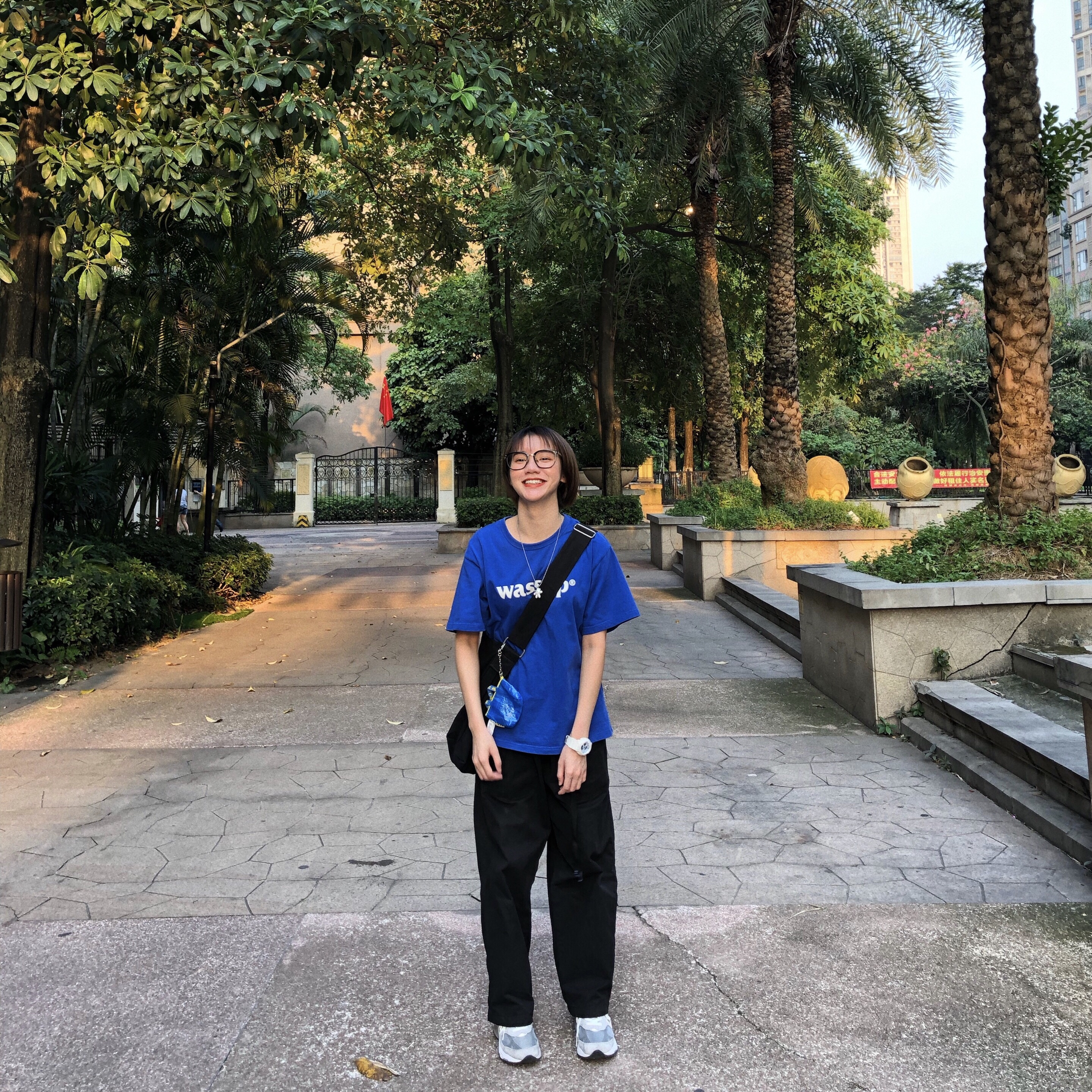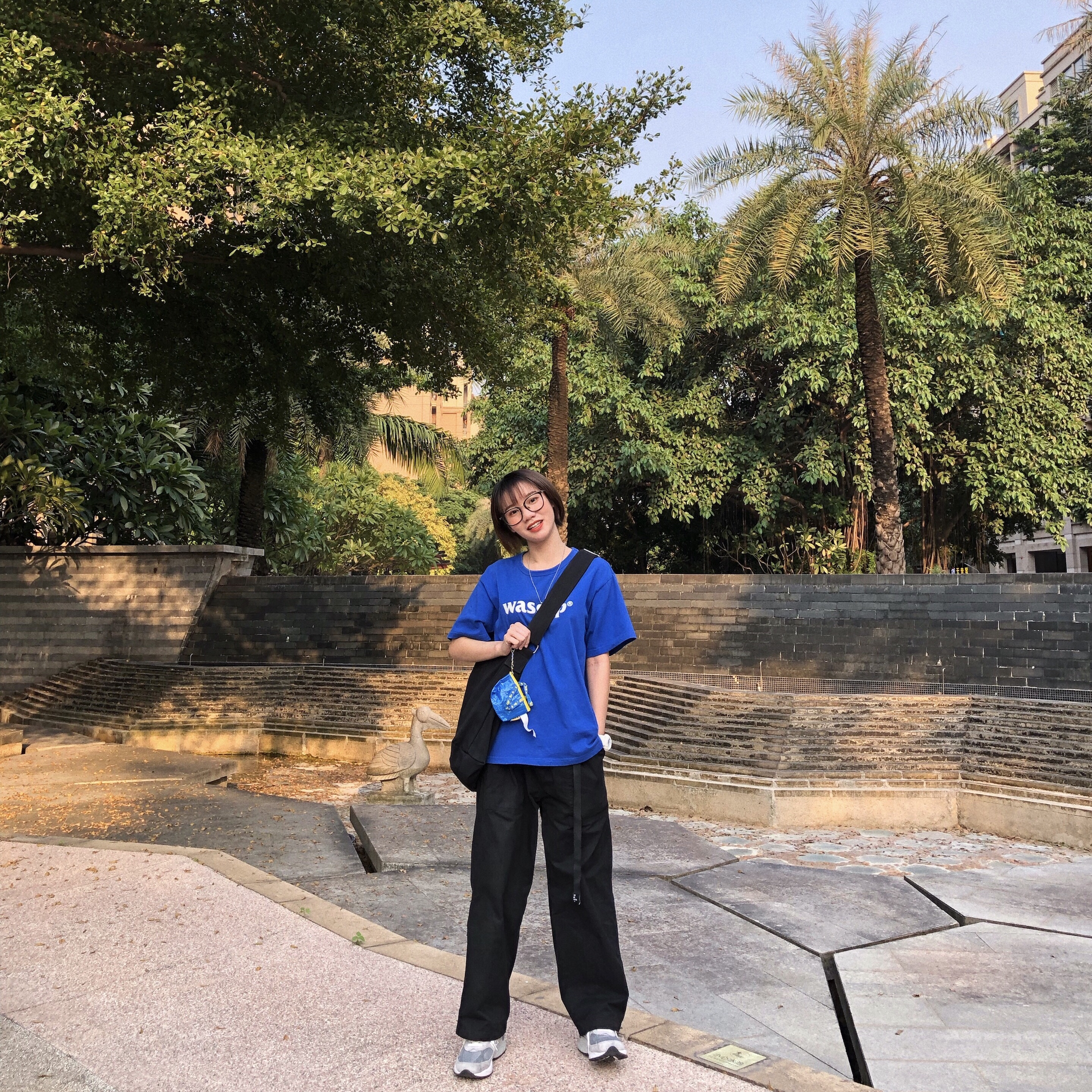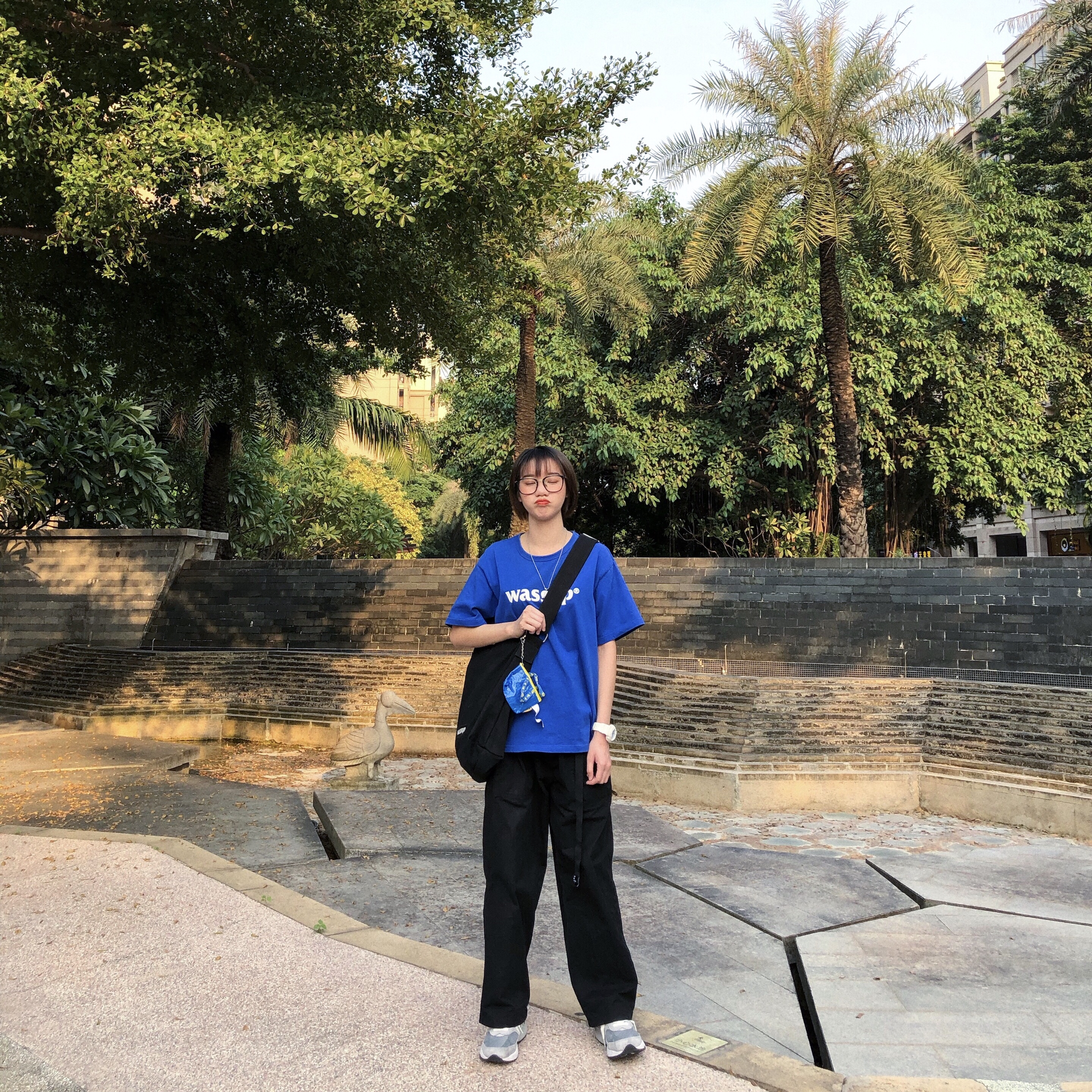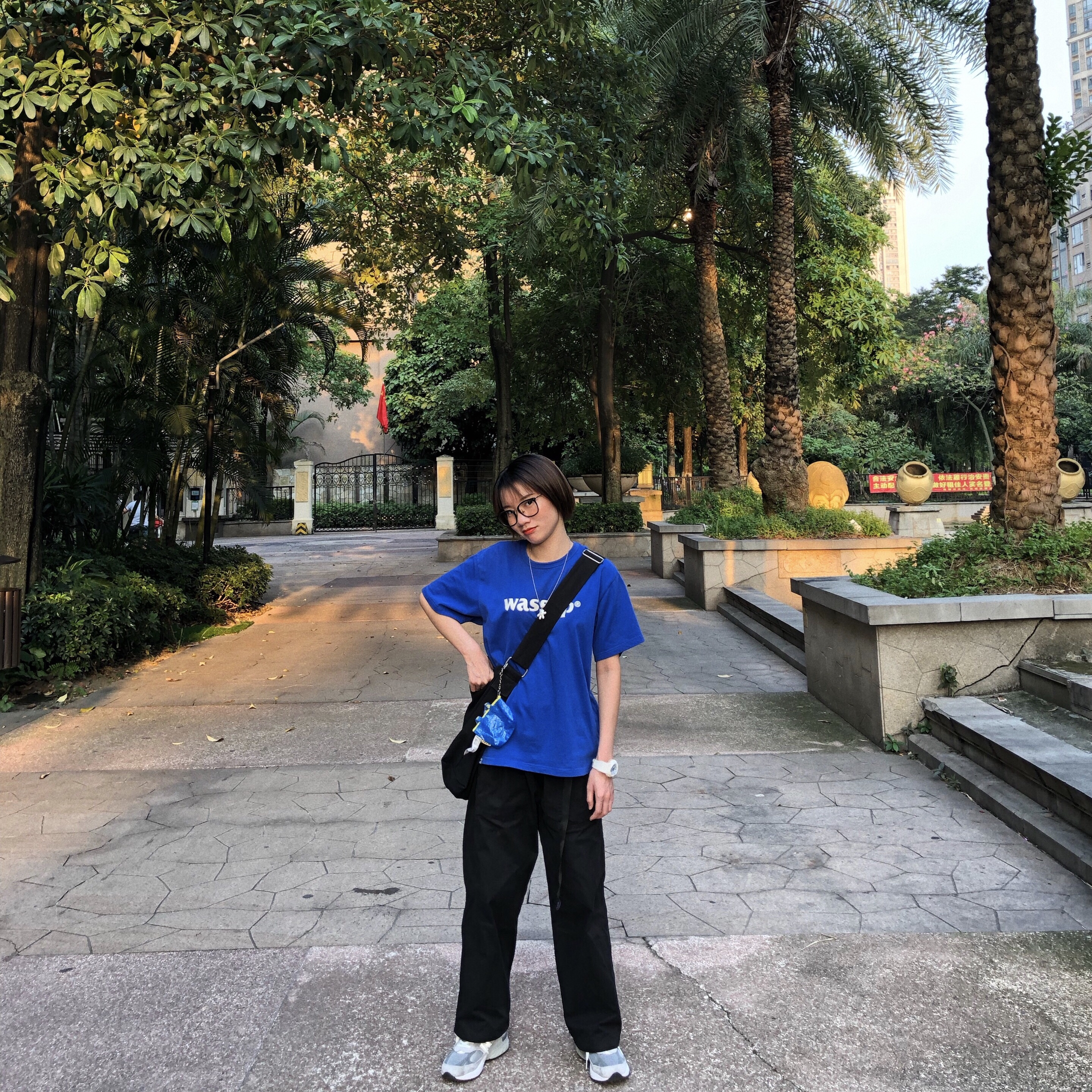 👔:wassup蓝色t 裤子:equality原创优选店黑色工装裤 包包:wassup黑色帆布袋 蓝色的t搭配黑色工装裤,还有一个同色的小恐龙。蓝色显白,搭配同色小恐龙🦕比较可爱,不会过于单调。