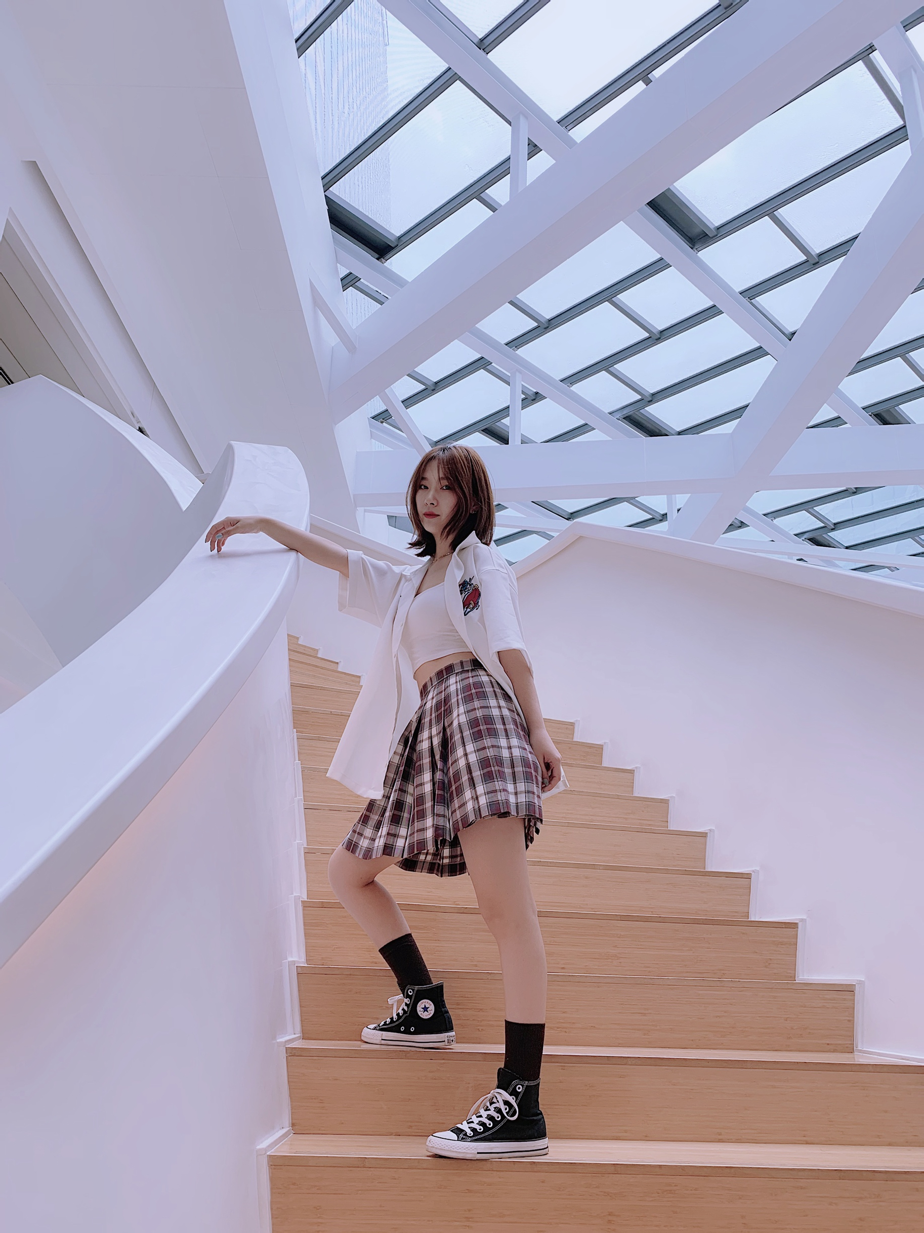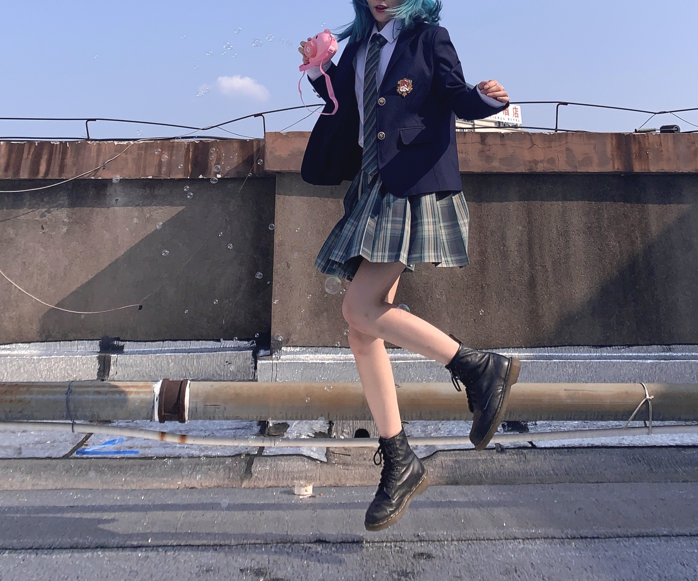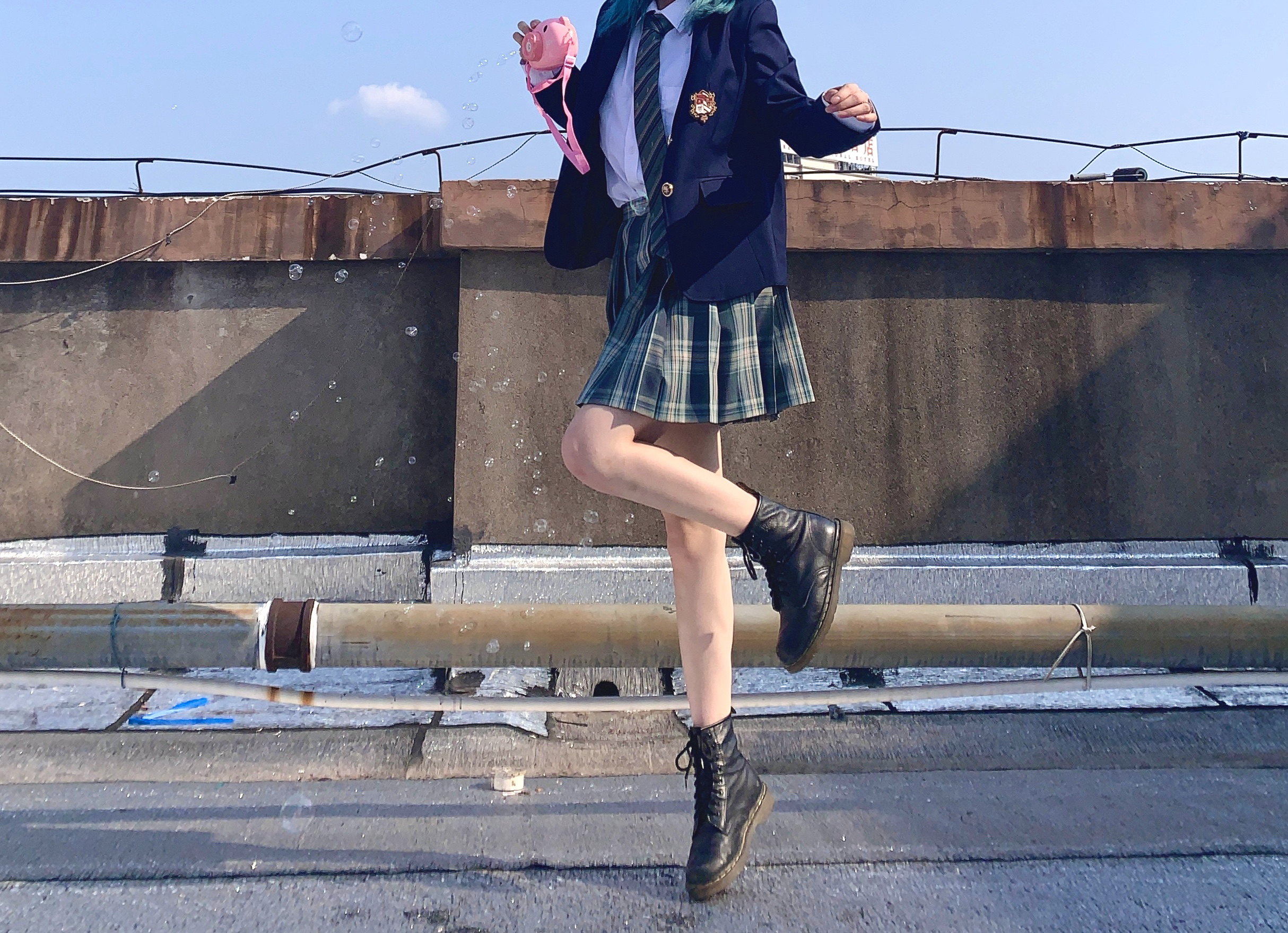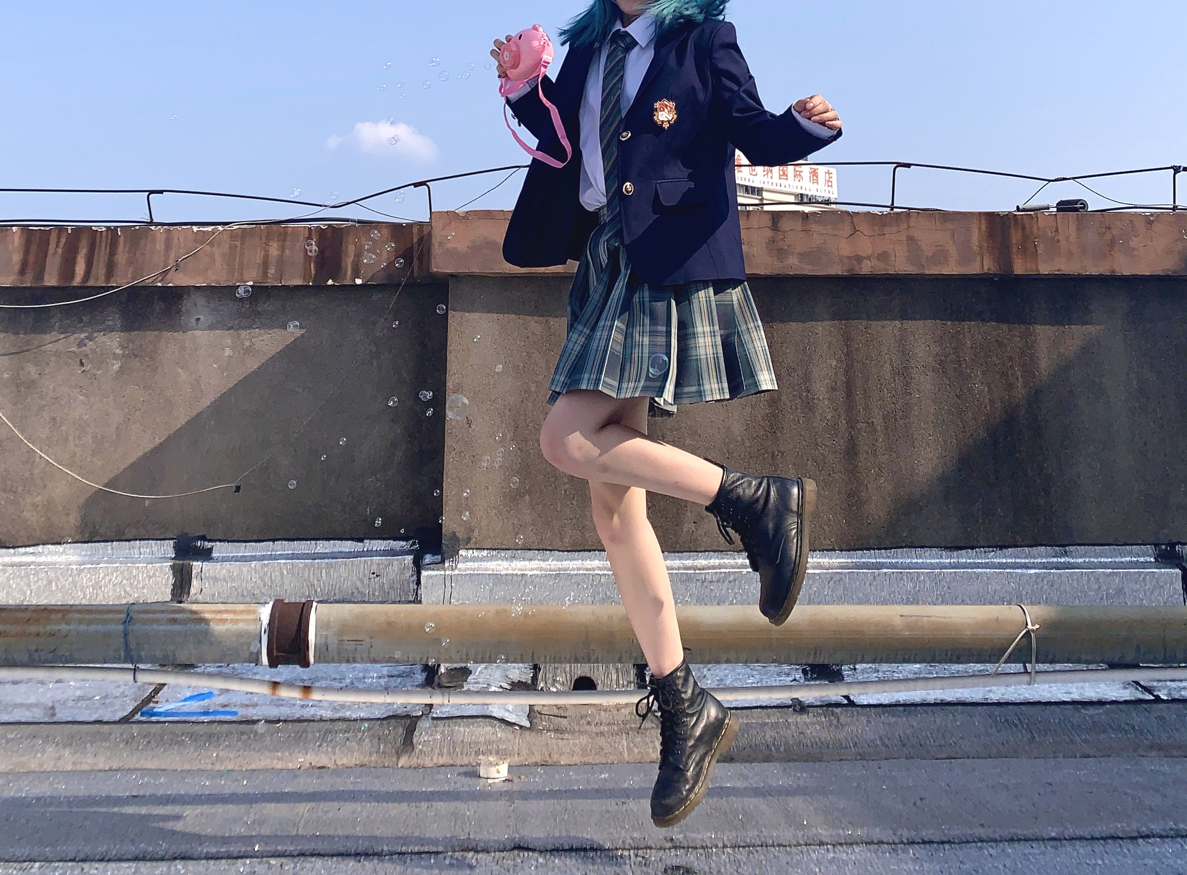 jk不一定是软萌软萌的,森林来信也可以穿出cool girl的感觉 常规制服搭配小裙子,配上dr的马丁靴,不仅腿立刻变得修长,气场也完全不一样了,再拎上一个“画风清奇”的滑板 一个字:绝 👔:雨你无瓜jk 👗:兔缝缝 👟:dr.martens