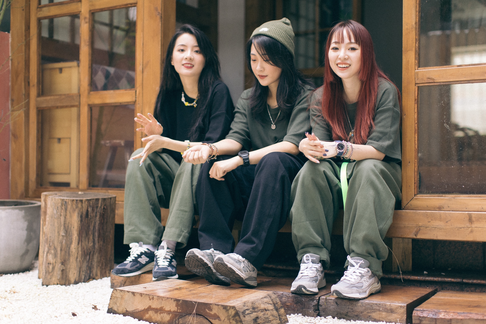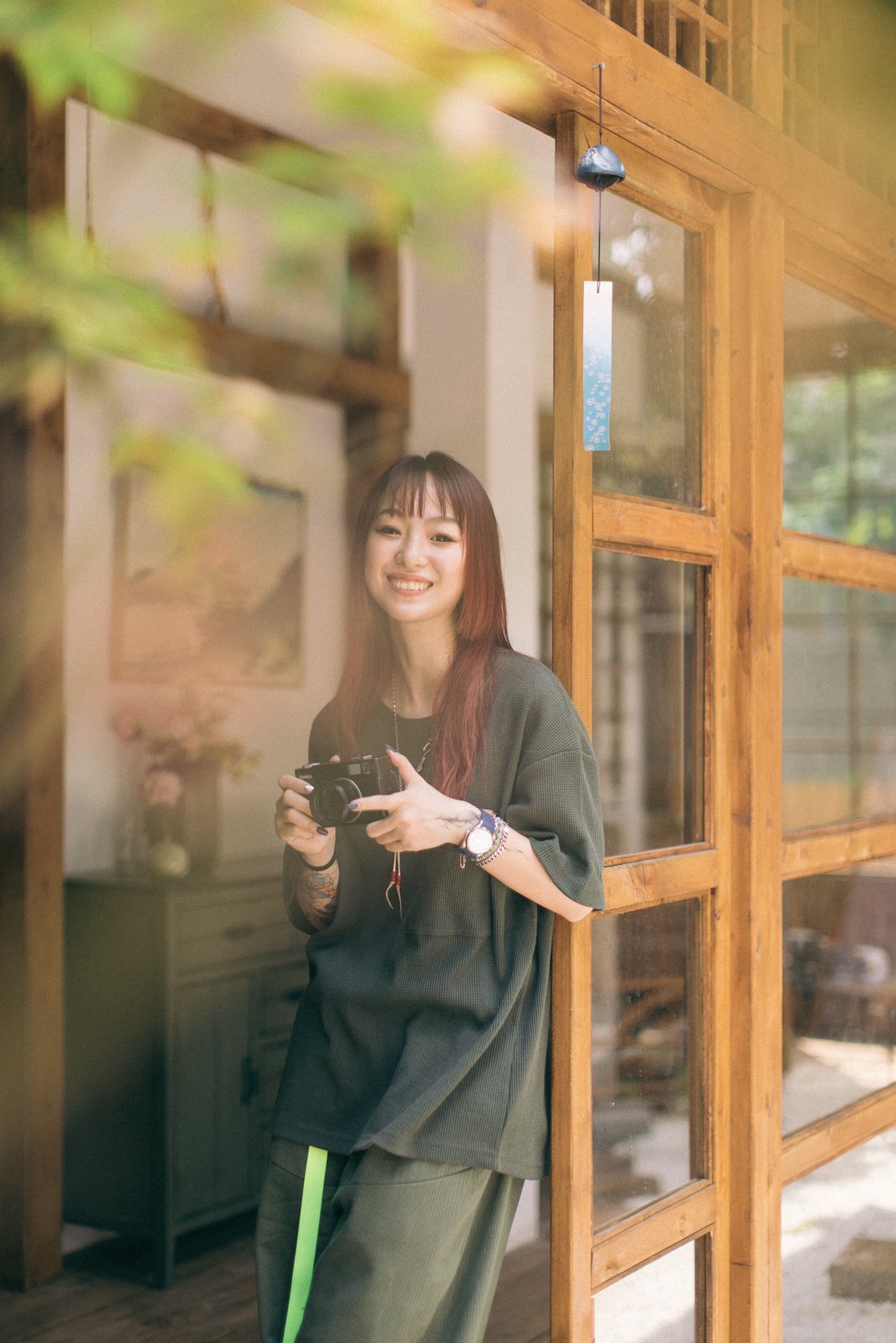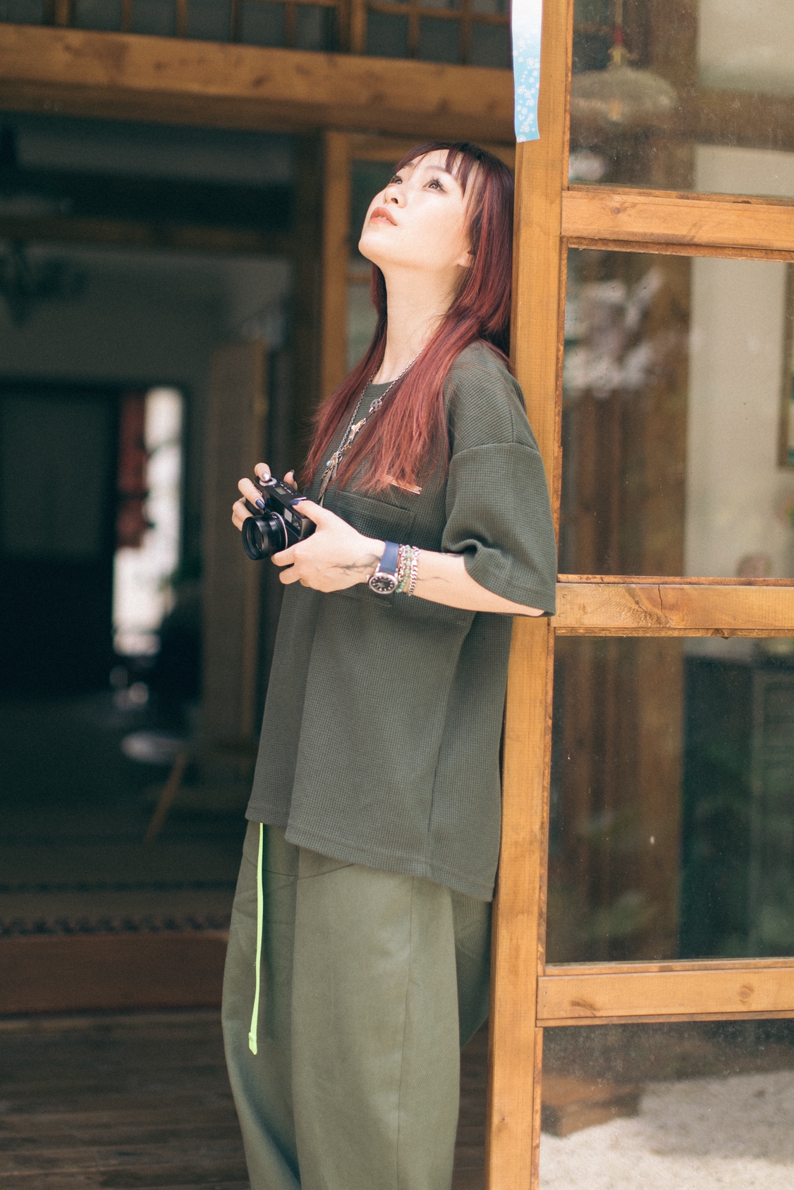 军绿色同色系搭配,工装裤搭配NB992元祖灰!清新又舒服😌! 图1由识货插画师@imairyoung创作