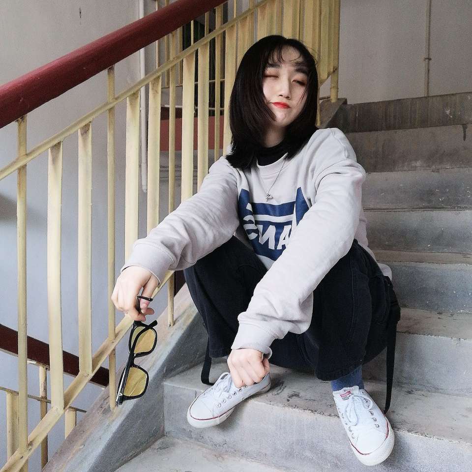 👟:Converse 👕:Vans Vans这件卫衣我超爱der 日系工装风绝了! 也许百搭款就适合我这种懒人混搭!(除了夏天我剩下三季一直在穿) 隐隐约约记得这是疫情刚刚爆发的时候,没办法下楼拍照只好蹲楼道里偷偷拍!实惨!