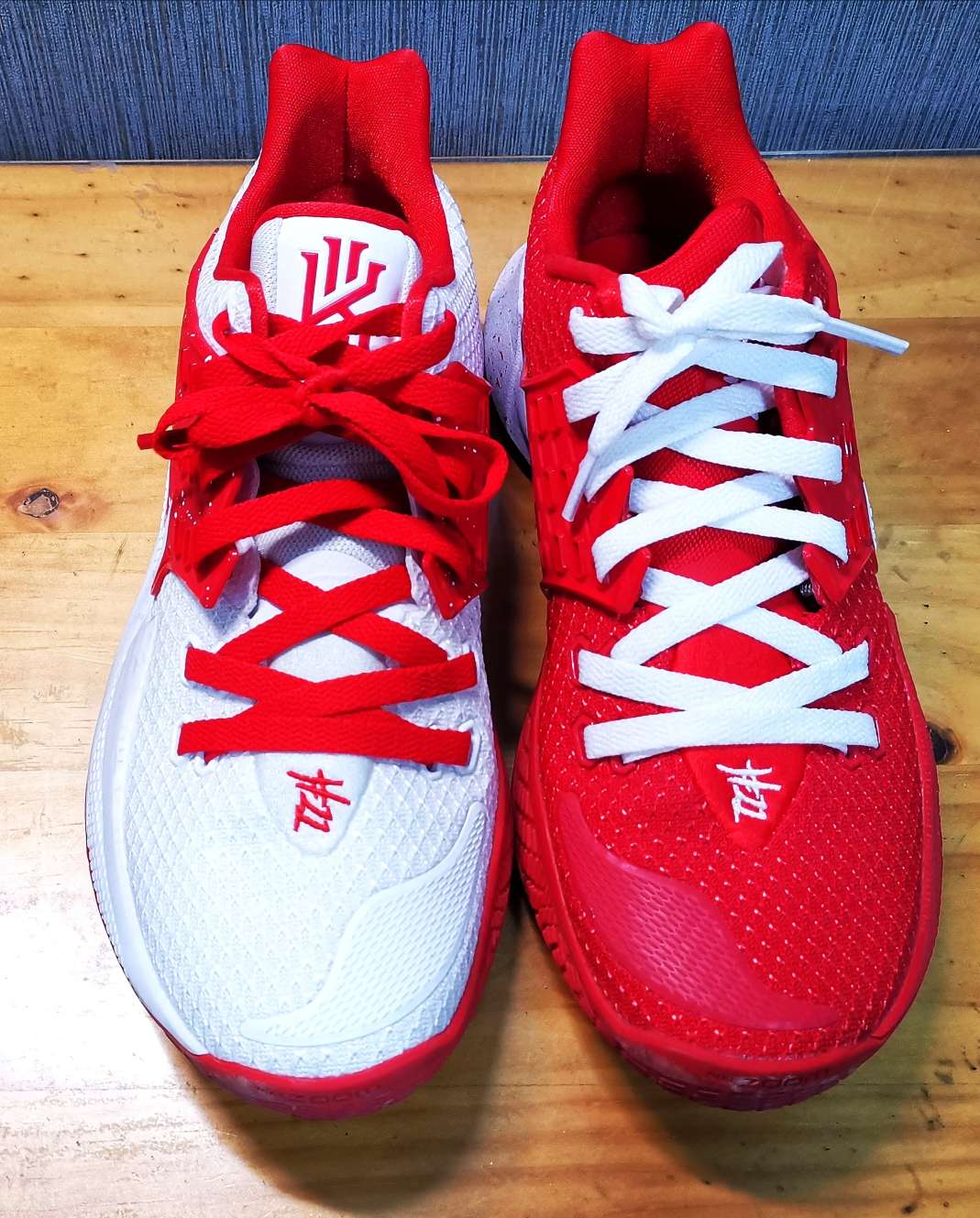 闲来无事给自己配了个红白鸳鸯😂 有没有点小帅😎 鞋实战性能没什么说的 ①抓地力非常好,不怕沾灰,室内外都很不错 ②缓震的话后掌绝对比kyrie 6舒服些,毕竟前后zoom。整体来讲中底不是很软但是比较有韧性,很适合突破党 ③耐磨就相对一般了,纹路虽然硬,但肉眼可见的浅 ④防侧翻和抗扭就一个字“稳” ⑤重心整体也蛮低(增高效果差了点😂😂😂),鞋底内侧也有上翻,适合变向 ⑥鞋整体偏小一点(毕竟是外国版...