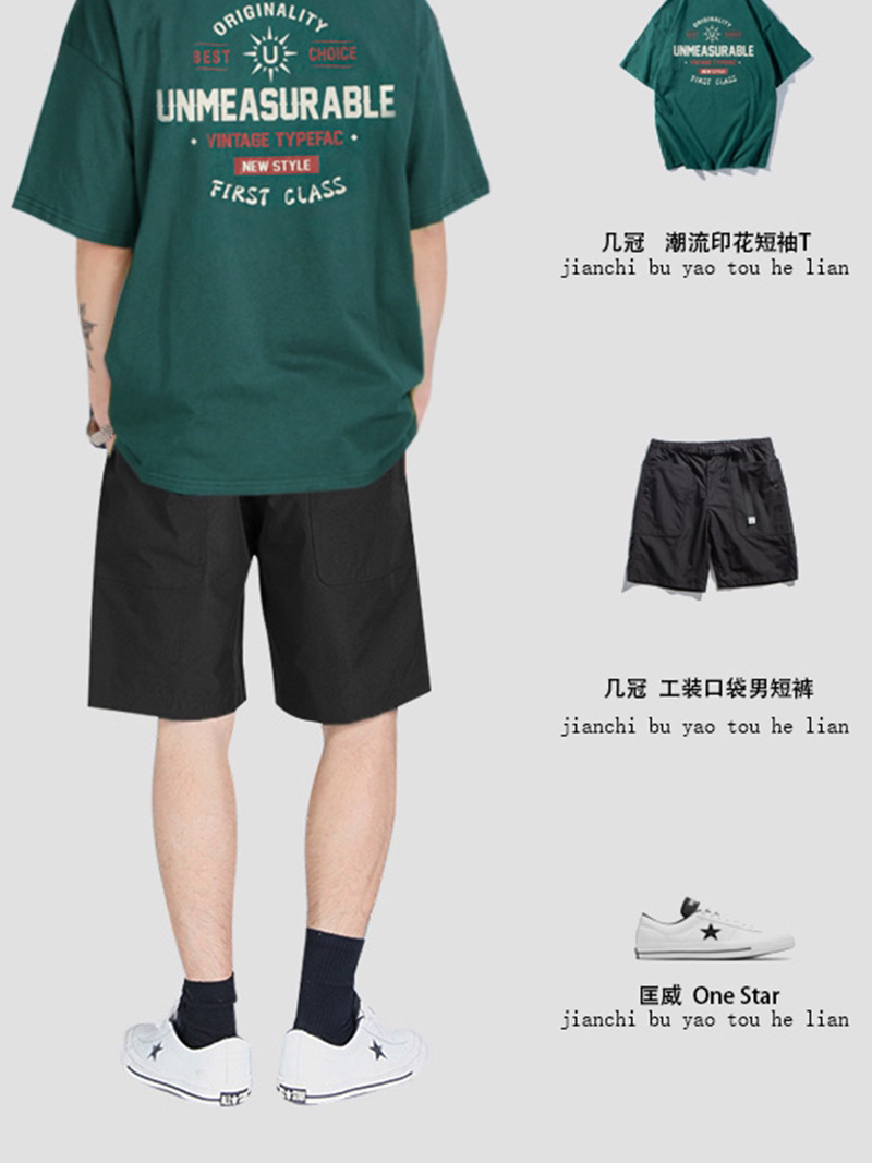 身高165~180男生夏季短裤搭配 模特身高/体重:176cm/66kg (供参考) 短裤夏天比较百搭的颜色有:黑色,绿色,卡其,灰色 今天分享前两种颜色的搭配 黑色是最百搭的颜色,没有之一,当你不知道上衣搭配什么颜色的裤子时,选他准没错 绿色可以搭配白色,黑色,土黄,藏青等