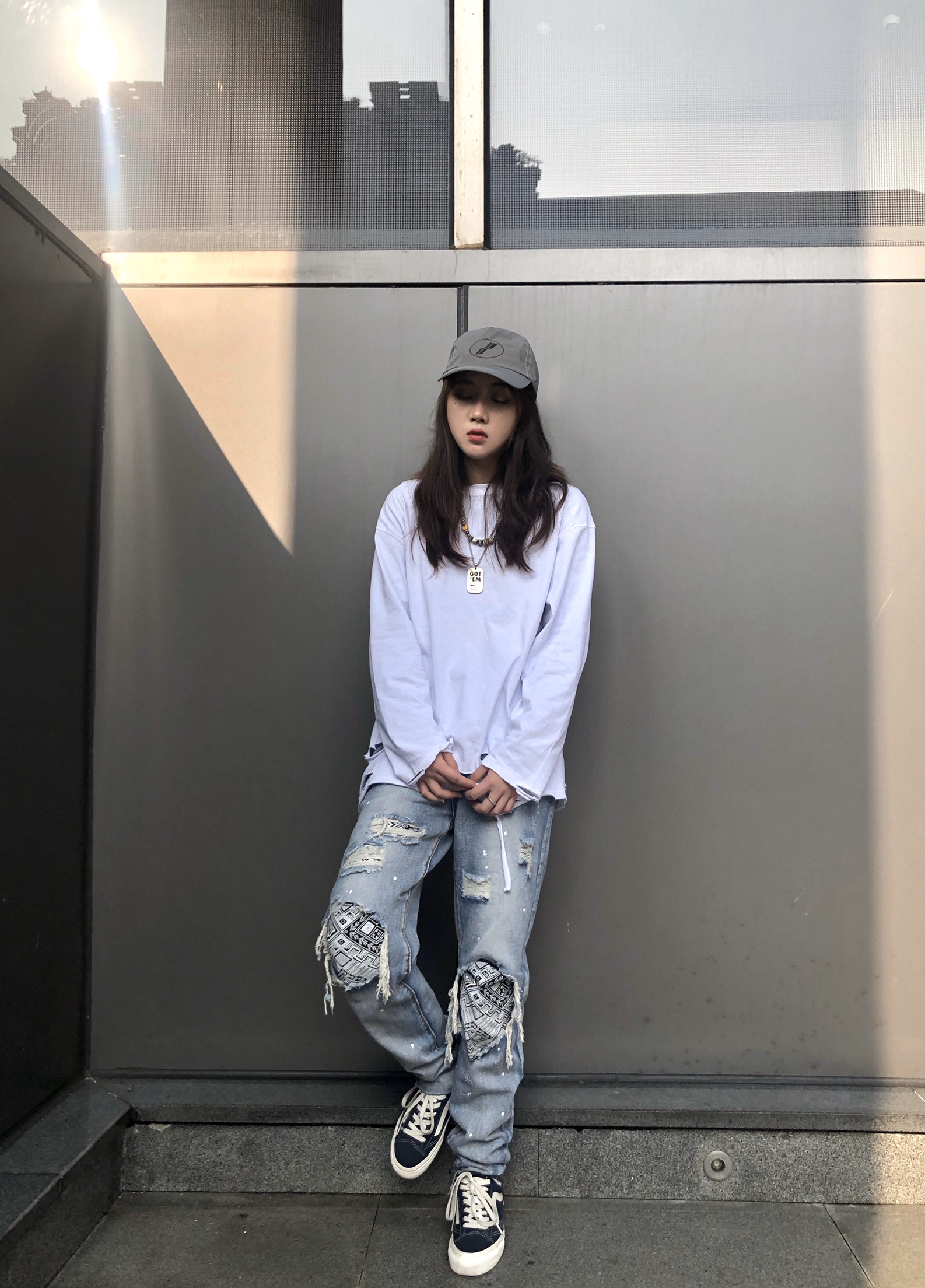 女生也可以酷酷的哈 穿一点os 或者破洞 🎩:We11done 👔:UCAI ORIGINAL 👖:UCAI ORIHINAL 👟:Vans 36 style