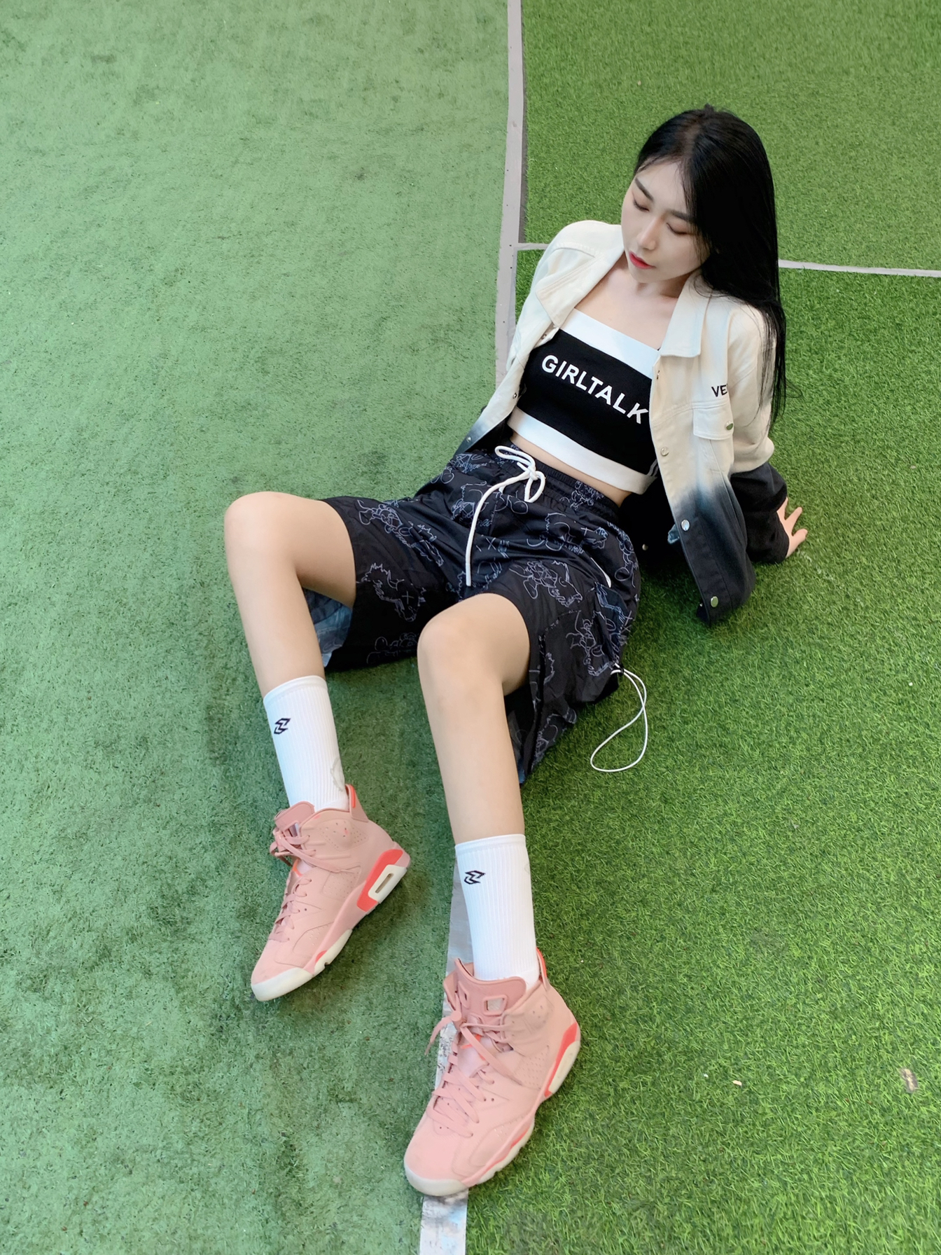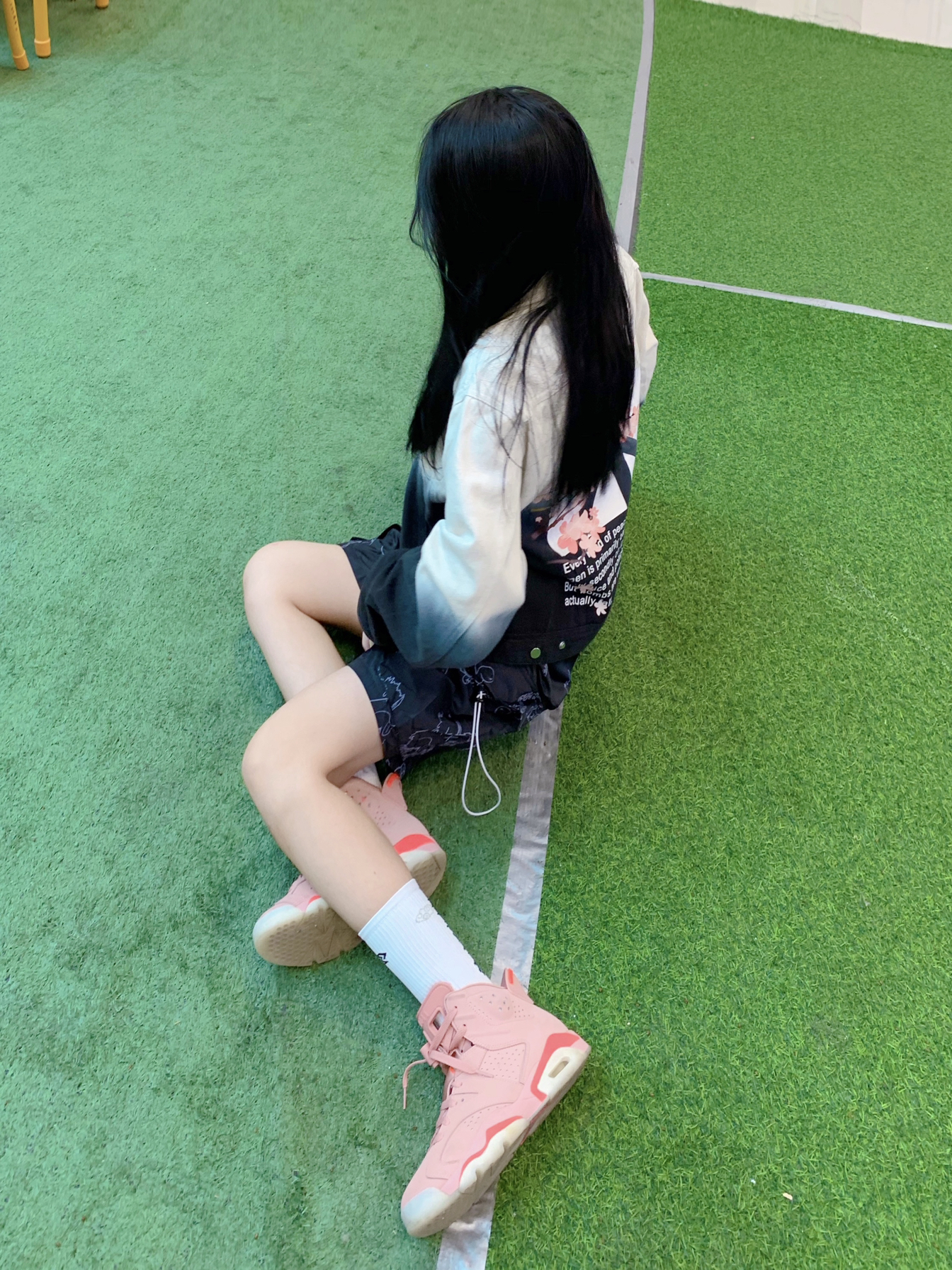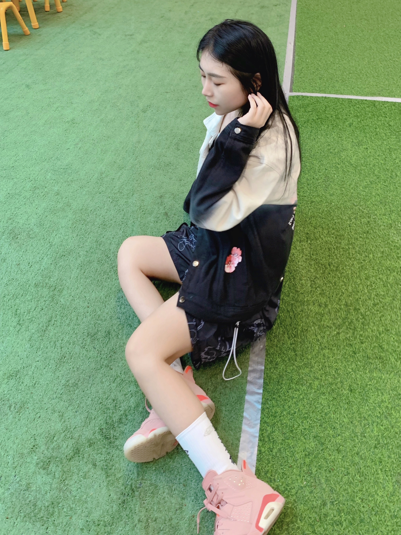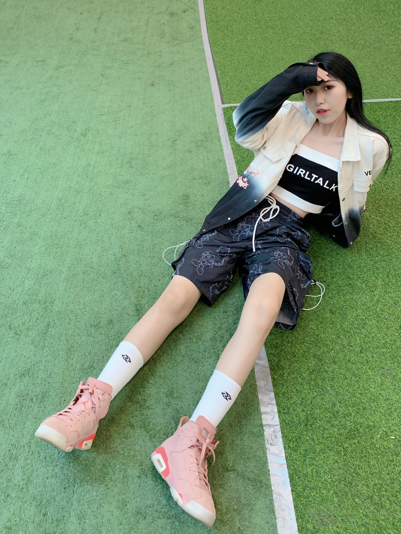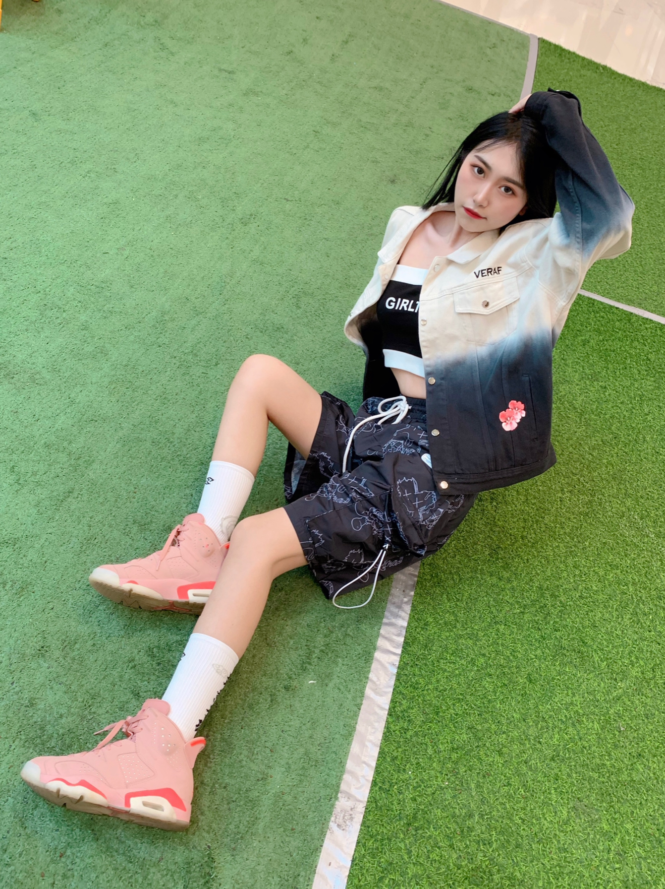 黑白渐变夹克,搭配满印五分裤,显高显瘦咧 出街凹造型啦~~~ - 👚:VERAF CA 🎽:私服 👖:PCMY 🧦:左右力量 👟:Aj6脏粉 - VERAF渐变花卉牛仔夹克,最近下雨,可以穿个外套出门以备不时之需,这件外套真的是春天里的一抹亮色,花卉图案碰撞牛仔像极了爱情💑这样走在街上路人看到都是三步一回头啊! 因为上身图案比较多,所以裤子选择图案相对低调的来搭配,这款叉叉人满印五分裤虽然看着图...