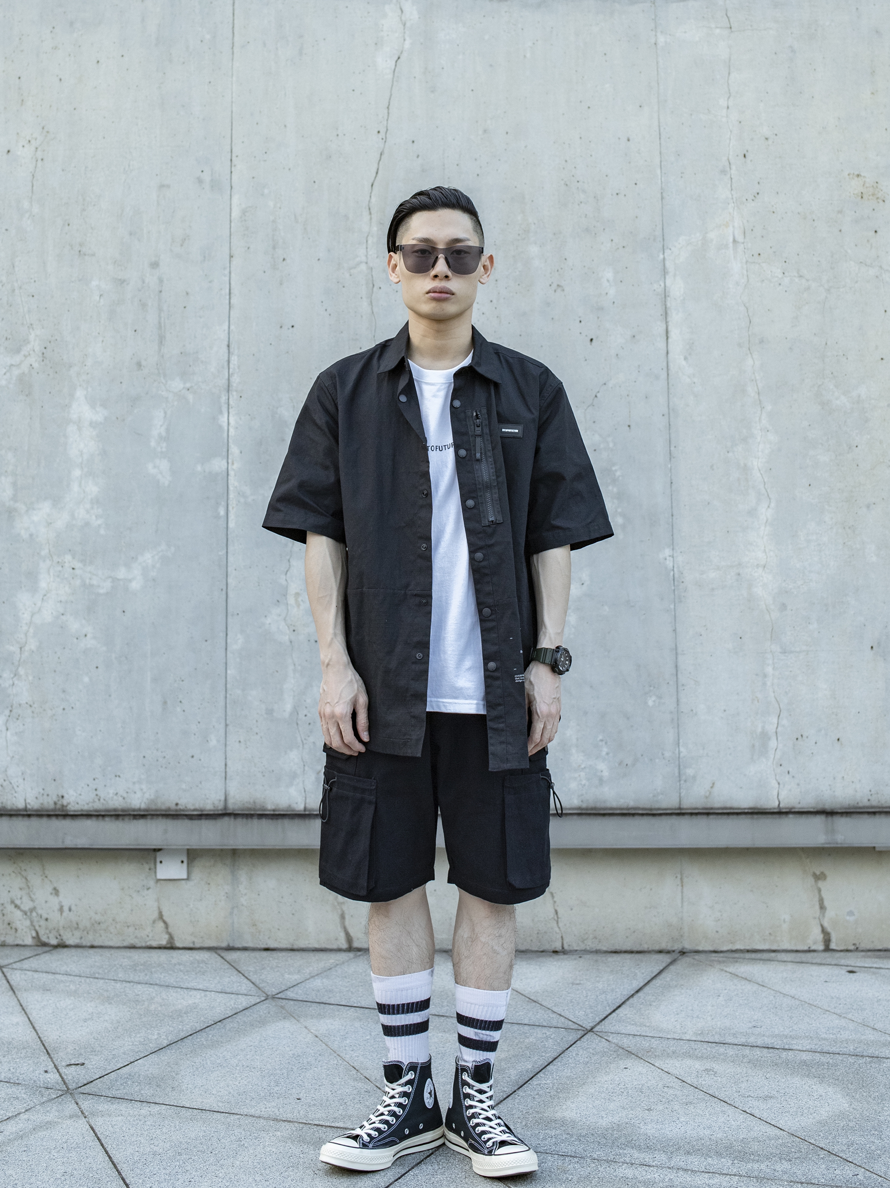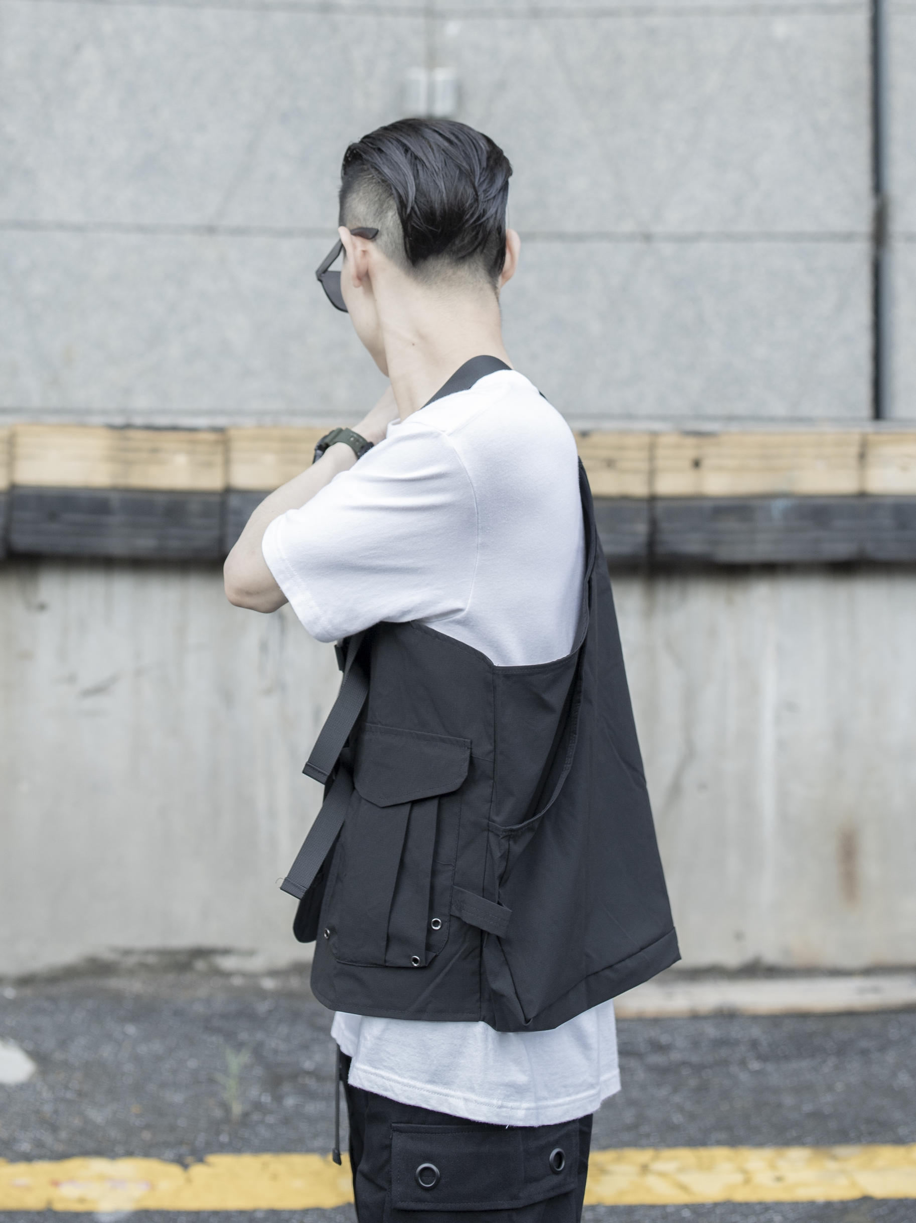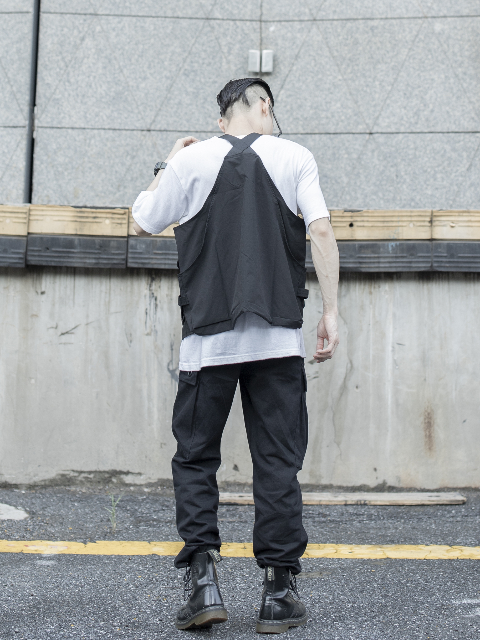 黑白机能工装 穿搭技巧: 1:机能类单品型格硬朗,可考虑全黑或者黑白颜色搭配 2:搭配工装马甲可选择面料硬些的工装裤 3:鞋子选择马丁靴风格自然融为一体,选择CONVERSE 1970黑色高帮或者VANS SK8 HI黑色亦可 马甲:M5IS 机能速干纤维面料,长度可调节织带设计,双口袋装饰实用而不失质感,黑/灰/军绿三色选择 工装裤:m5is 独特四口袋设计,纯棉斜纹布面料,经典束脚版型,织带拼...