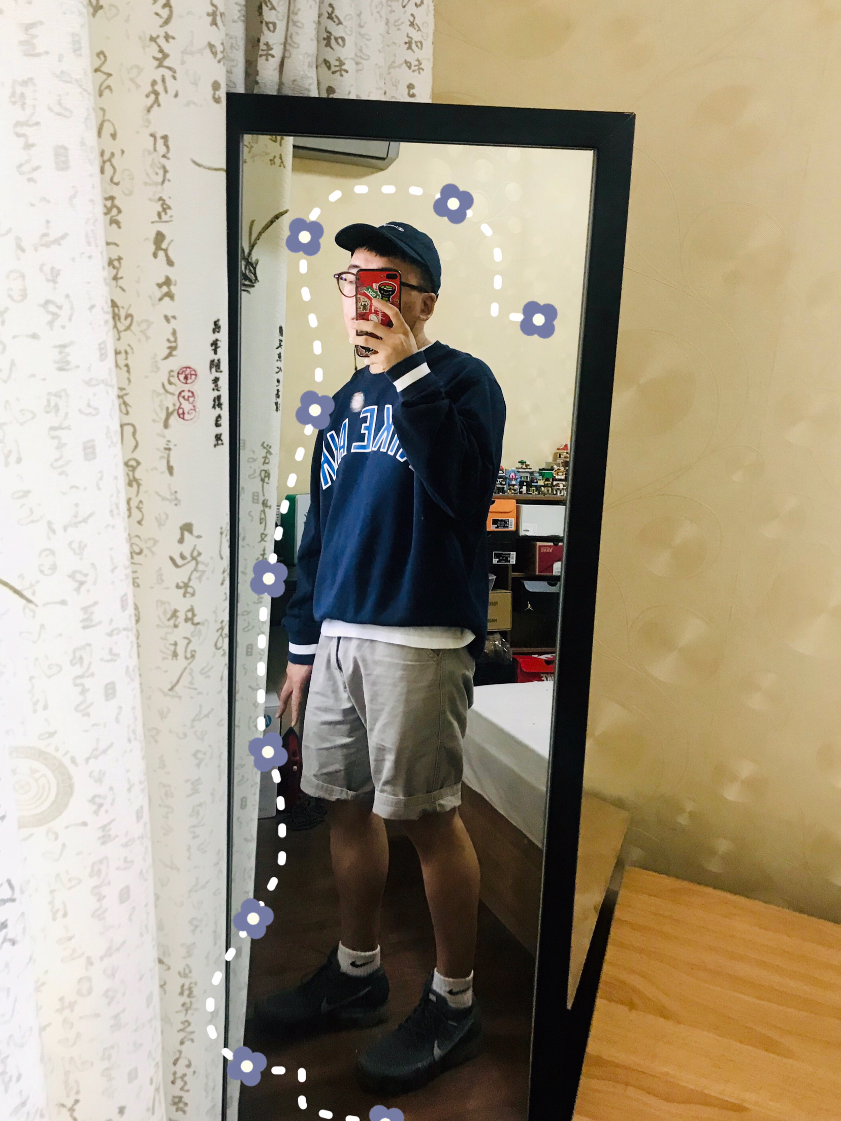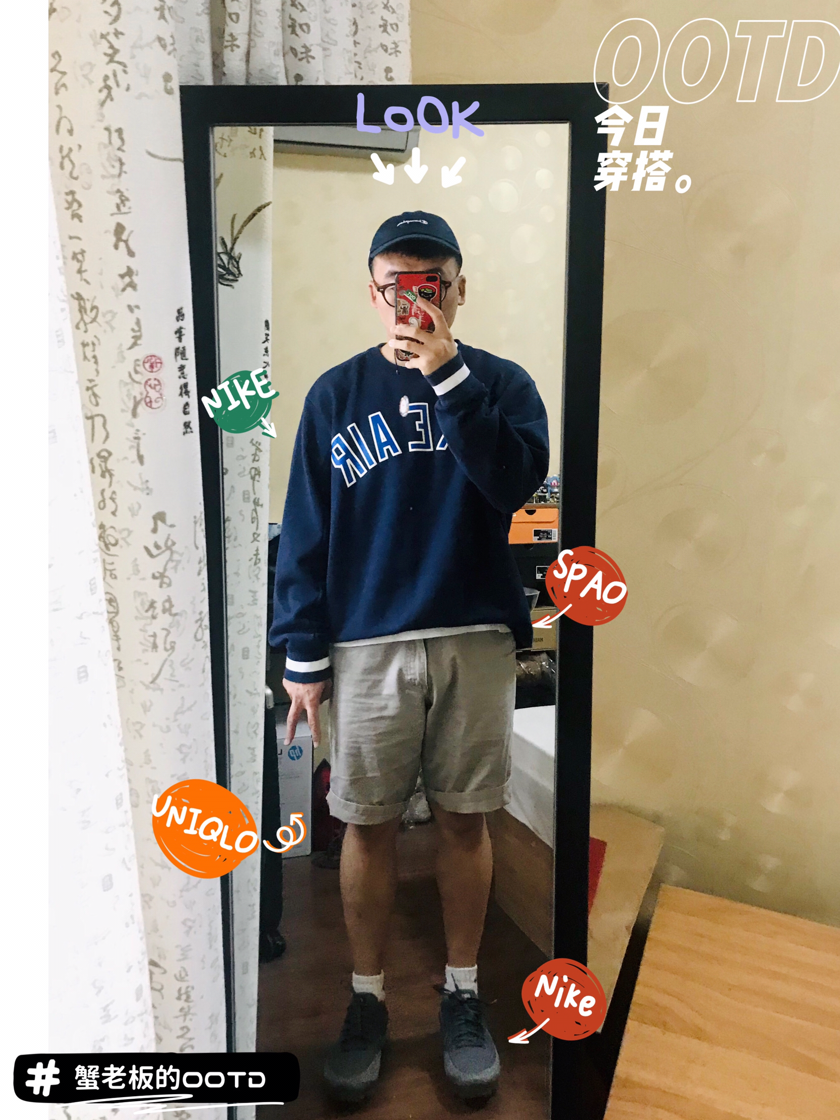 成都这几天的天气 真是忽冷忽热忽冷忽热 小蟹被迫又穿起了卫衣 毕竟~冷🥶 不管这样上面宽松,下面过膝短裤 还是能让人显得不那么矮(虽然本来就矮) 👕 Nike 耐克 复古宽松卫衣 🩳 优衣库 Uniqlo 工装短裤 🧦 Nike 耐克 短袜 👟 Nike 耐克 air vapormax