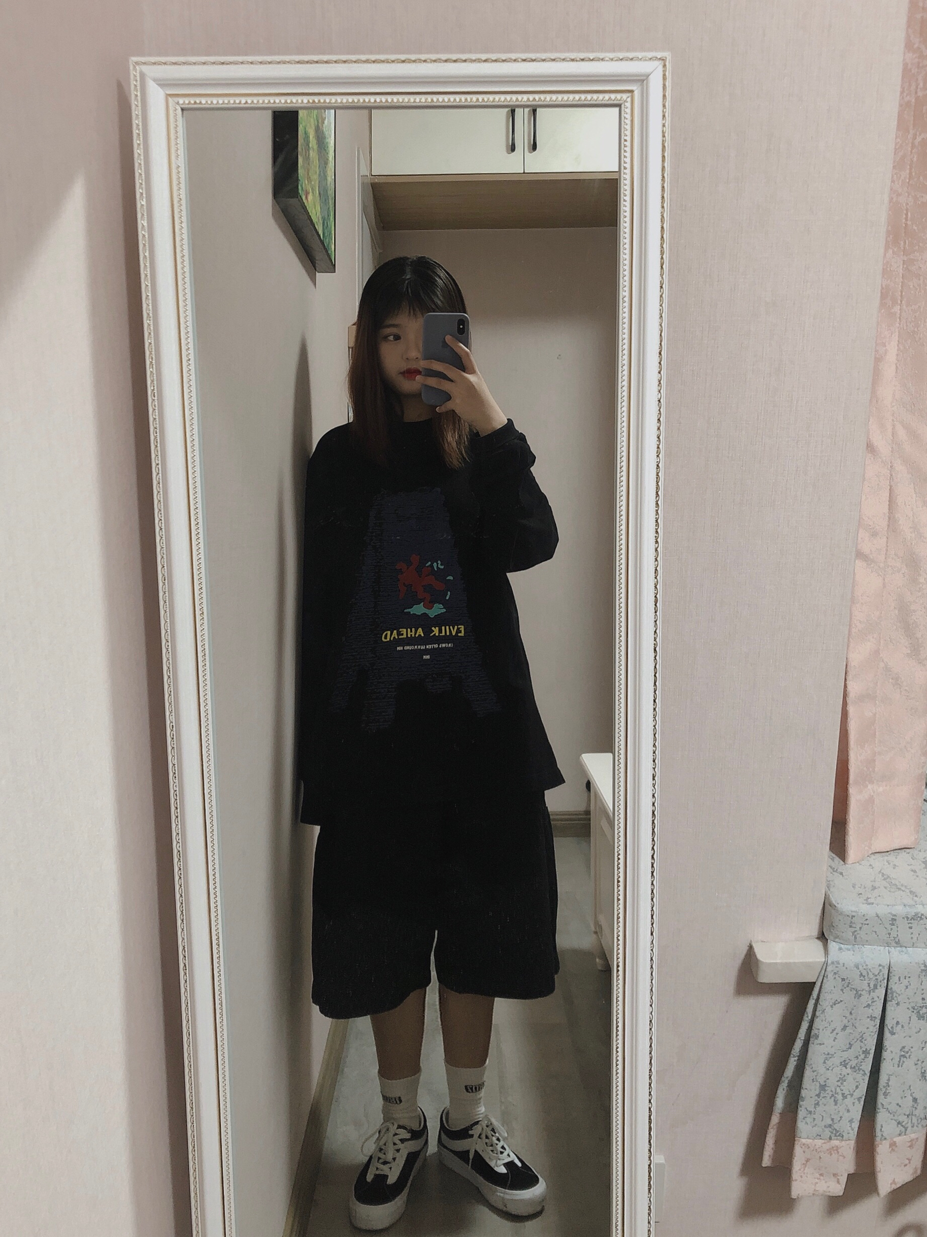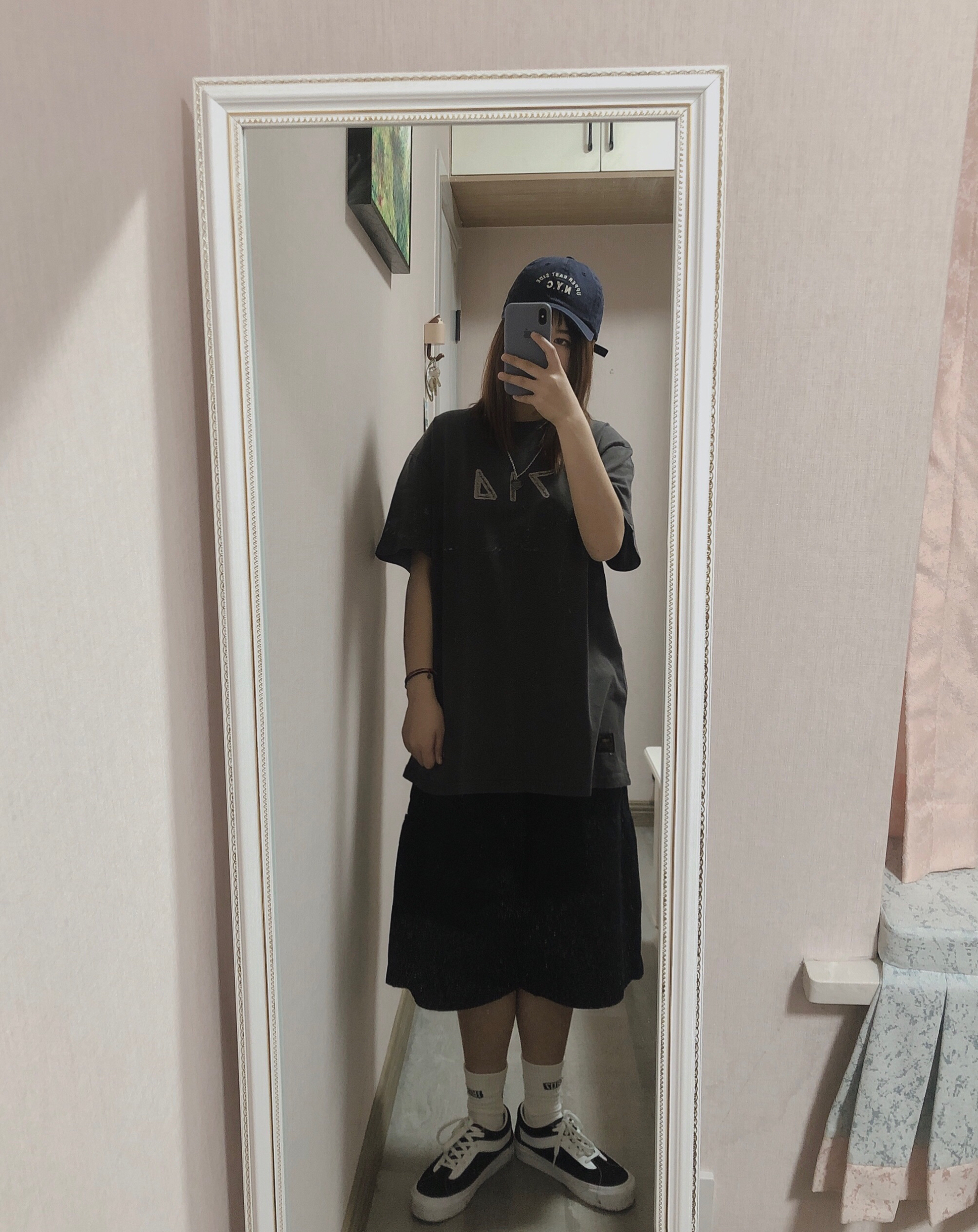虽然这双鞋子才买了几天就降价了 但是安慰自己 好穿好穿 底软底软 还是比伯同款 早买早享受早买早享受 👔:714street 不是黑色的!是黑灰色 挺百搭的~ 👖:714street 这条六分裤必须夸一夸 好绝 版型质量什么的都是我想要的样子😭感觉我就是滑板女孩 👟:vans 现在三百多块钱就可以买到的比伯冷门鞋真的很香!尤其是夏天无论是套小裙子还是工装裤都真的好好看!