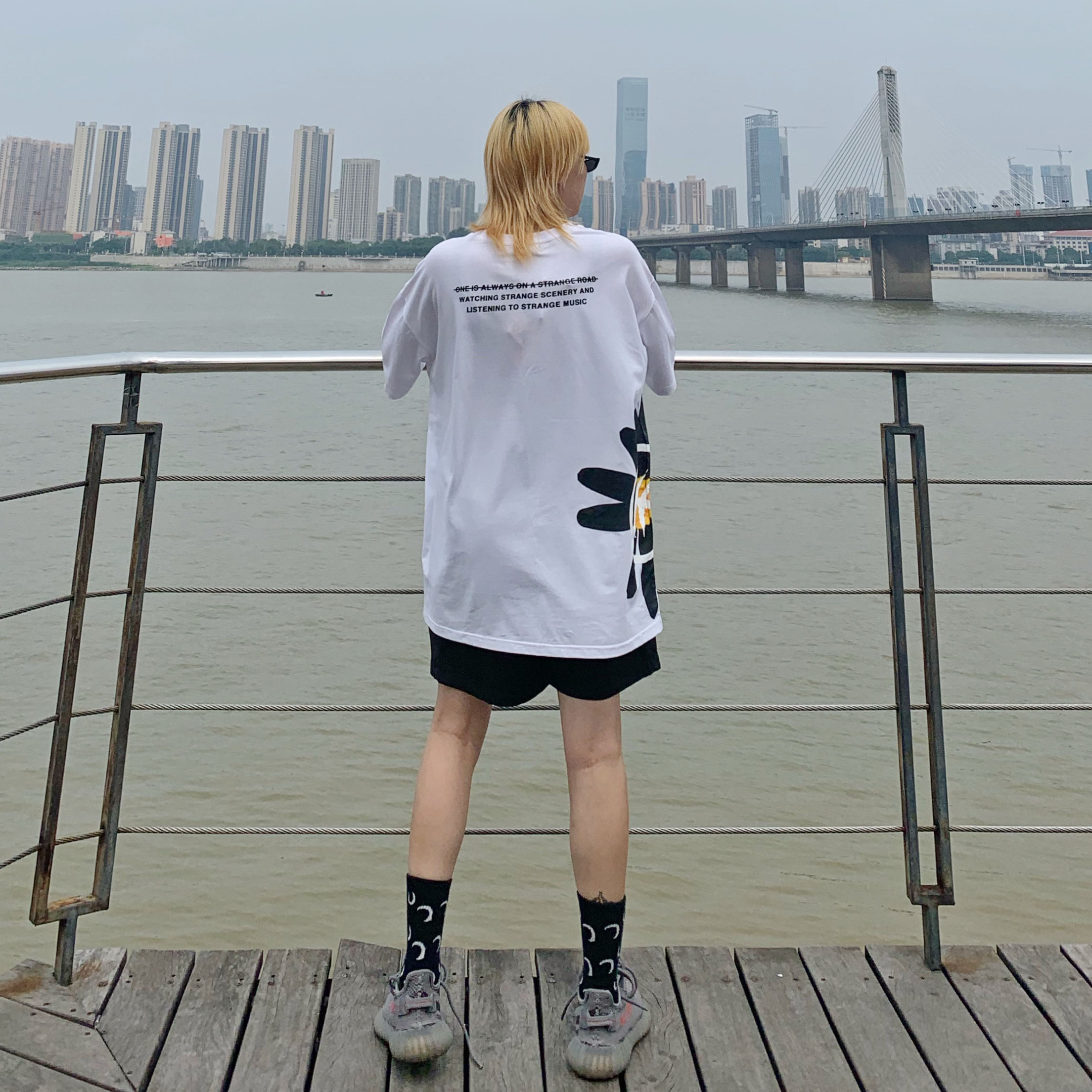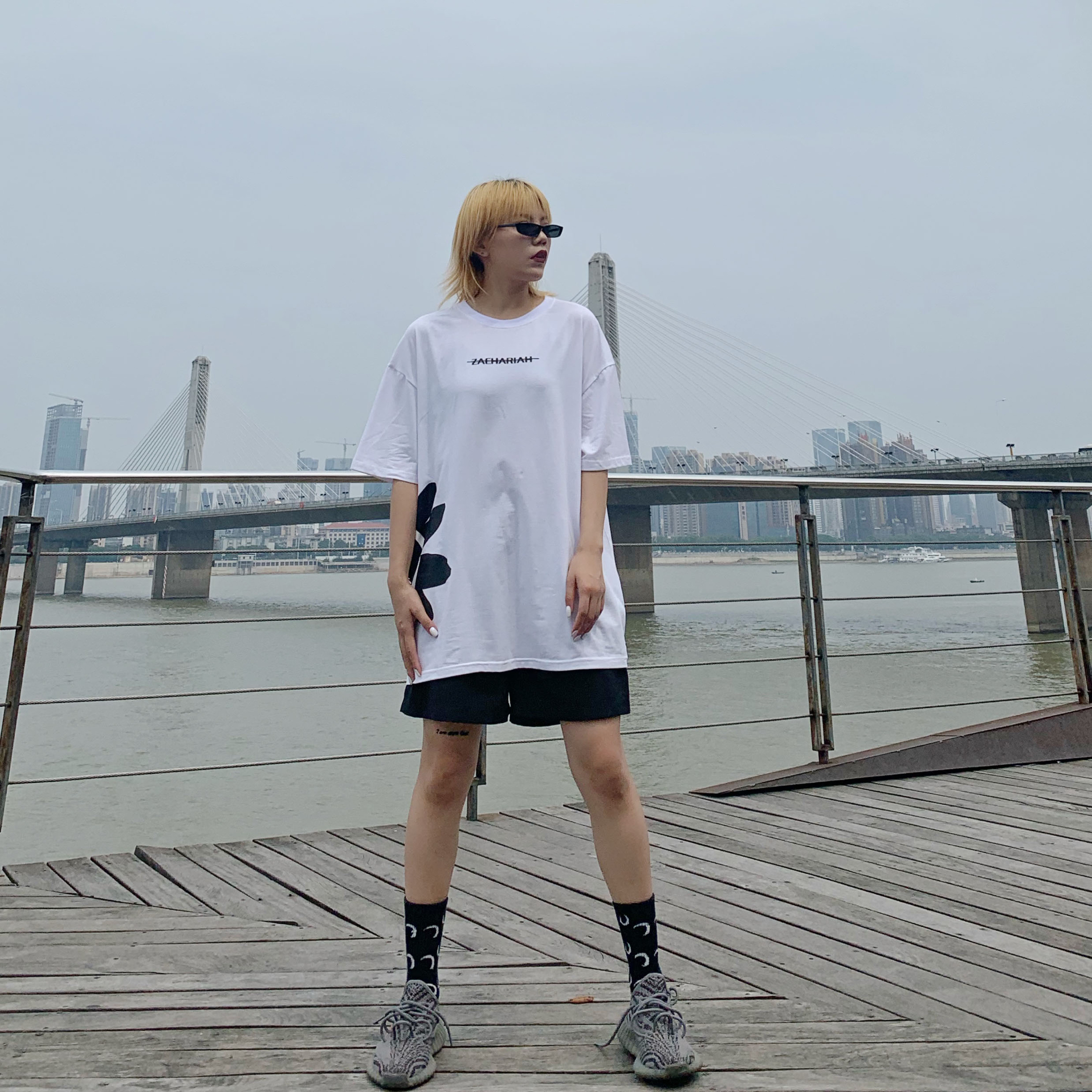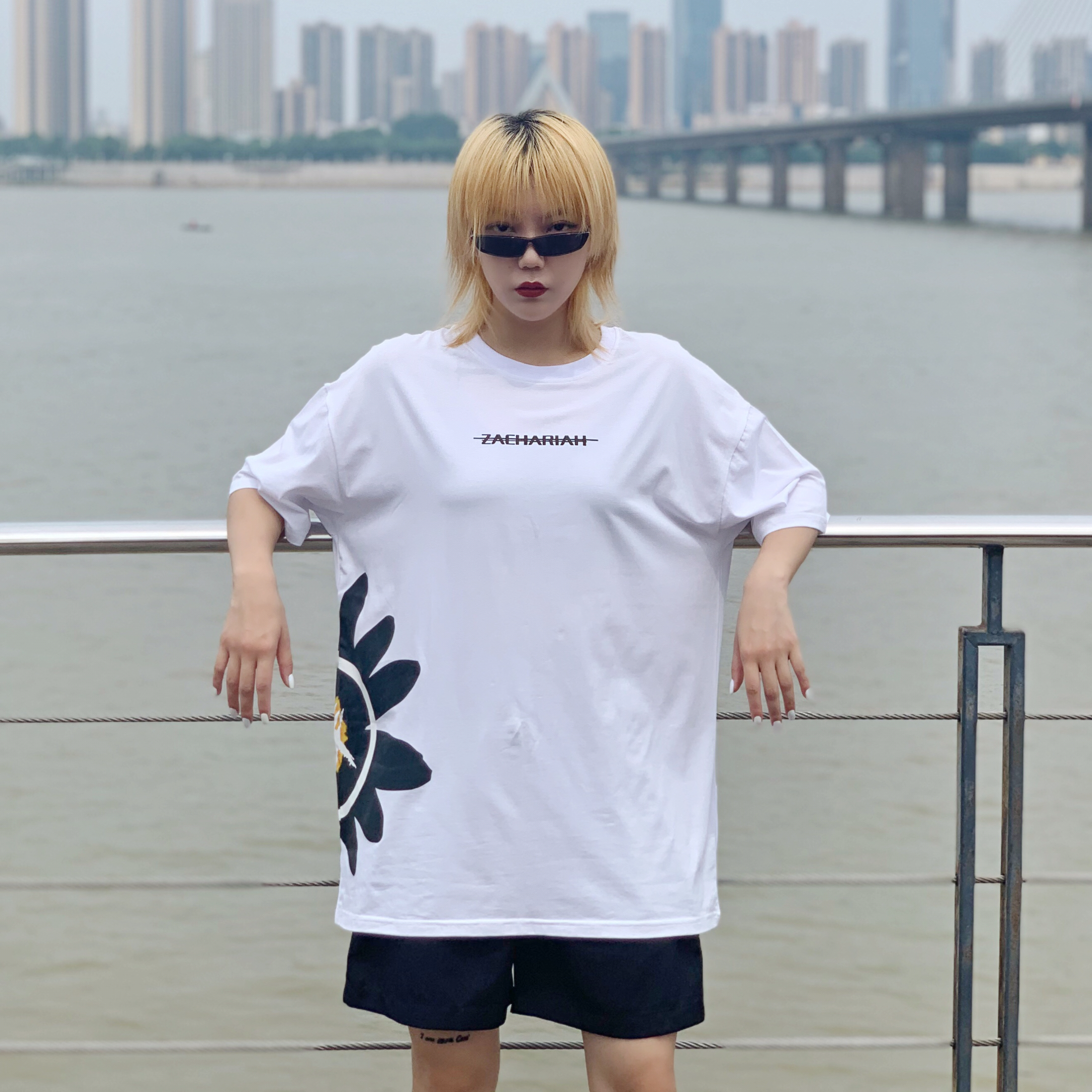 你的酷girl出街啦!上次染的头发褪色成这样了,再加上长出了一些黑色的头发,最近看自己格外不顺眼,今天和姐妹👭去染一下,我的预约发型师需要等,我俩就在河边走走,吹吹风~ 搭配建议 猫眼墨镜🕶️ 看很多网红都买这个型的墨镜了,感觉非常特别,戴起来时尚感爆棚,是最近新入的一件搭配神器啊!走在路上戴这个绝对潮~ ZACHARIAH小雏菊侧印短袖 今年就像穿点酷酷的短袖,但是太花哨的我还怕自己hold不...