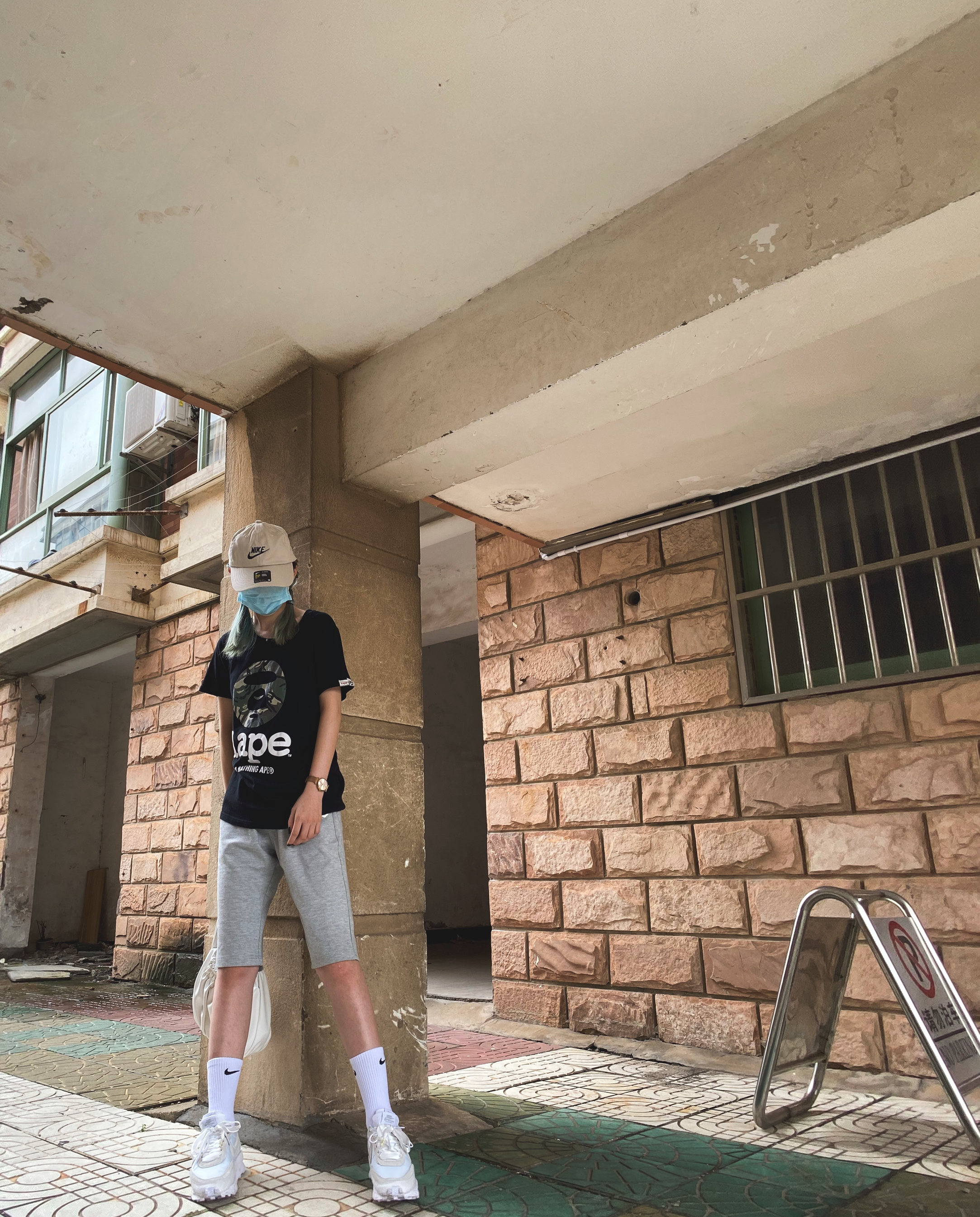 🧢:nike 👔:Aape 👖:森马 👟:sacai纯白 真就是随手拍 快放假了 出门办点事儿 柜子里拿了一条今年夏天还没穿过的裤子,谁能想到它打完折才29呢 出门的时候刚好抓到室友回来 就拍了这组图 夏天的时候容易出汗 最喜欢的就是t配短裤了 一般都是套着拖鞋出门 拖鞋昨天泡水了 只能认真穿鞋穿🧦啦