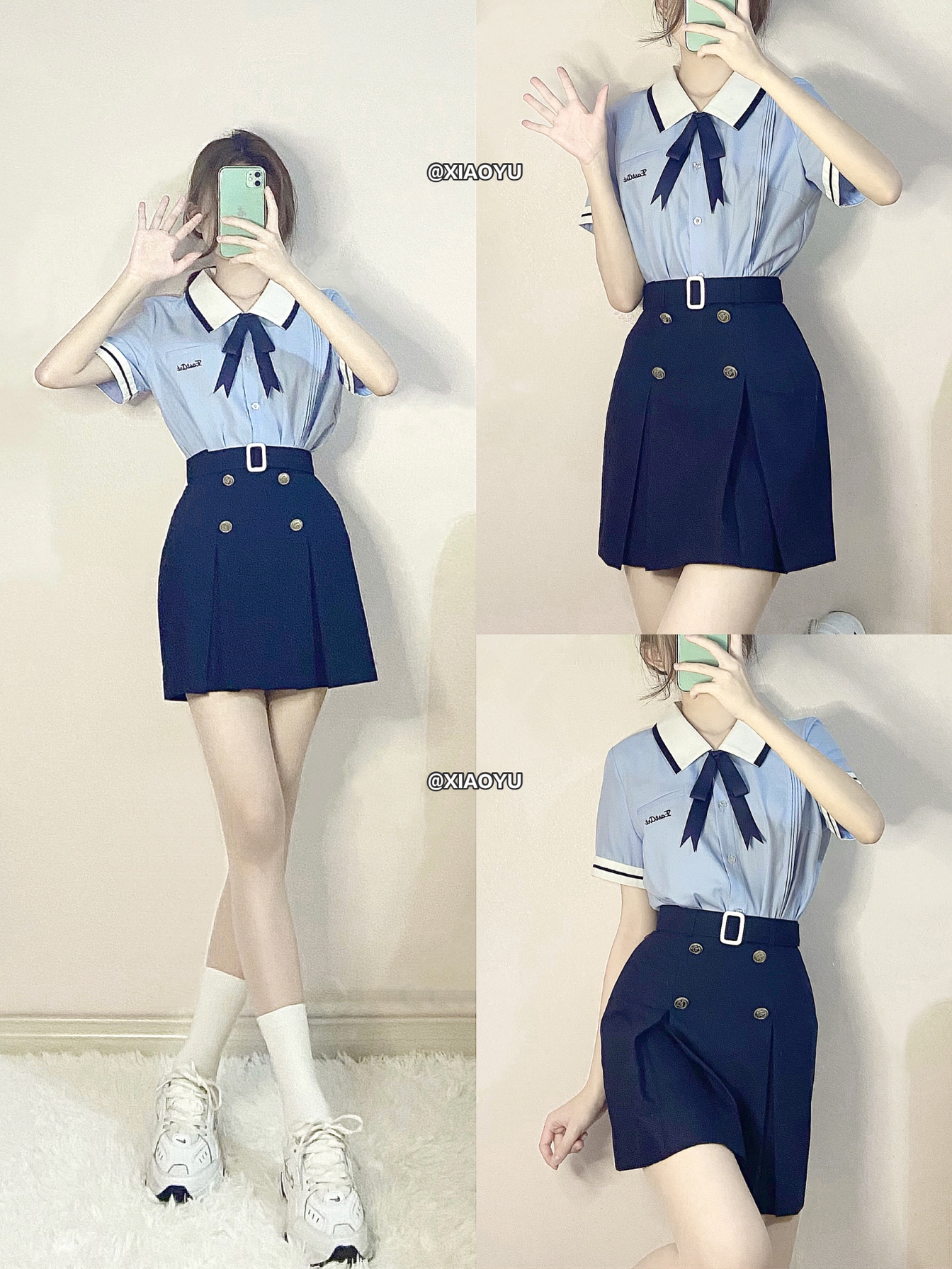 最近在忙着毕业啦!留下一组在学院穿JK的照片。 👔/👗:梗豆物语 灰色纯色的裙子在画面中会更干净,灰金的领带和裙子颜色搭配,又有些新的亮点! 👟:Asics Jog100 2 鞋子没有选择标准的制服鞋,就穿了Asics这双纯黑的鞋子来替代,效果也还OK哦!