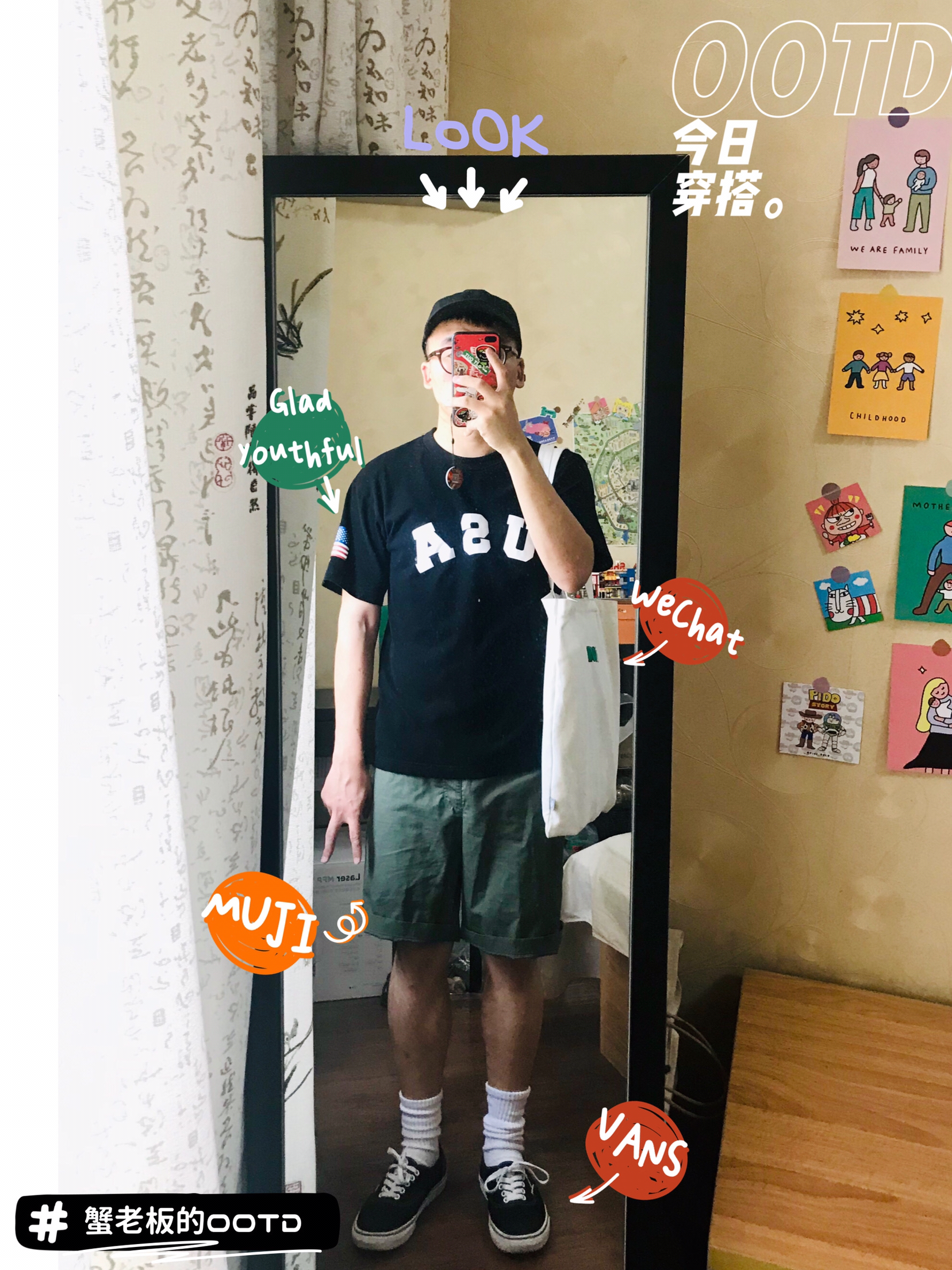 明明今天才周三 感觉像是过了个周五 成都闷热的天气 真是让人莫名烦躁 👕Glad youthful USA 🩳 无印良品 MUJI 水洗短裤 🧦 优衣库 Uniqlo 长袜 👟 VANS 范斯