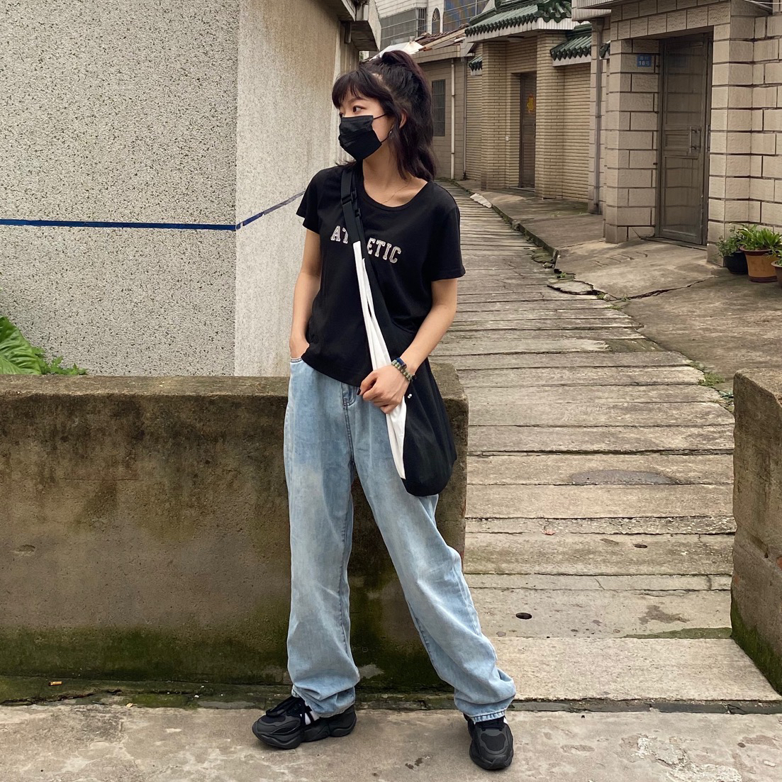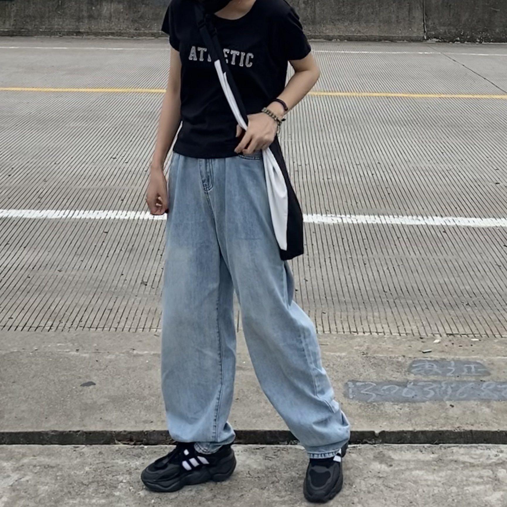 ✔️“上短下长”请记住这条搭配公式 ▪️T恤:楽東商店 很喜欢这家店 店主不常在可以 是经典百搭t 短款的版型很显身高!黑色很百搭,普通又不会撞款,布料柔软,穿起来很舒服,宽宽大大的很舒服! 👖裤子:楽東商店 这条裤子是我近期新宠,太好看了吧! 版型和颜色都爱了!而且很百搭!复古做旧风穿起来!裤子很柔软 面料是很棒的!版型真的超级棒,很显腿长! 💼单品:包包和鞋子都选择了黑白系,和整体的颜...