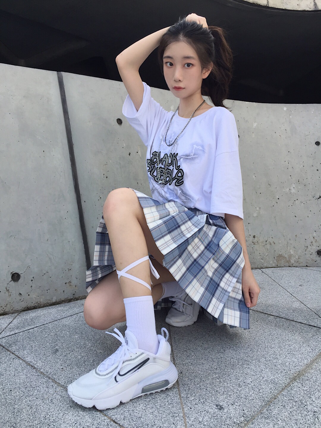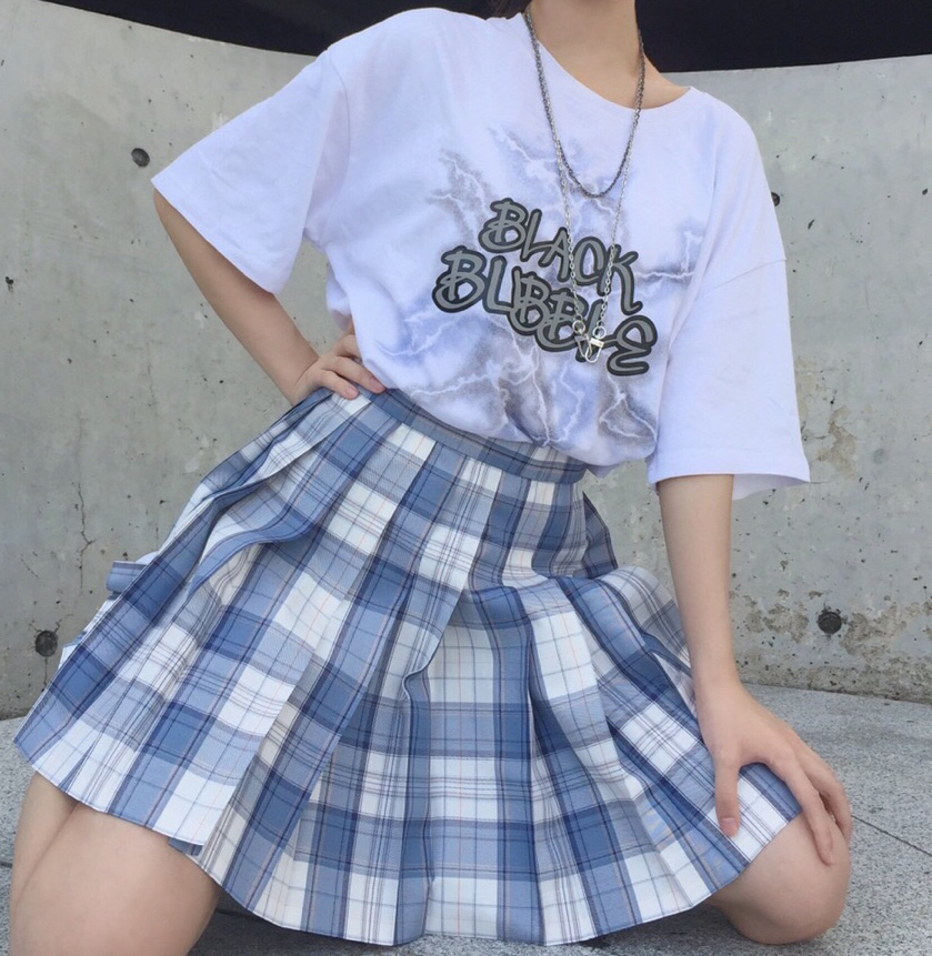 蓝白色系jk穿搭♡ 上衣:bmpc 衣服图案超好看 胸前英文加上闪电元素 很特别 上身很舒服 不会热很透气 面料很不错 裙子:稻荷屋 卯月 蓝白色格子真的超好看 日常搭配也很合适 太喜欢啦 鞋:air max2090 这双鞋真的超舒服 网面的材质很透气完全不会闷脚 气垫比较软 走路超舒服