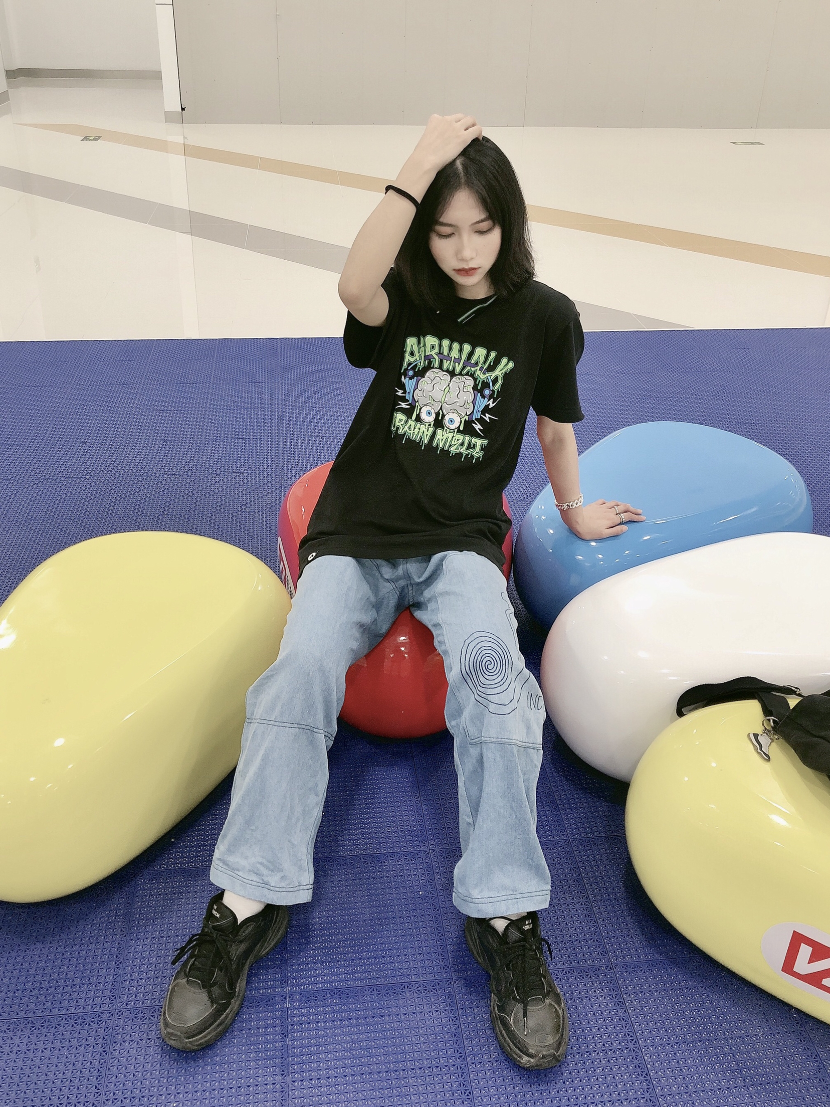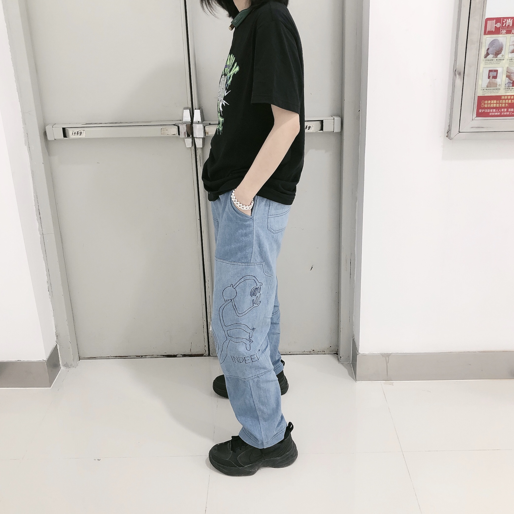 👕:Airwalk 👖:indeed 版型超好看 显瘦显腿长 又有点复古 还有童趣印花 我爱了爱了 手链:theRubz 这个牌子好多明星戴 我爱的易烊千玺也戴了!! 👟:NIKE AIR MONARCH IV 很老爹复古的一款 超百搭