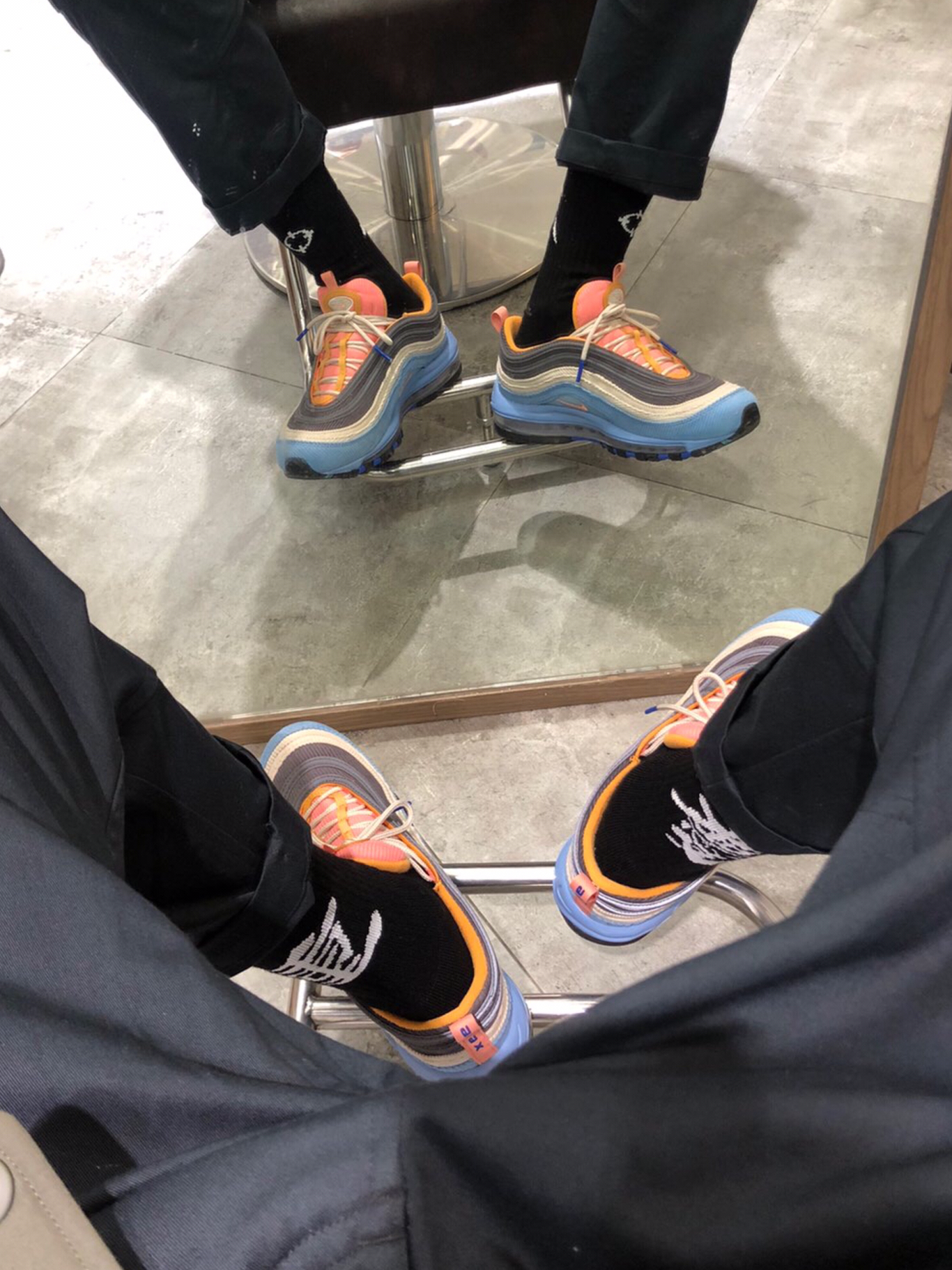 刚看到这款鞋出来的时候第一感觉就是97/1灯芯绒的代替品嘛,一看价格折扣1000多也算不贵, 说下鞋子:鞋面灯芯绒蓝色鞋身粉色鞋舌还有一圈3m反光鞋子配色骚气透露高级自穿推荐~蓝色比粉色好搭配些 元芳你怎么看😁😁😁