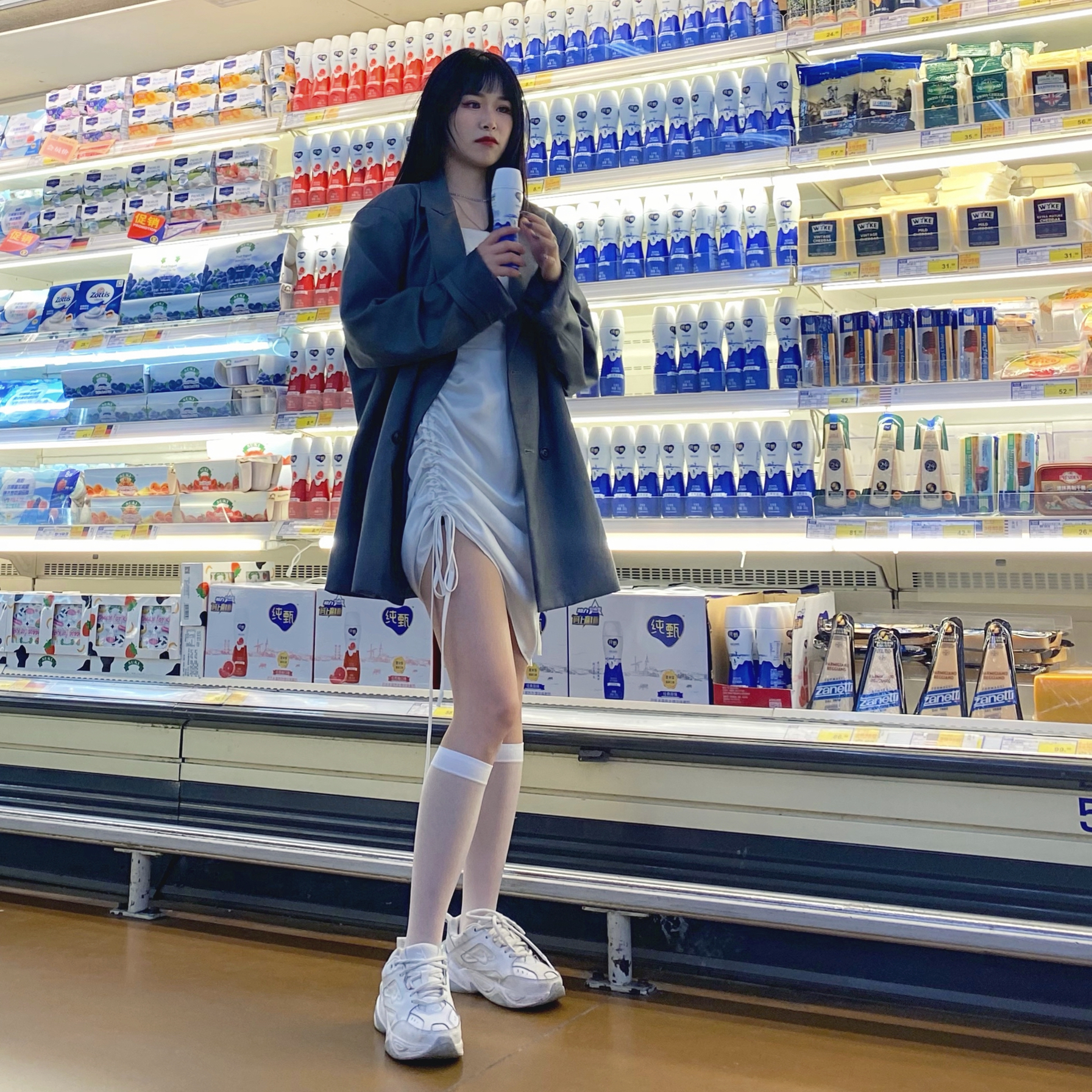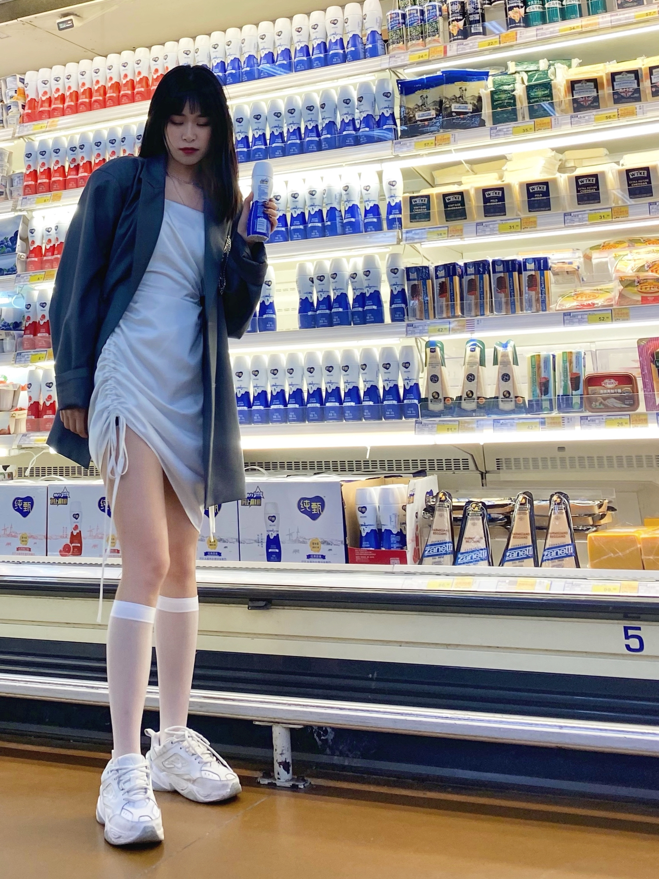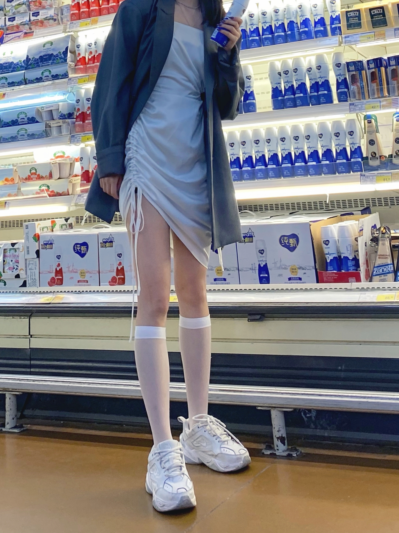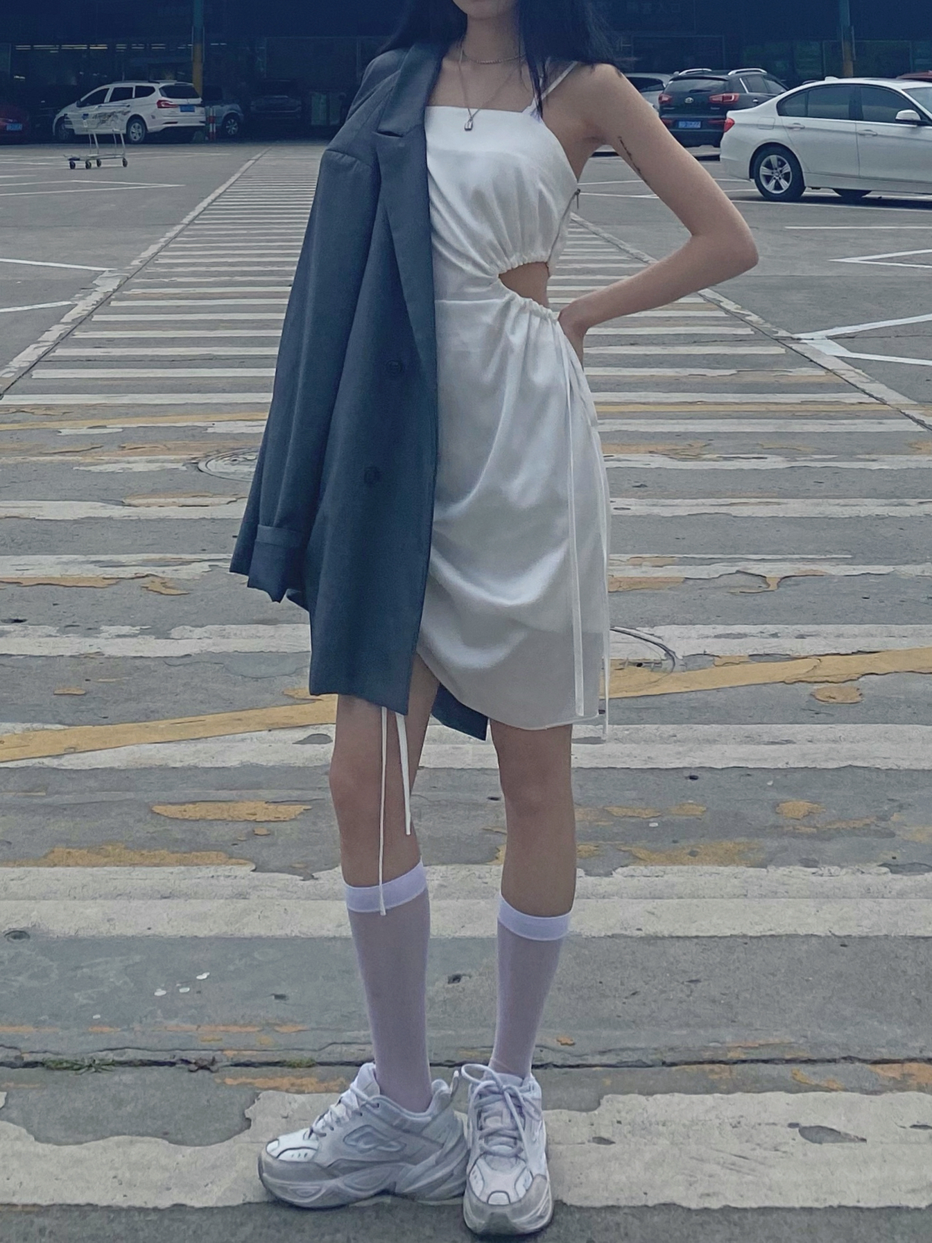一直都不是喜欢穿凉鞋或者高跟鞋的人 想着白裙肯定也只能搭白色的运动鞋 最后就选择m2k的白色啦 超级数独小个子显高又显瘦