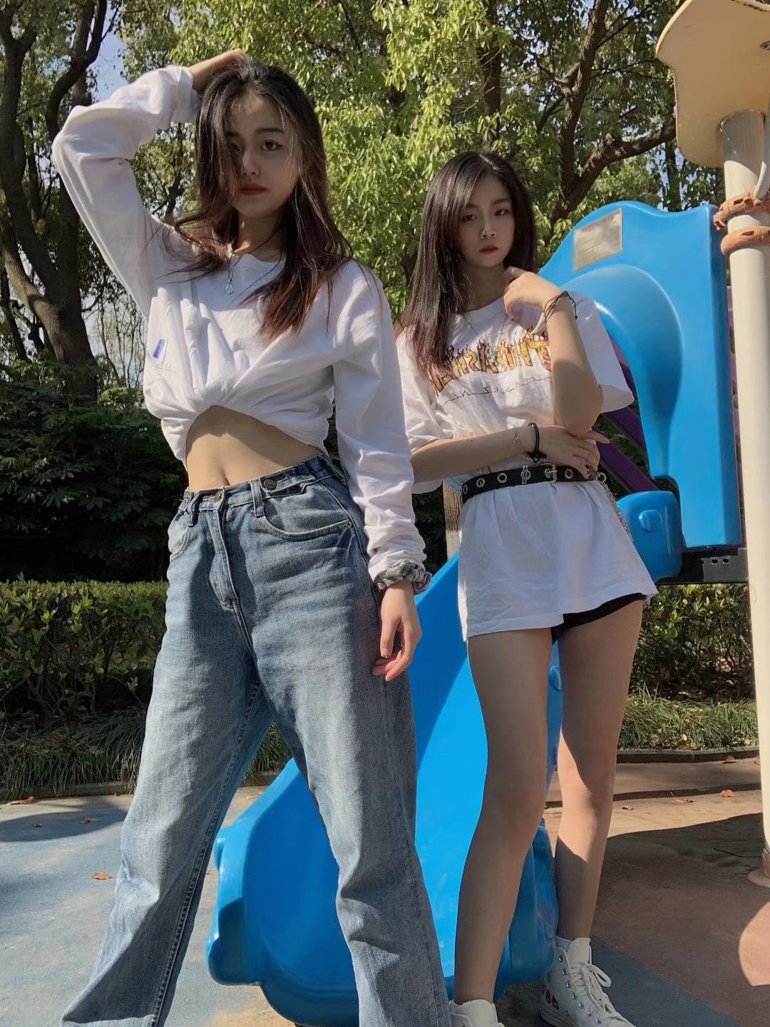 快乐女孩称霸乐园 👔:thrasher短袖/Vans短袖 👖:某宝 👟:匡威 穿搭心得:白色的短袖搭配一条链子,或者是折叠进去,给夏日的穿搭透露一点小心机