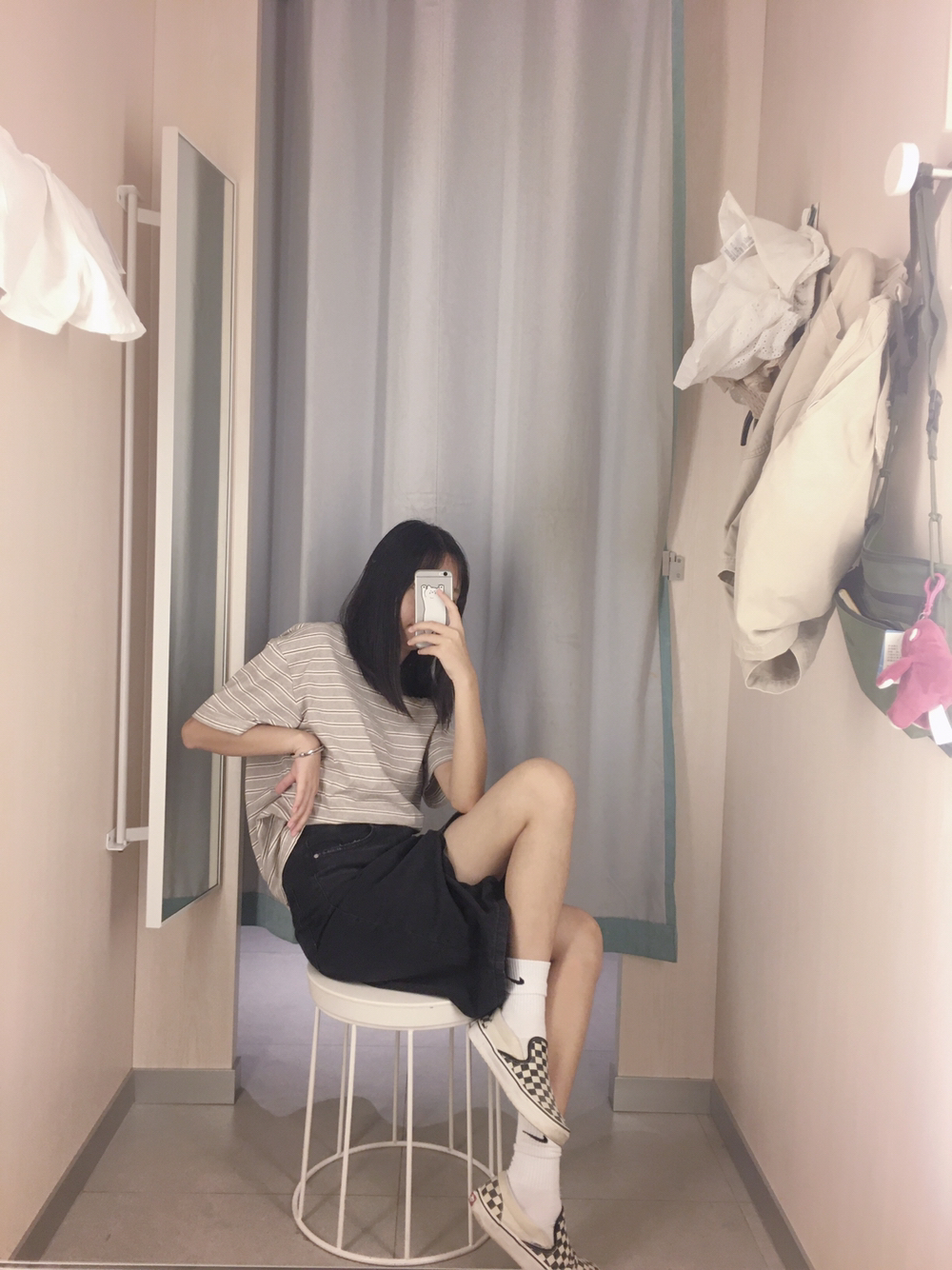 👔:十三世纪 👗:私物 👛:优衣库 👟:匡威one star 选择了一套比较少女风的穿搭白色t是一件十三世纪店铺的其中一件裙子选择了一条深色牛仔短裙作为搭配最后配上一双nike白色高筒袜和一双百搭的匡威one star显得腿更长更细哦配饰就是帽子跟一个橘色小包包搭上一套显的能有色彩感简简单单出街必备穿搭就完成啦!