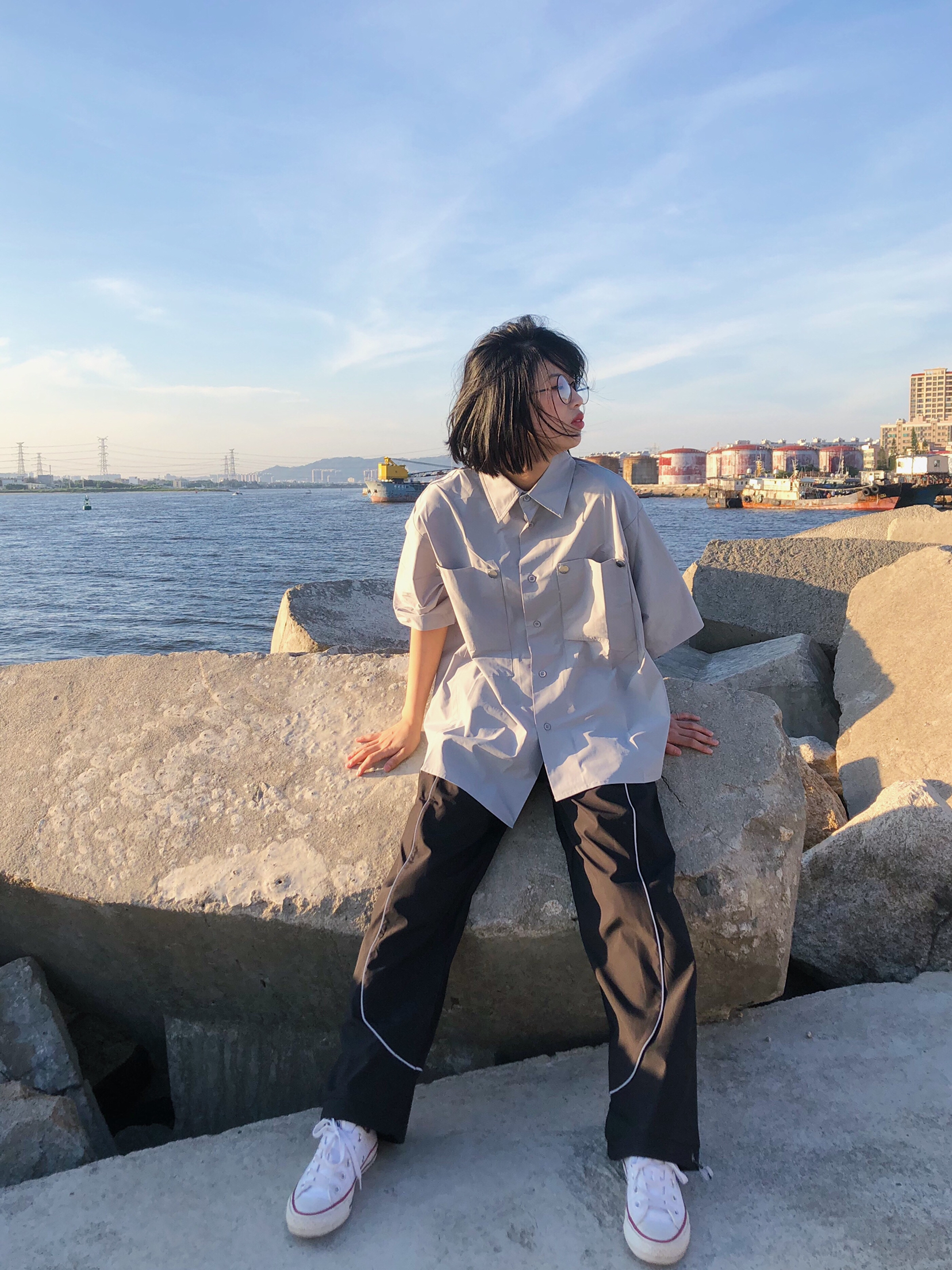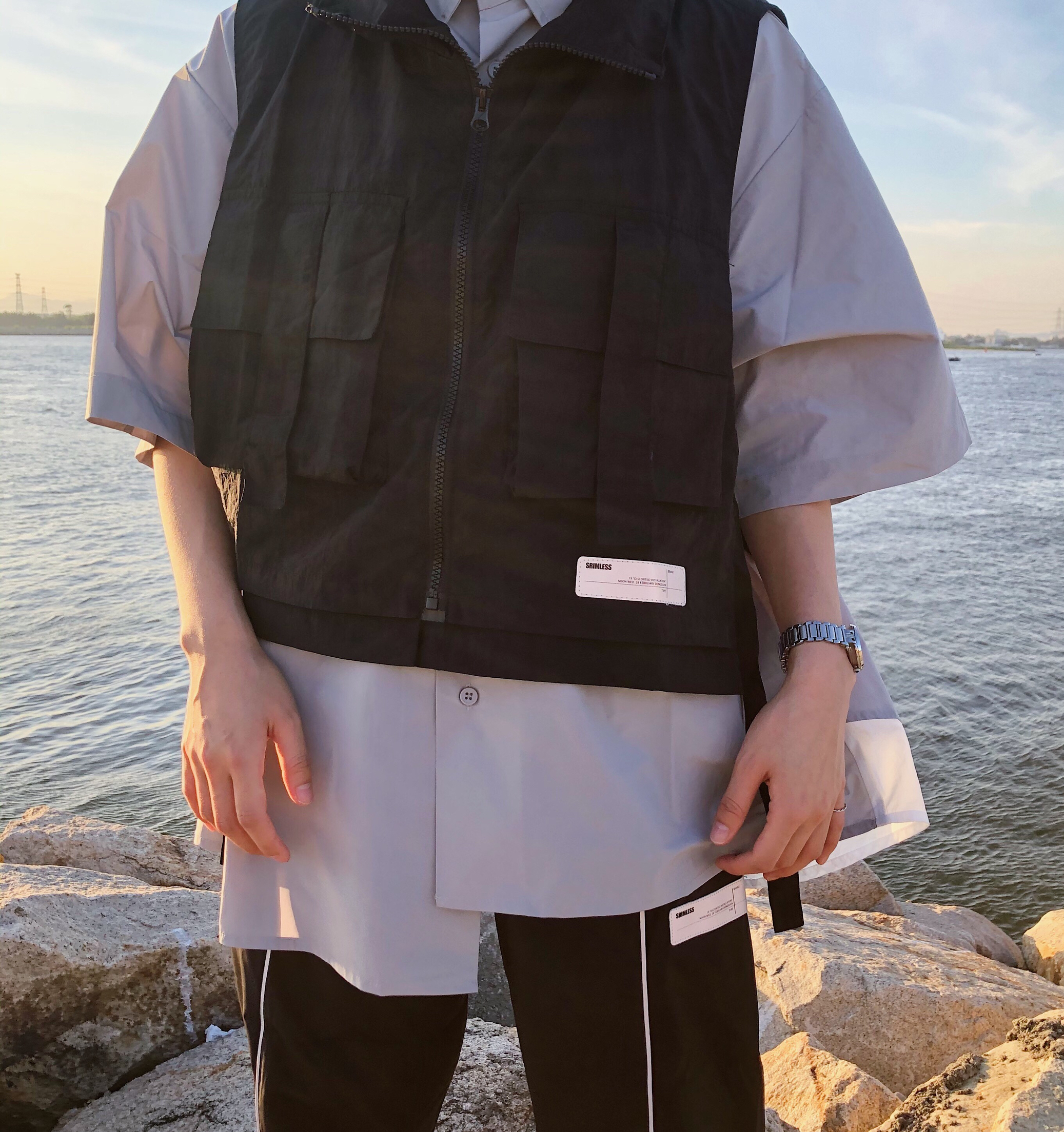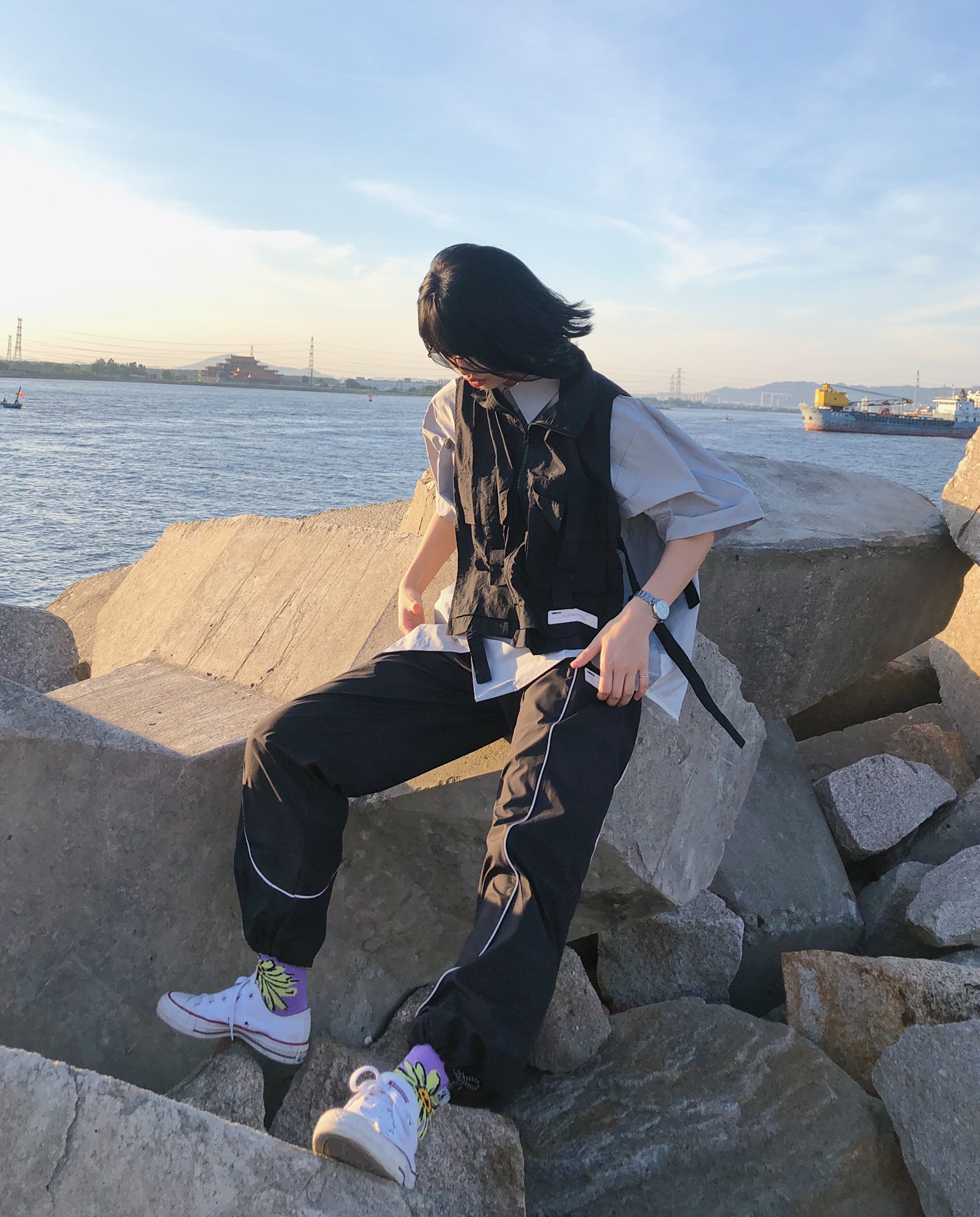 All👔👖:Simple Rimless 🧦:VAPEDUCK 今天是🆒仔风 夏天穿这身居然不觉得热呀~布料很舒服 衣服是不规则的工装衬衫裤子呢是反光束脚抽绳裤 马甲呢是多口袋设计的 衣服质量很好还平价~