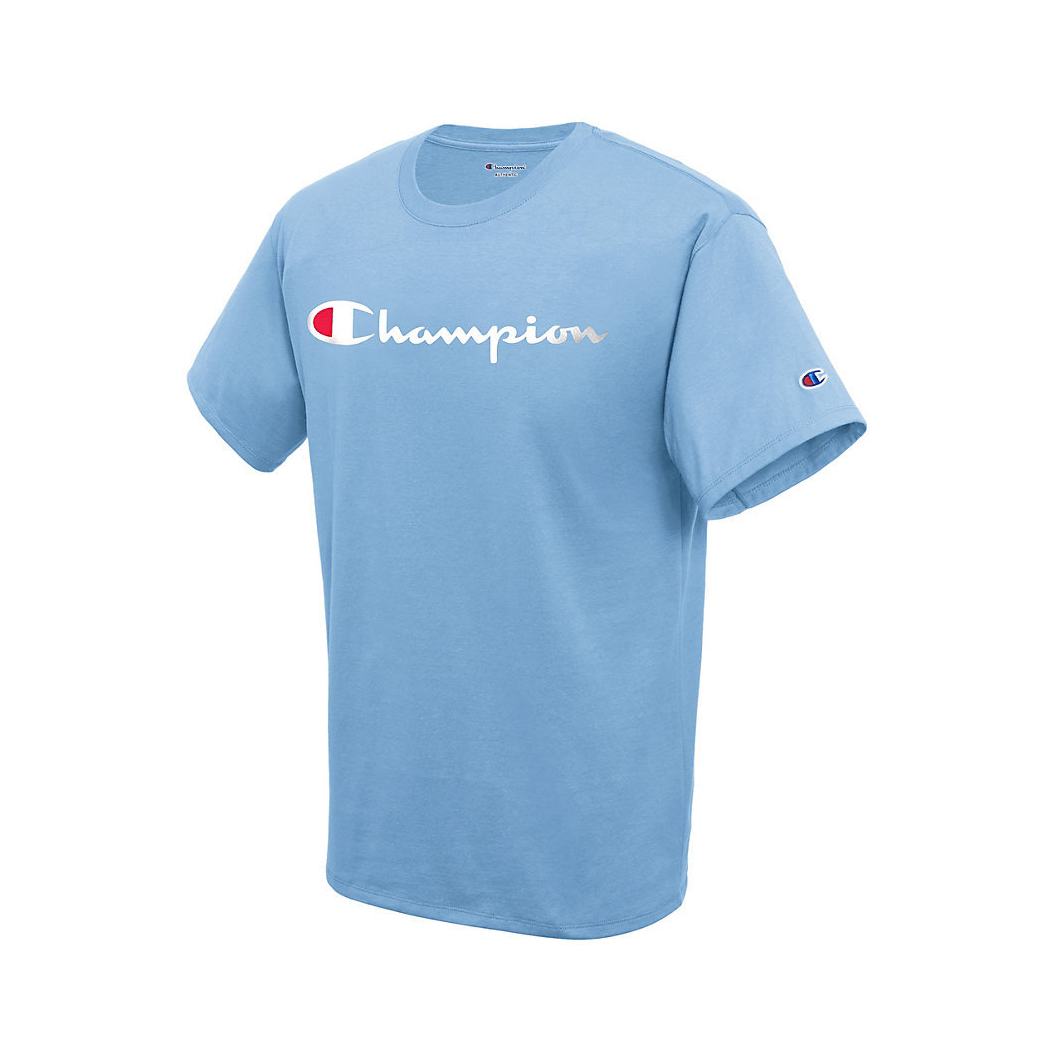 本篇笔记关联了Champion/冠军 草写印花Logolife系列字母刺绣胶印袖标直筒纯棉套头圆领短袖T恤 GT23H-Y06794 天蓝/白标等商品,为用户提供真实的使用体验和购买参考。