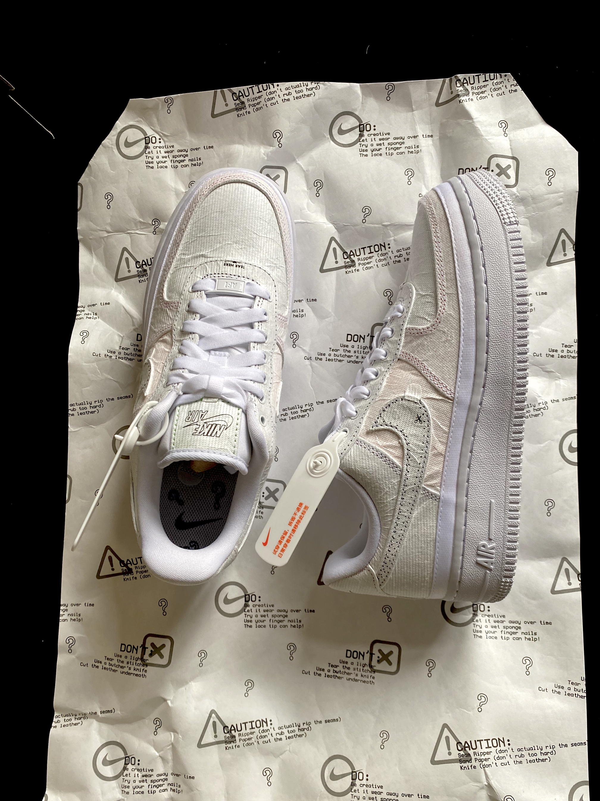 哇哇好好玩! Nike Air Force 1 \'07LX撕撕乐 1⃣️上脚体验 尺码正常,上脚后个普通的AF1没什么区别。 2⃣️入手理由 又出撕撕乐!不要这样了! 我手废了! 之前买过北卡蓝的哪一款撕撕乐,。。。简直了,小剪刀✂️各种工具,都用上了,搞了一下午才好。 这双撕撕乐却不一样!看图片就知道了,各种小箭头→,小剪刀,告诉你真的可以直接撕撕~ 正在制作中,期待一下吧~ ...