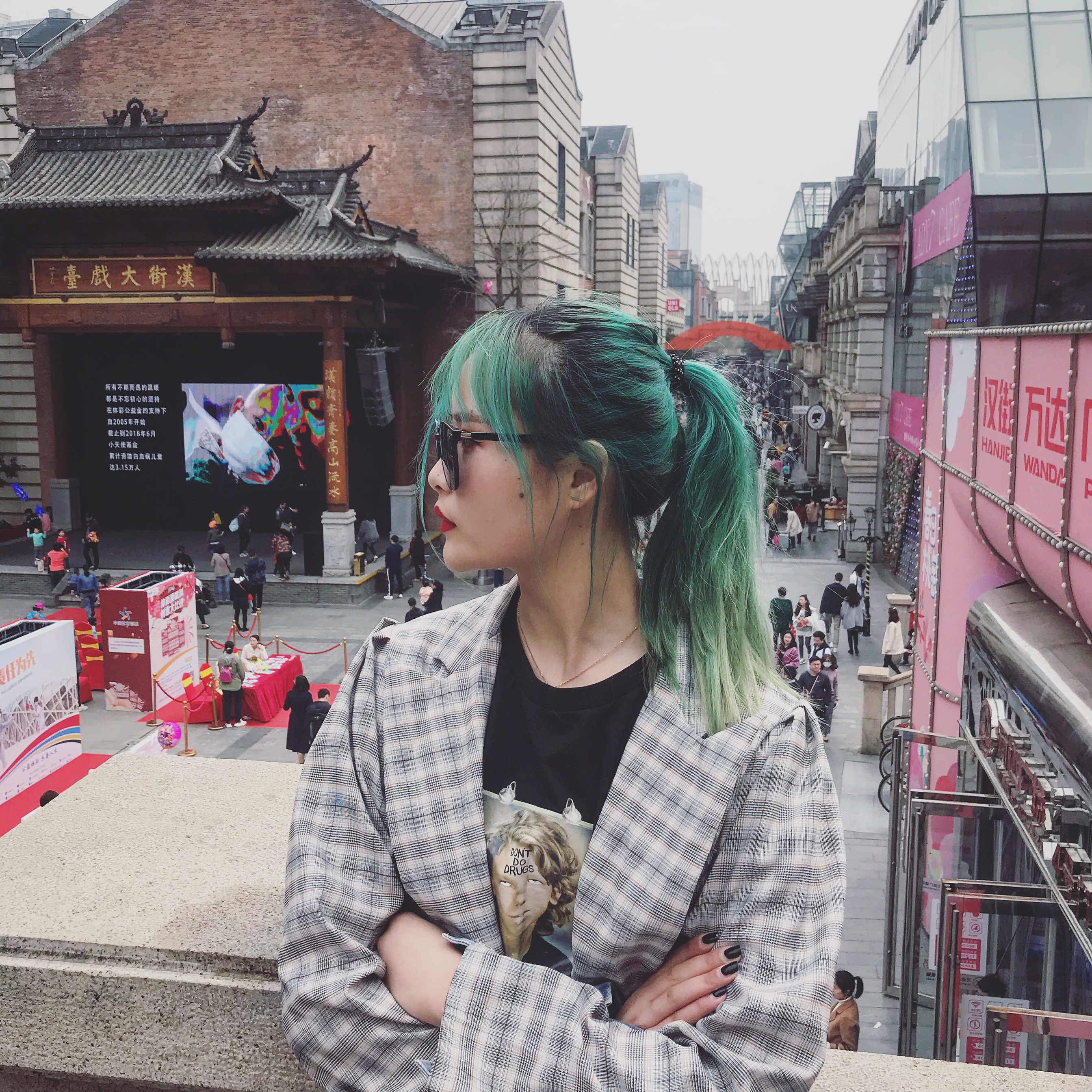 头发掉色啦 衣服裤子都是在实体店买的🈚️🔗 🎒:HM 👟:黄斑马 这一套很神奇的搭配我真是爱了哈哈哈哈