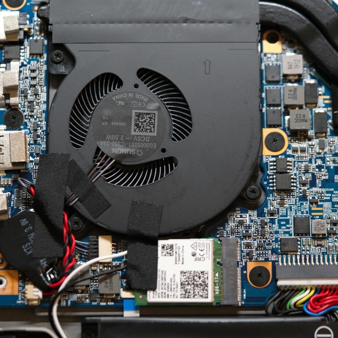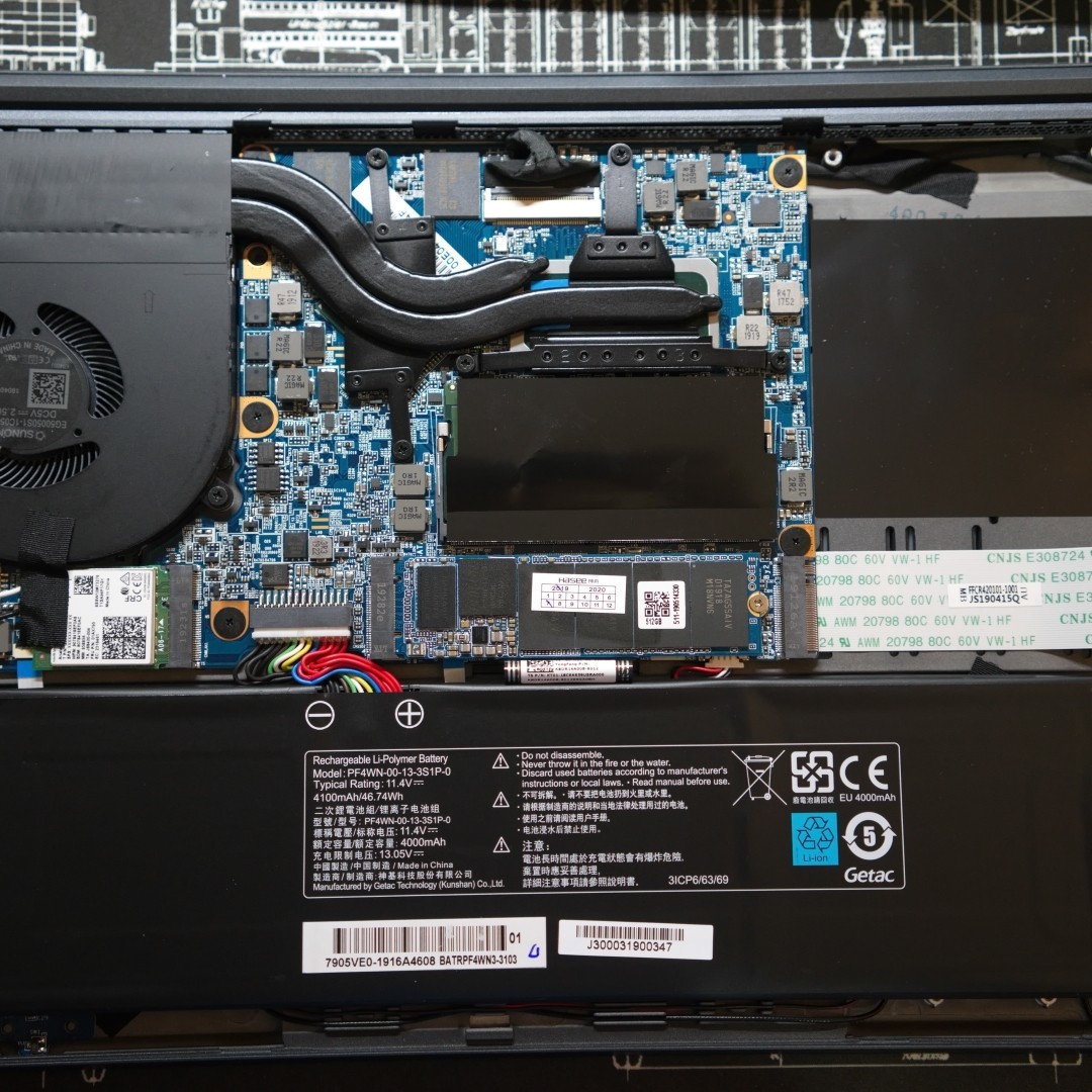 拆开底部结构也比较简单,双热管散热,nvme固态硬盘,固态电容加上三星显存,用料考究