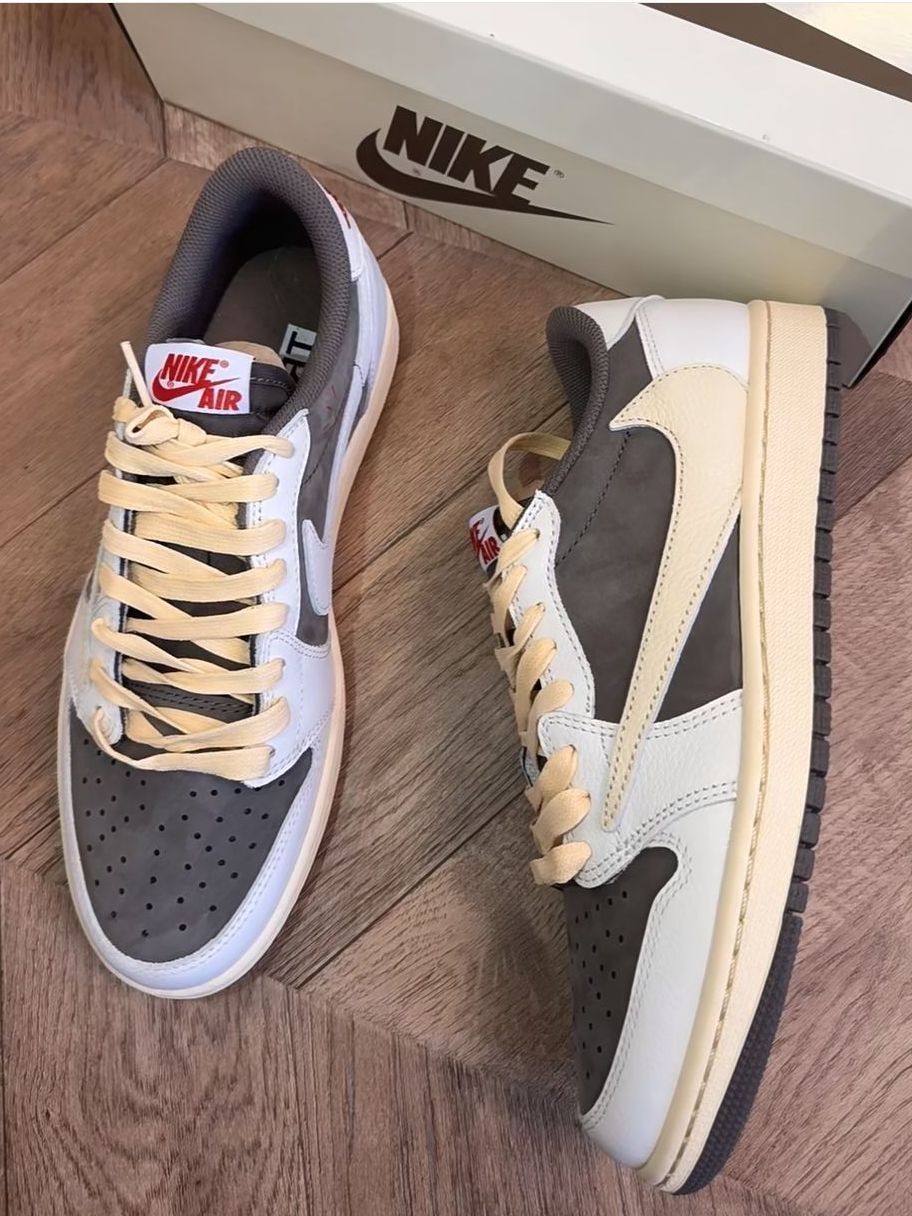 本篇笔记关联了Air Jordan 1 板鞋 运动休闲鞋 复古潮流支撑合成革 低帮/Travis Scott联名/倒钩1.0/深棕等商品,为用户提供真实的使用体验和购买参考。