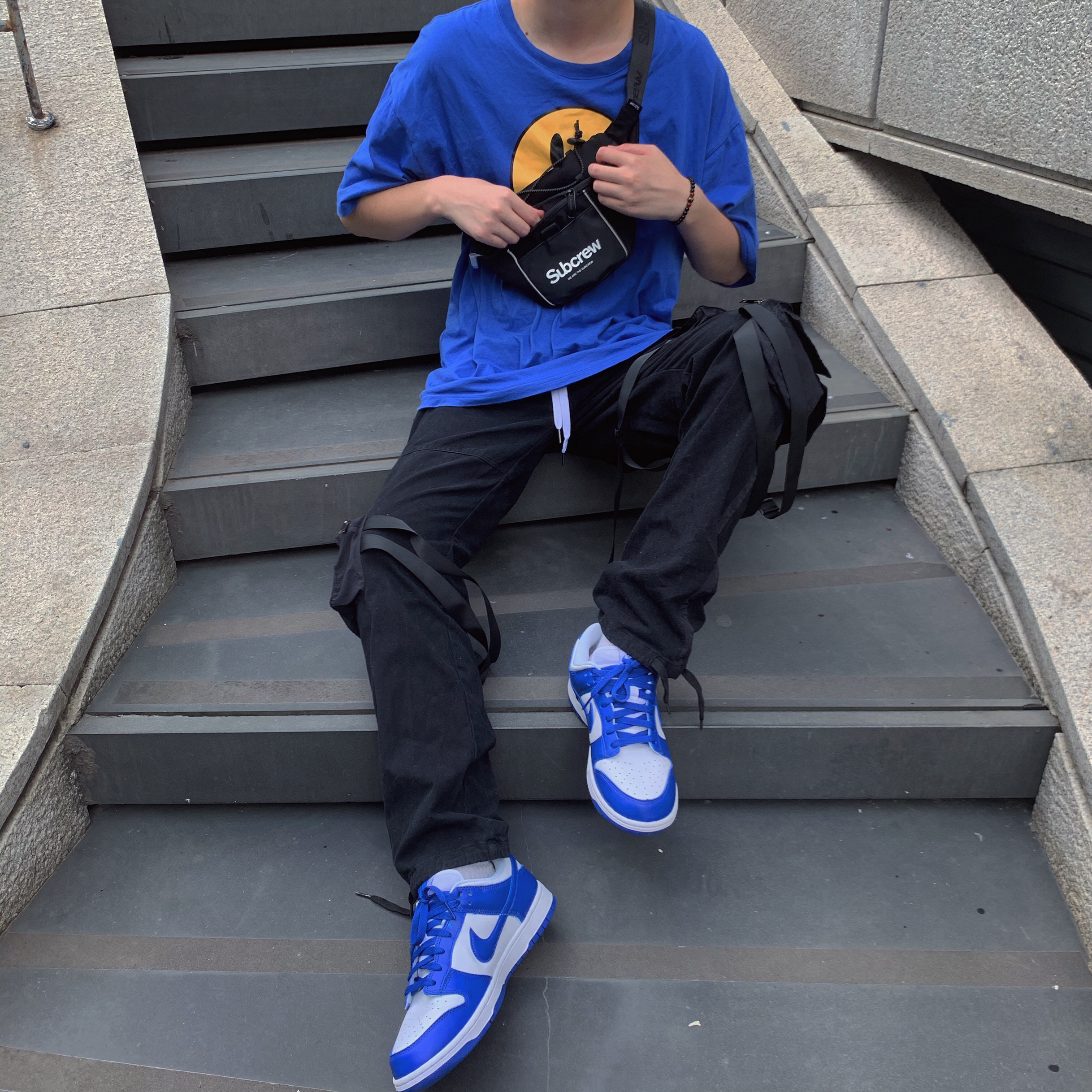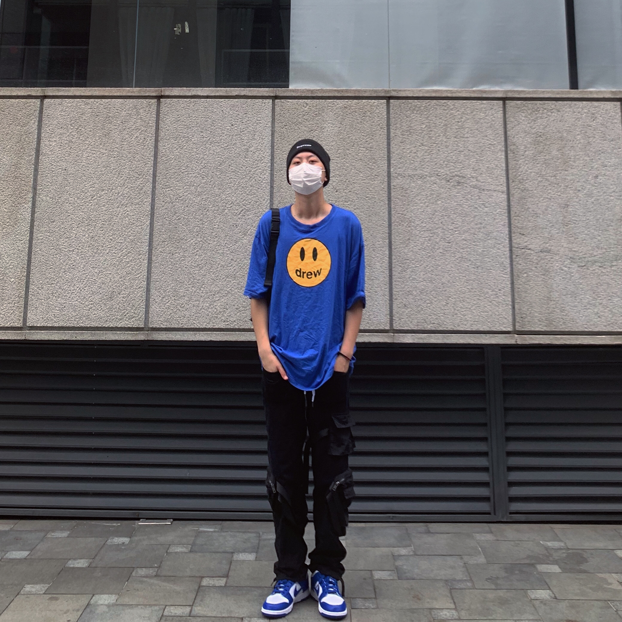 👕:drew house 其实我一直都很喜欢蓝色 但是我不认为去疯狂买这个颜色的单品或者堆积这个颜色就代表我很喜欢 相反 我很少购买蓝色的单品 在我眼里 穿搭里颜色的选择我更喜欢黑色 球鞋配色我更喜欢白色 这和我喜欢蓝色都是互相独立且同时存在的 这样反而让我在购买一件单品的时候会犹豫这个东西的利用率和可操作性 反而不容易因为冲动而消费 👖:justhis 其实这种多口袋直筒裤最适合搭配的就是dun...