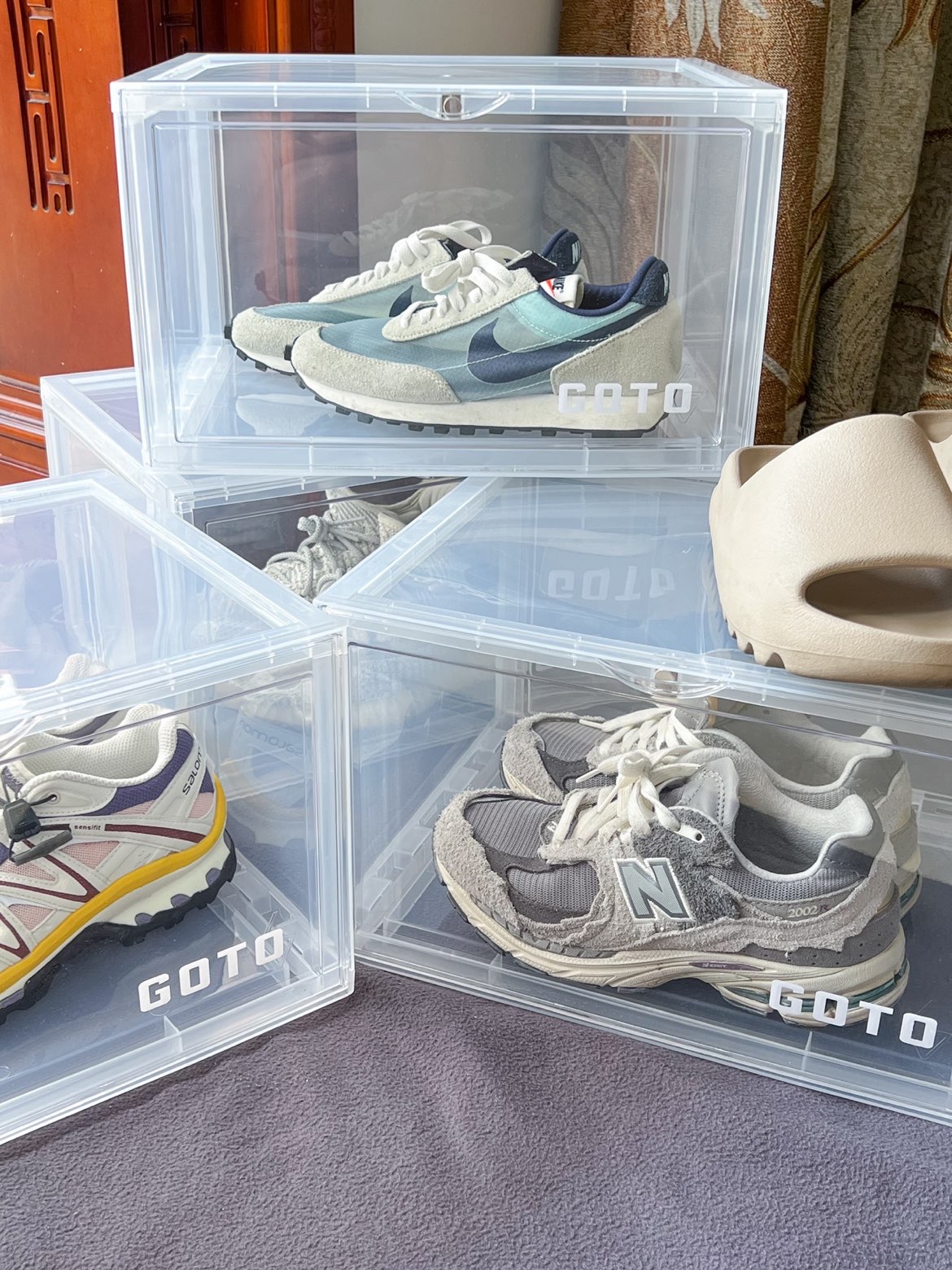 这个是我年前的鞋盒,鞋盒我选的是supbro的普通鞋盒,现在换成了GOTO的声控发光鞋盒,等我回家拍照片与大家分享,希望大家喜欢我的客厅🛋️!我生活的一部分!