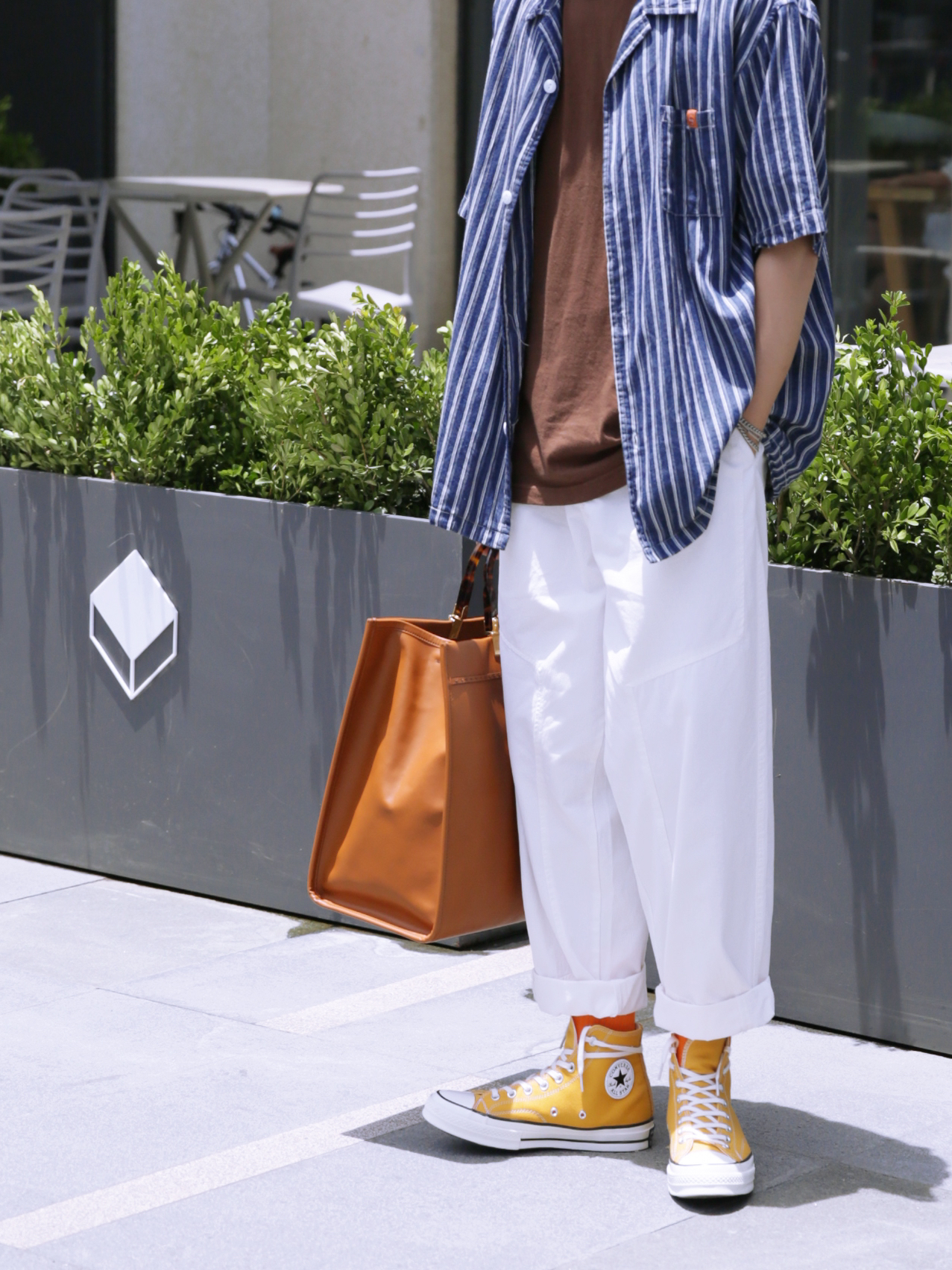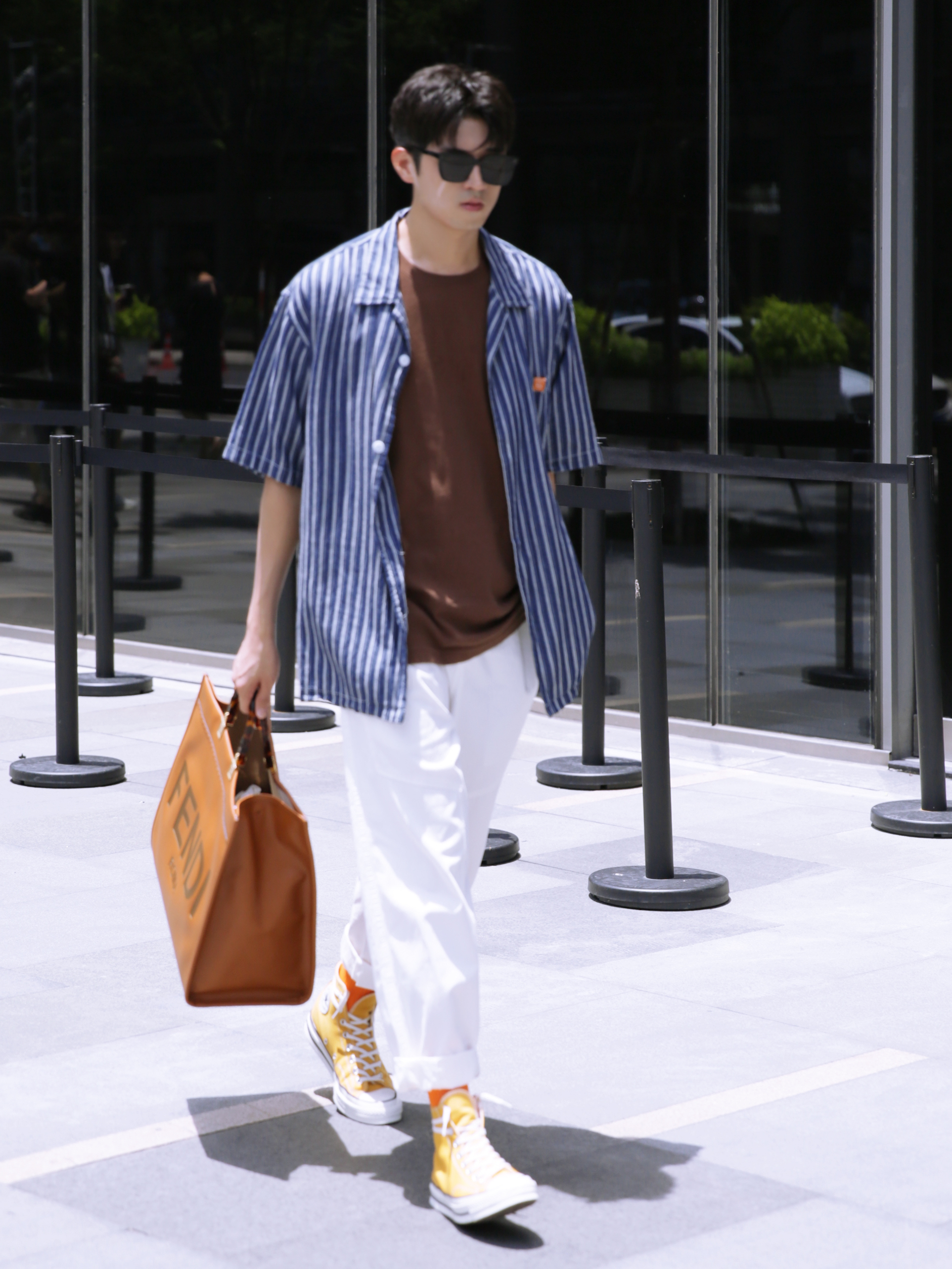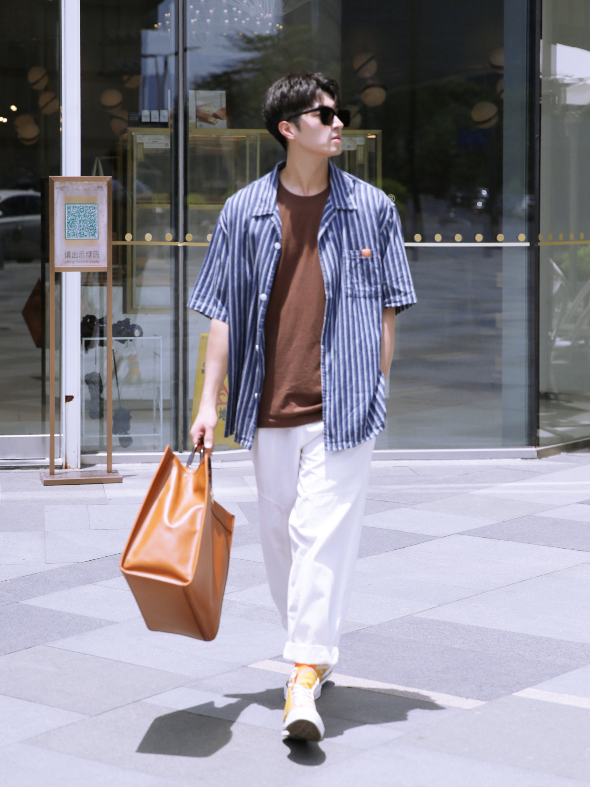 🔸近期很喜欢衬衫,周末就是要和朋友出去打卡拍照的。你们出去玩了吗?今天杭州虽然热了一些,但天气蛮好的,蓝天白云,适合拍照的。 — 👔·日系藏青条纹度假衬衫—PD大人; 👕·咖啡色夏日短袖—UNIQLO优衣库; 👖·白色工装直筒裤—PD大人; 🧦·开心橙夏日长袜—LARGEE; 👟·落叶黄高帮帆布鞋—CONVERSE; 💼·阳光手提袋—FENDI; 🕶️·黑色墨镜—GENTEL MASTER; — ...