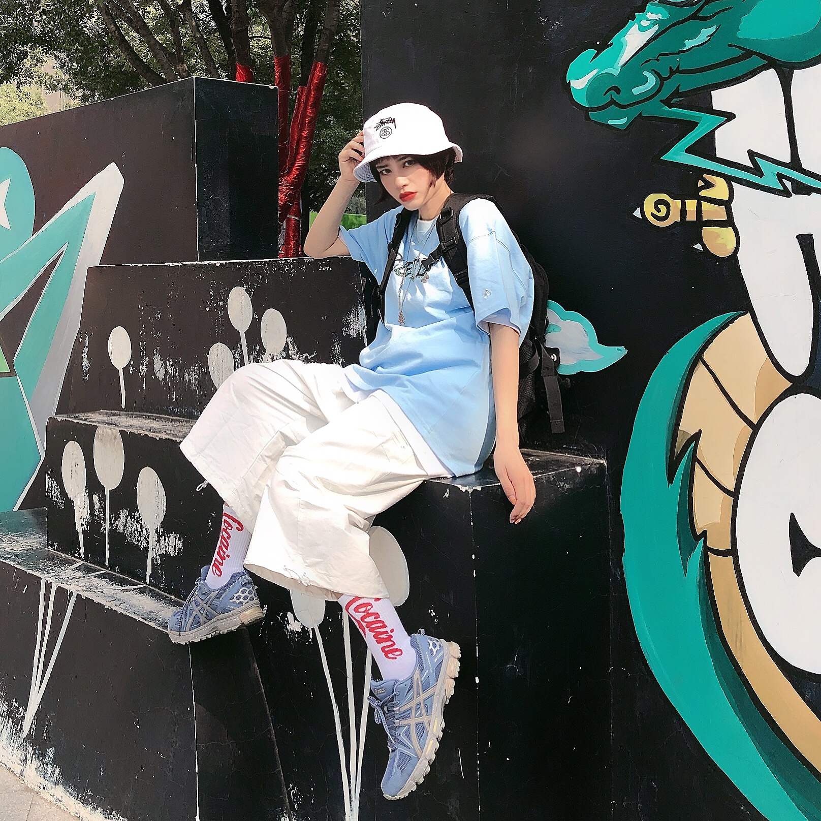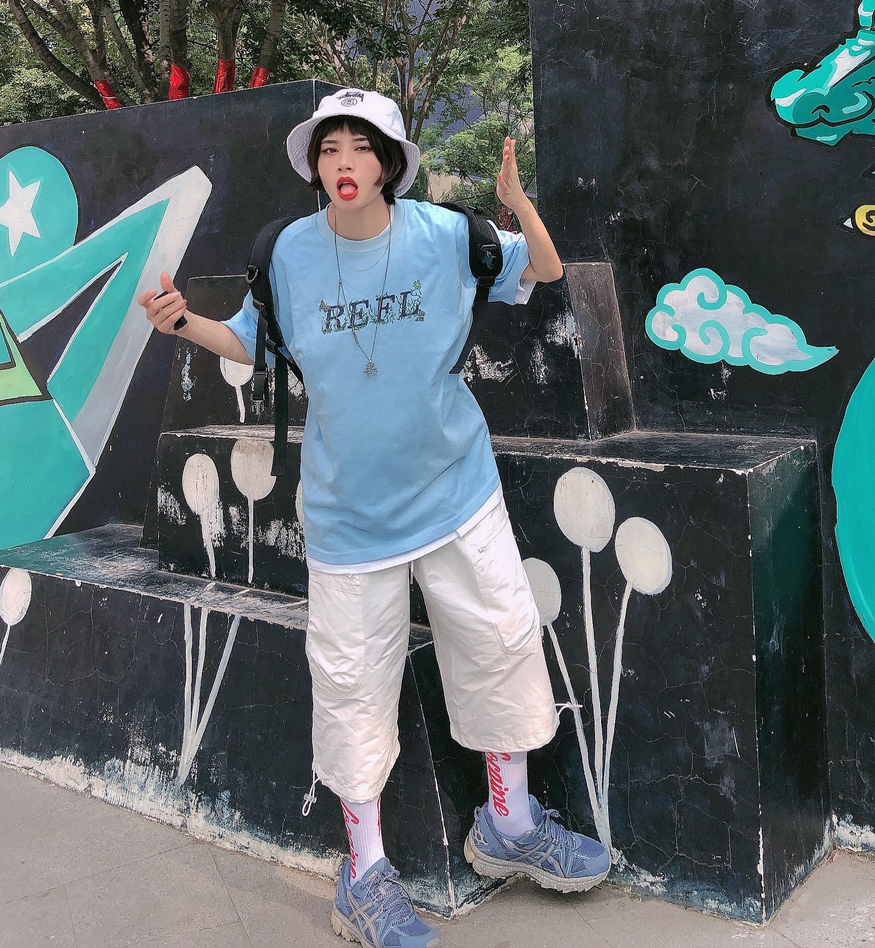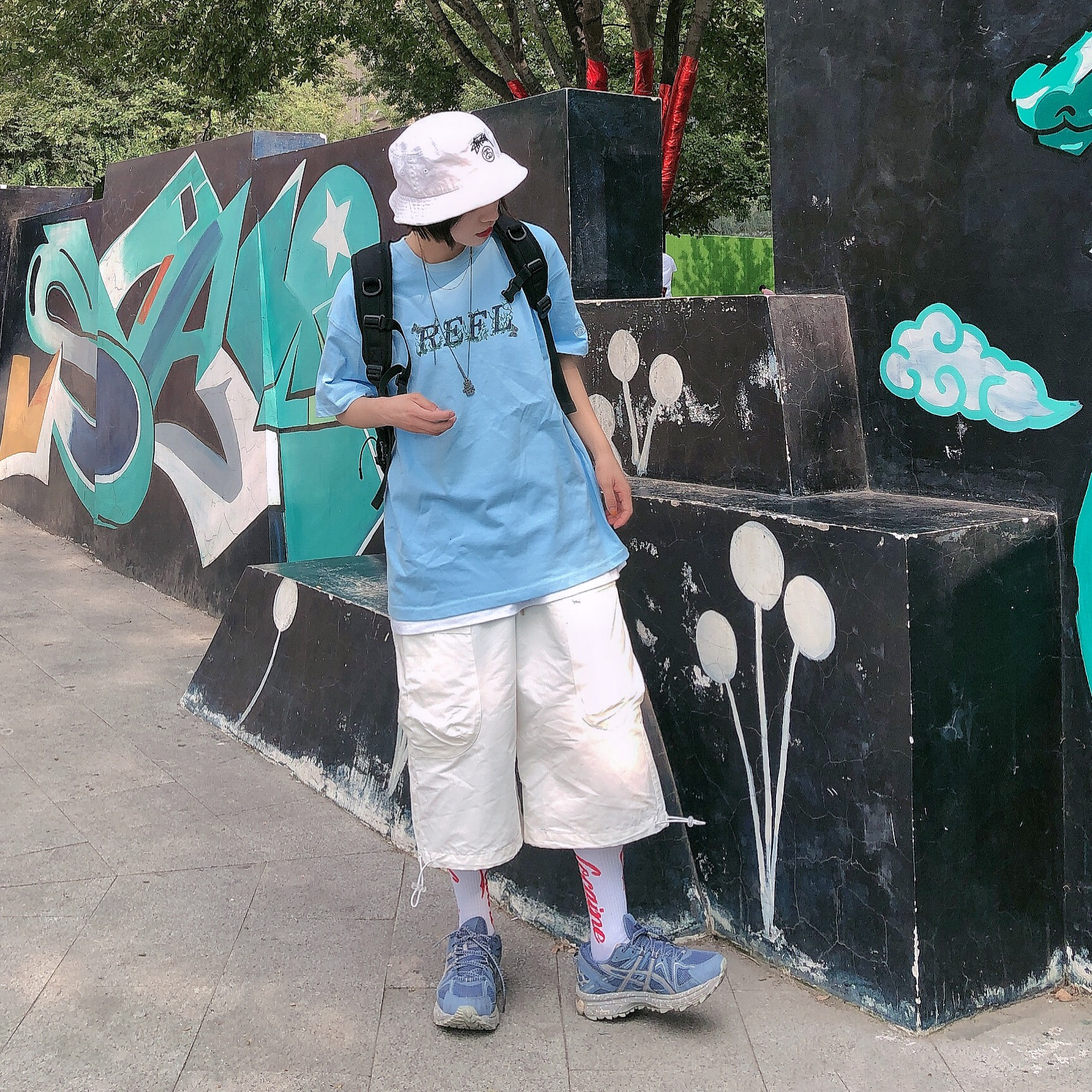 蝴蝶🦋在你身上起舞的时候 就是你魅力散发的光芒一刻 上衣👕:reflctive 这件淡蓝色的T恤很耐穿 挺扛打哈哈,🐻前的字母refl就是他家的缩写,上面布满了蝴蝶🦋,今年的流行元素,而且会让整件tee有了生命与活力 裤子👖:nothomme 白色七分裤 趁夏天还在 多穿穿短裤 分裤吧哈哈哈哈,这条白色裤子比较偏工装风格,日系感,不过搭配国潮也OK 裤脚可以束起来 一裤多穿 鞋子👟:as...