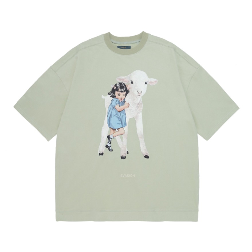 第一次当小朋友没有经验 请问幼儿园是这个点睡觉吗 👕:UNVESNO 👟:YEEZY 这个印花图案实在是可爱到我了 我就暂且称它为被羊吓到的小女孩吧~