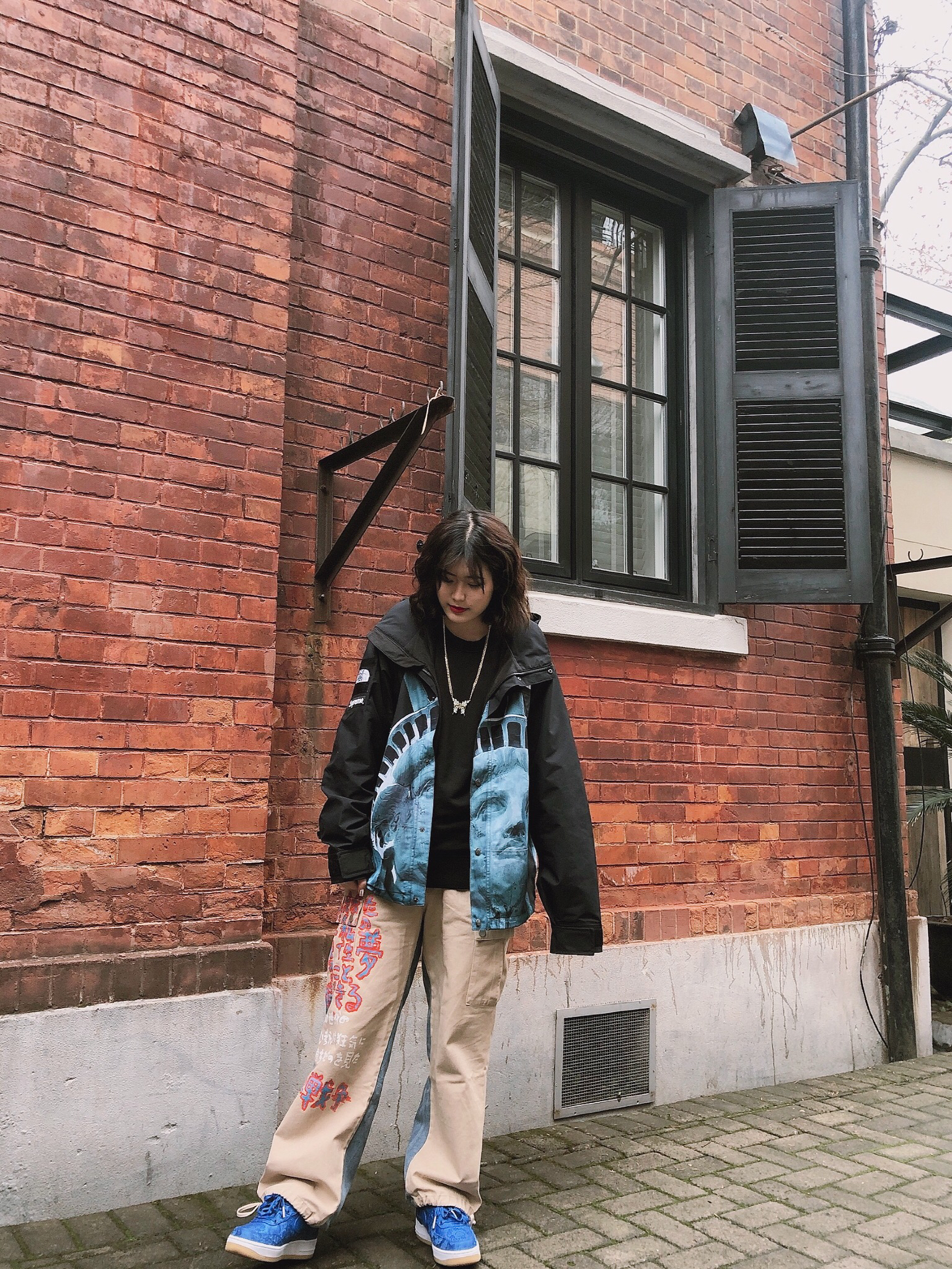 发一个库存穿搭,秋冬这样穿还挺不错的❄️ 内搭:随意的一件黑色卫衣就🉑️我穿的是石头岛!没有多余的图案,不至于抢掉外套的风头。 外套:supreme*tnf 自由女神冲锋衣 这件真的好好看哦所以当时一发售就毫不犹疑的买了!但是版型是袖子长衣长短的那种 我买了m码都看不见手啦,而且并不是很保暖,冬天很冷的时候不能穿奥 鞋子:clot蓝丝绸 丝绸系列太好看辽!!很多人把丝绸部分剪掉但我就是喜欢丝绸...