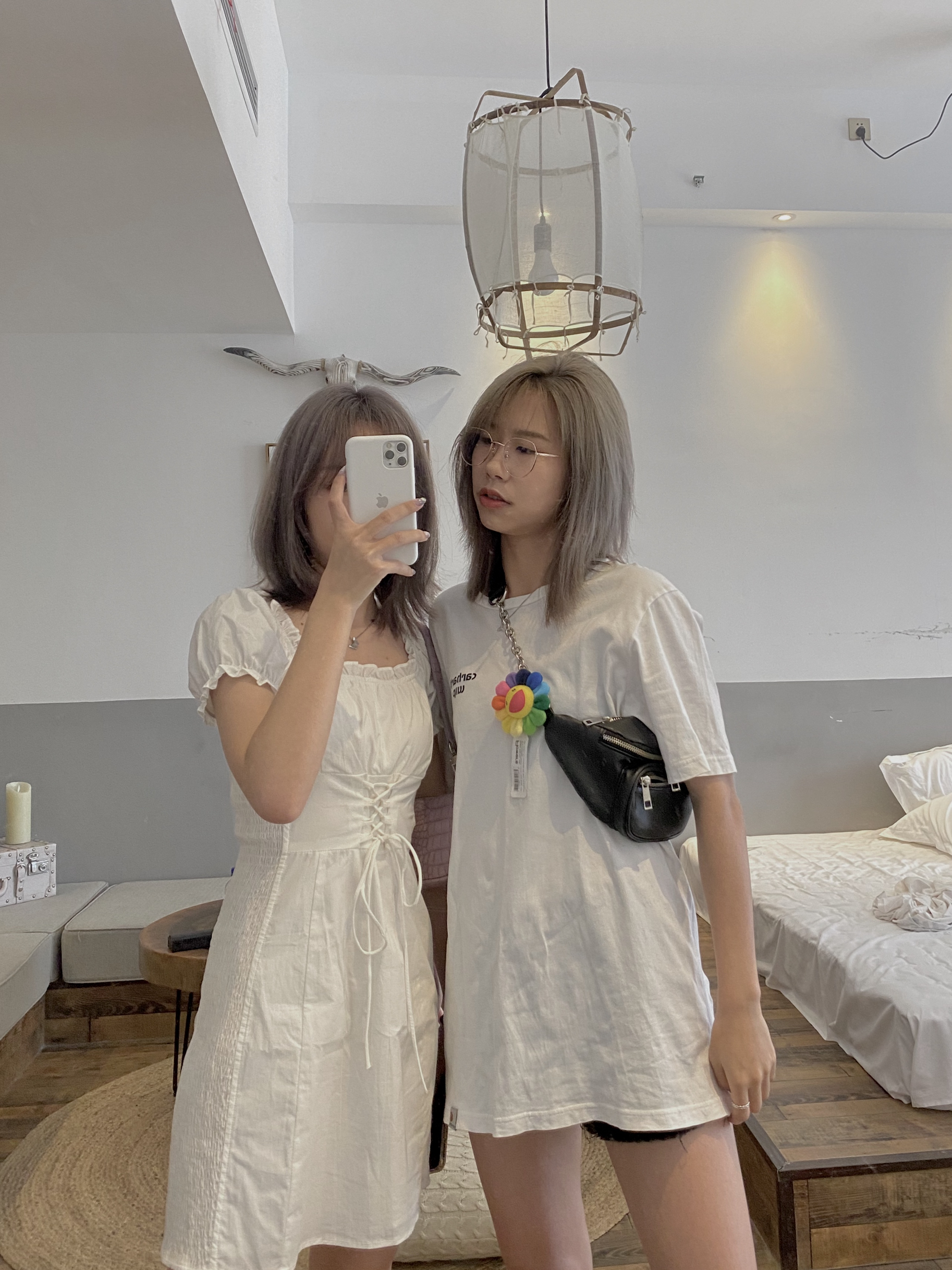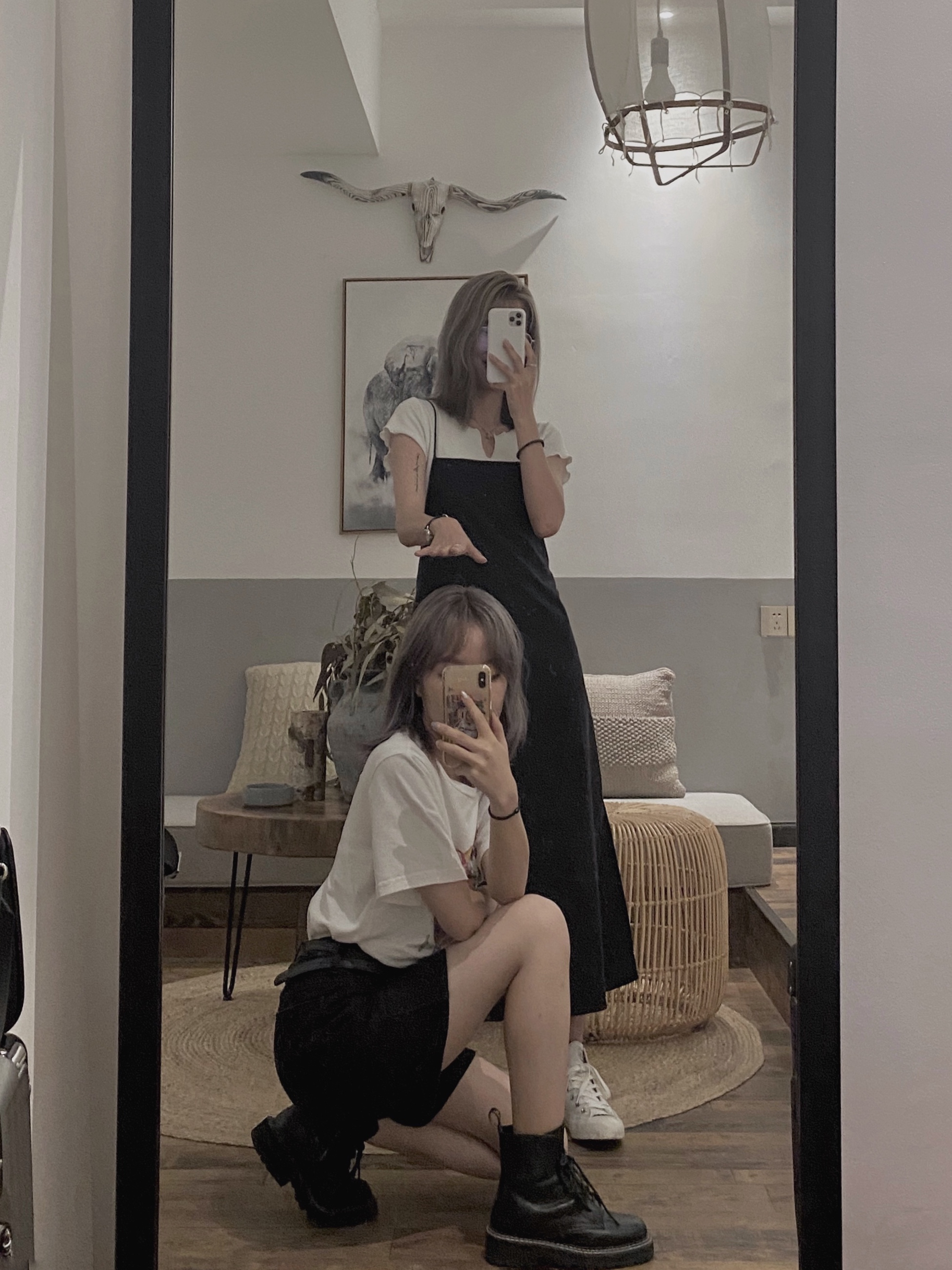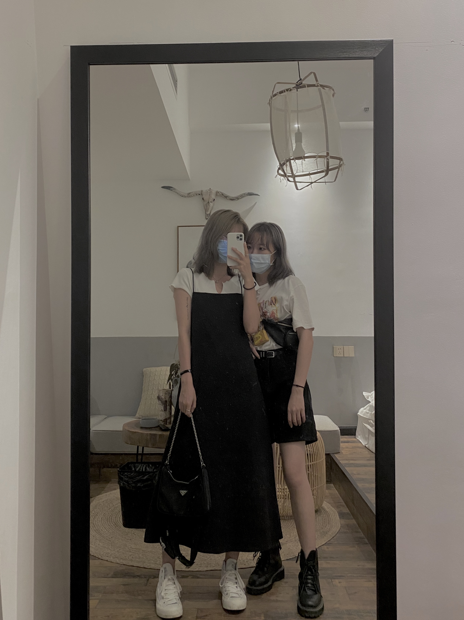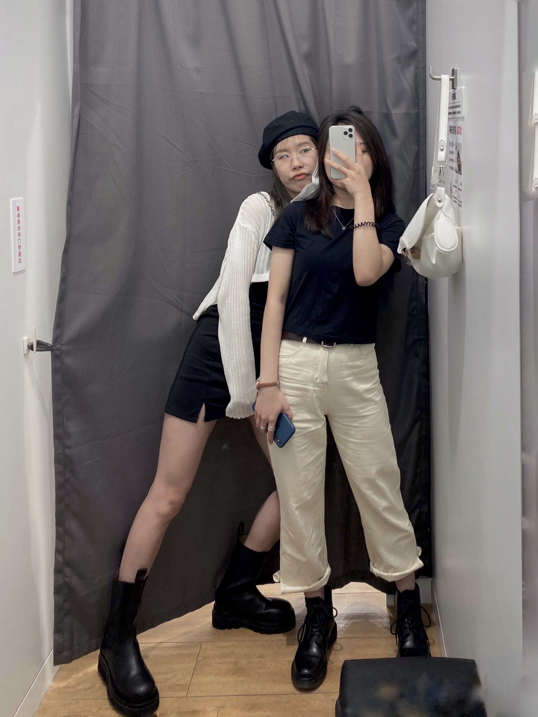 我160-44 姐妹155-40 姐妹去长沙玩不约而同都是黑白搭配 真的很百搭又能出彩! 搭配印花T或村上隆潮流感100分 - 👔卡哈特/ Airway 👟Nike Blazer / Matnut