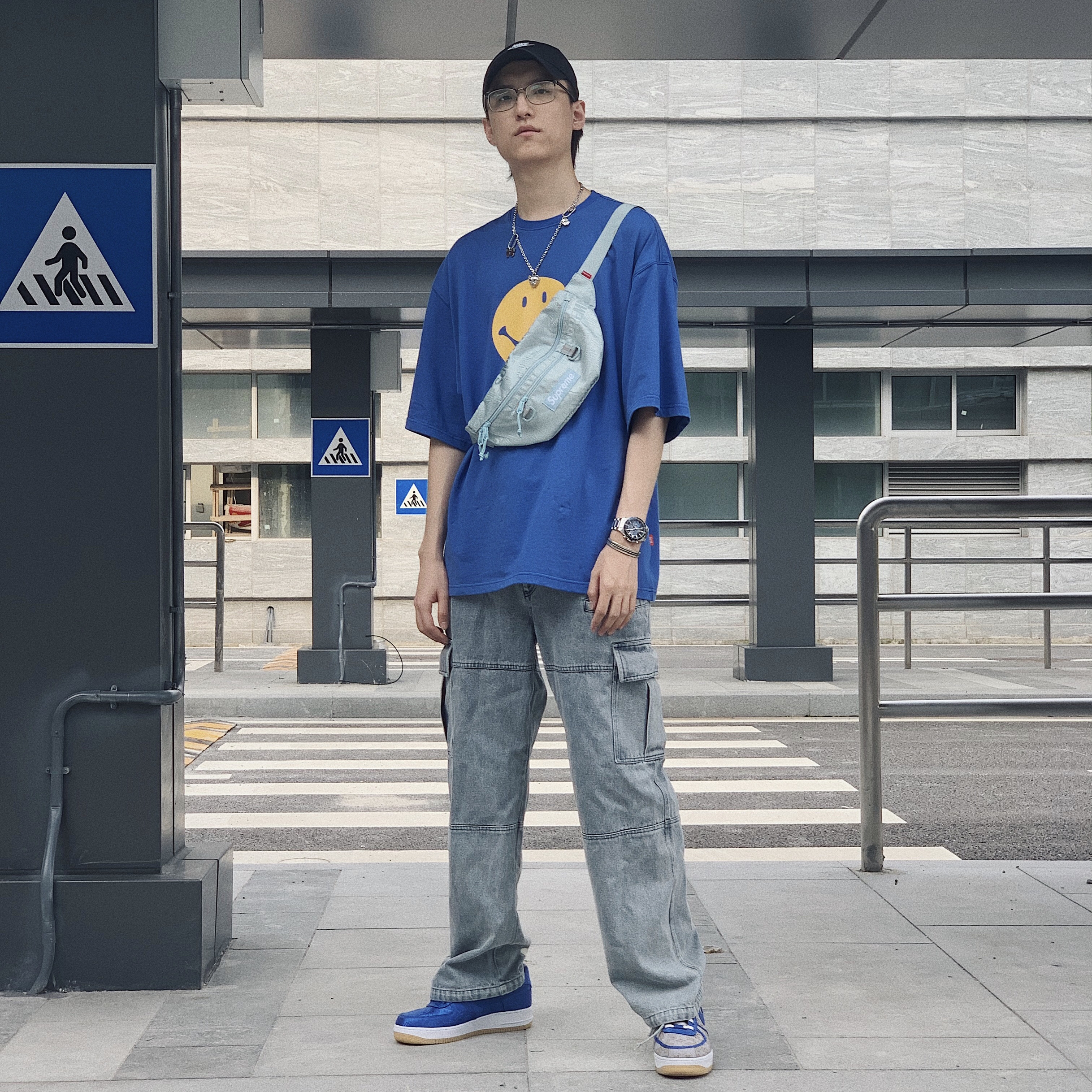 帽子:Nike经典鸭舌帽 项链:BABAMA 荒野守护联名 腰包:Supreme 19ss 手表:CASIO 上衣:R39溶解笑脸 下装:R39水洗牛仔裤 鞋子:NIKE x ClOT蓝丝绸 夏天这一身再合适不过, BABAMA的荒野守护联名项链与这一身“蓝色”算是非常搭配了, 夏天对于那些不喜欢穿短裤的人来说, 牛仔裤是首选, 在这种天气下拍照,蓝色+笑脸=好心情 腰包可以说是夏天的搭配神器, ...