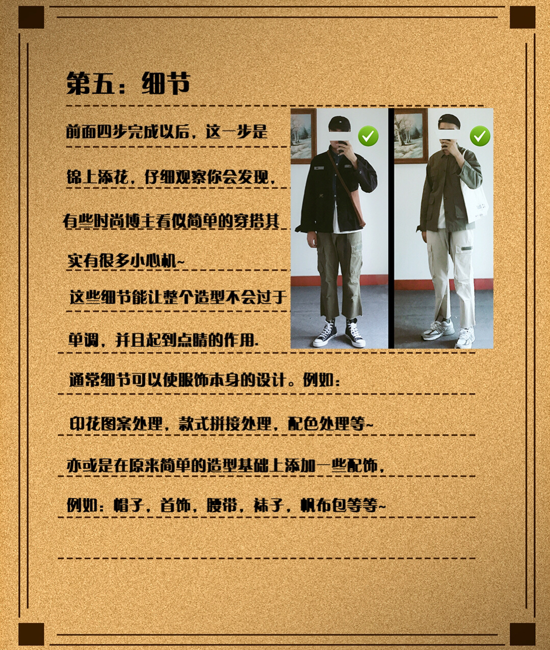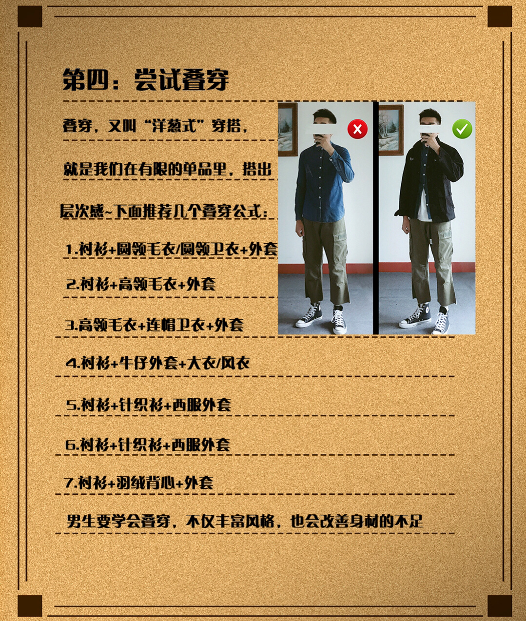 🌟男生穿搭|秋季穿搭五条黄金法则|日系穿搭 🍂秋意已浓,你是否还在为如何搭配自己的衣服而发愁? 如何做到既保暖又帅气呢,只要掌握一些简单的穿搭技巧! 俗话说人靠衣装马靠鞍。如果外貌不能给自己加分也没关系,那就去提升自己的衣品吧。 一些男生可能刚开始会关注一些时尚博主来学习穿搭,其实这样并没有错😃 只不多时尚博主的风格不一定适合每个人,如果基础的穿搭都没有学会😳 直接照搬时尚博主的高阶搭配进行日常穿...